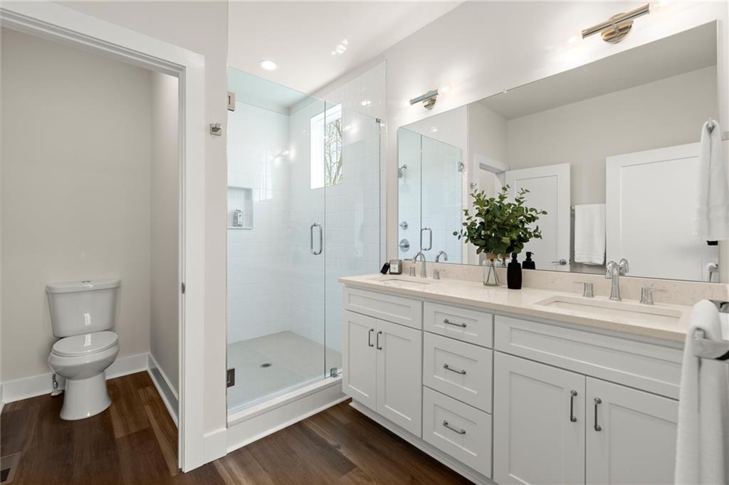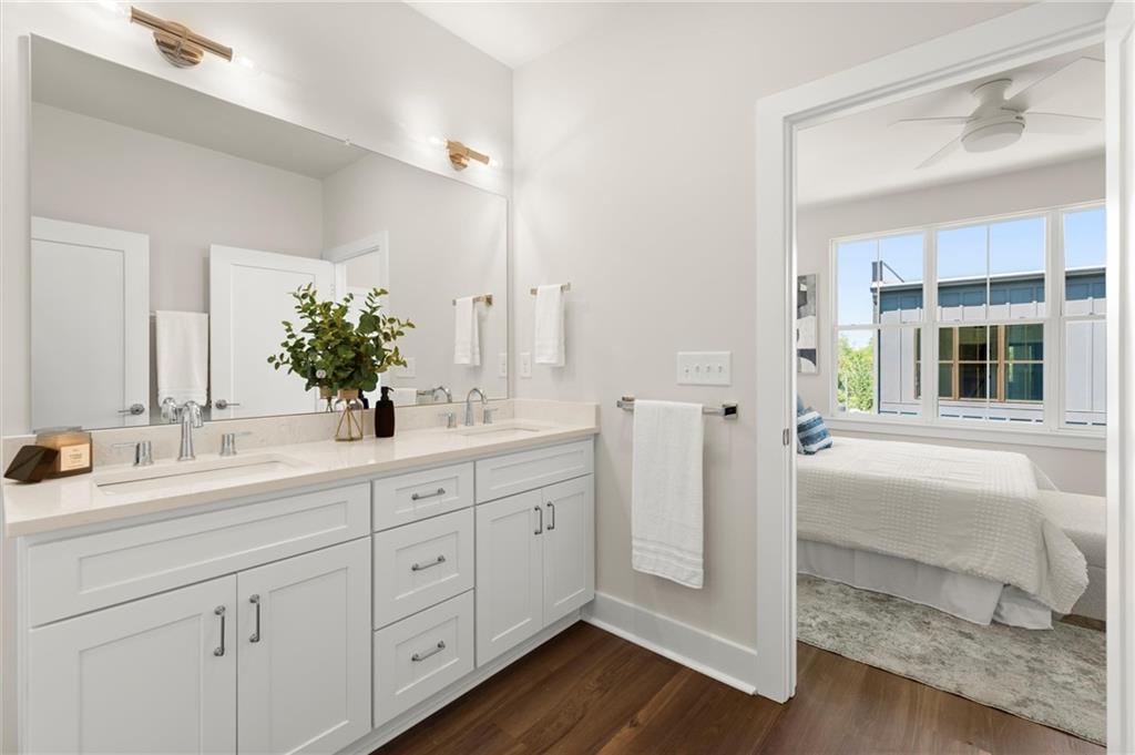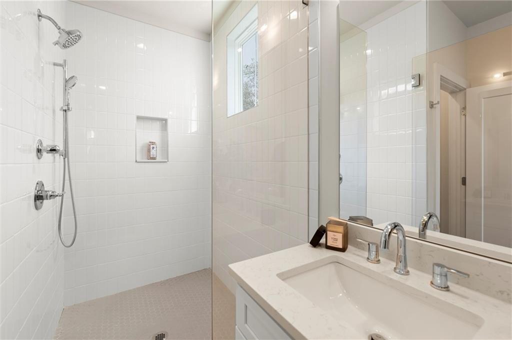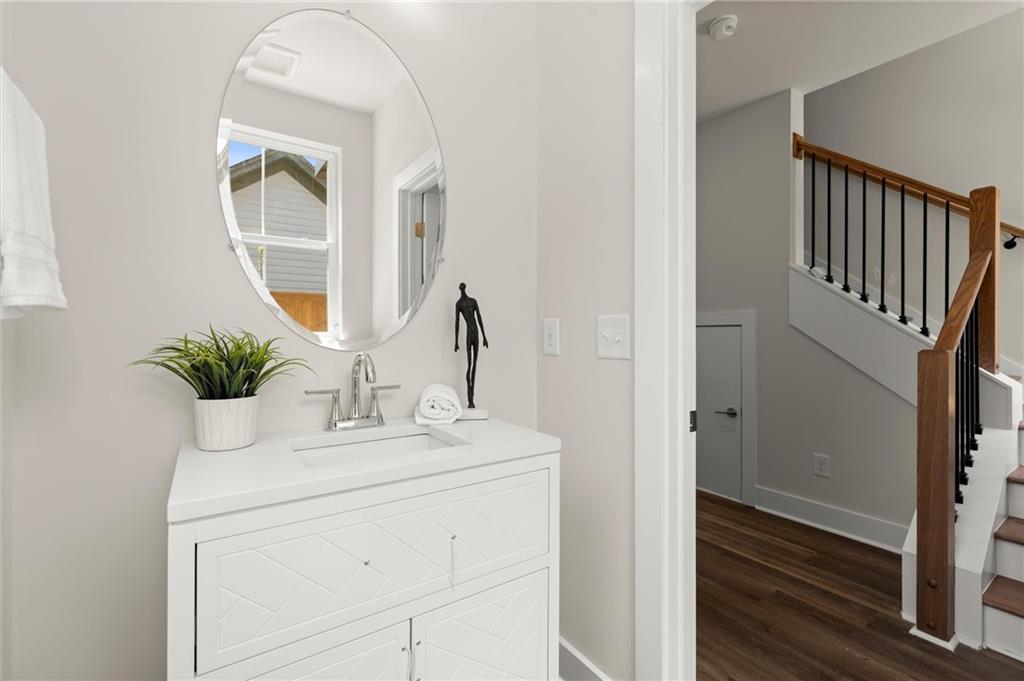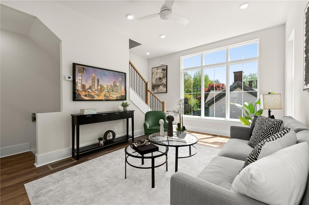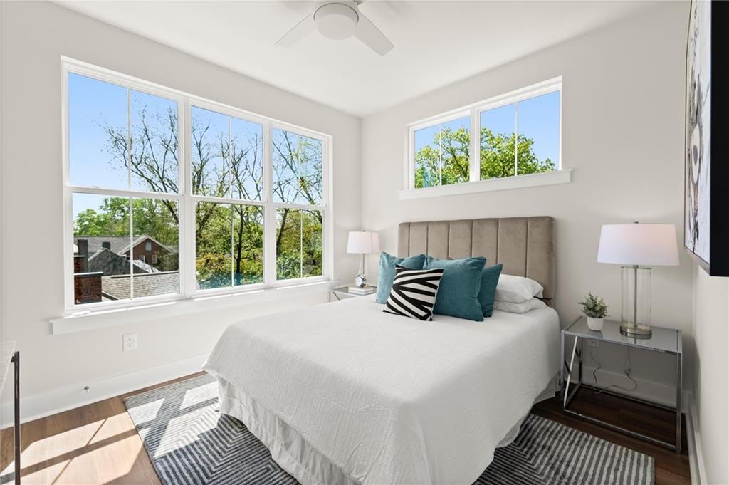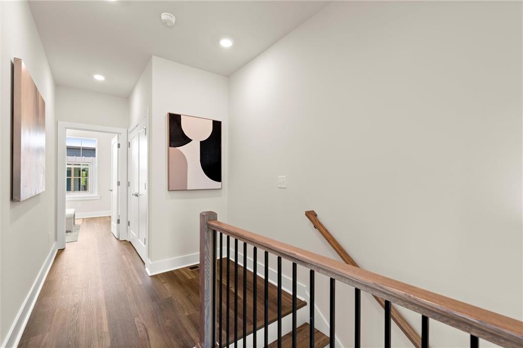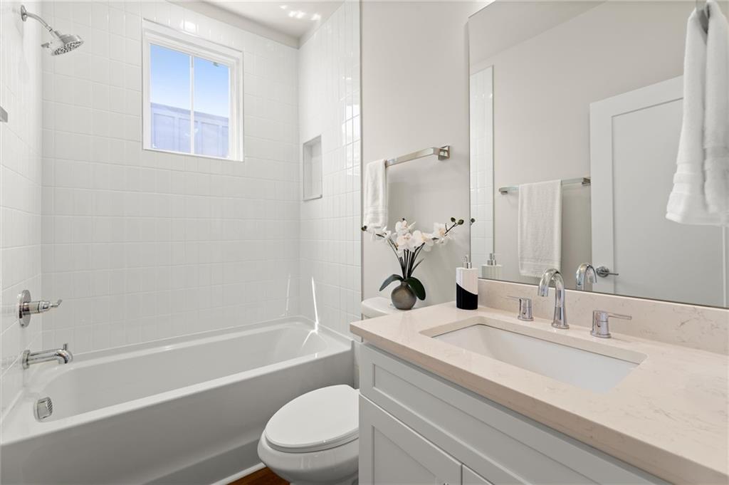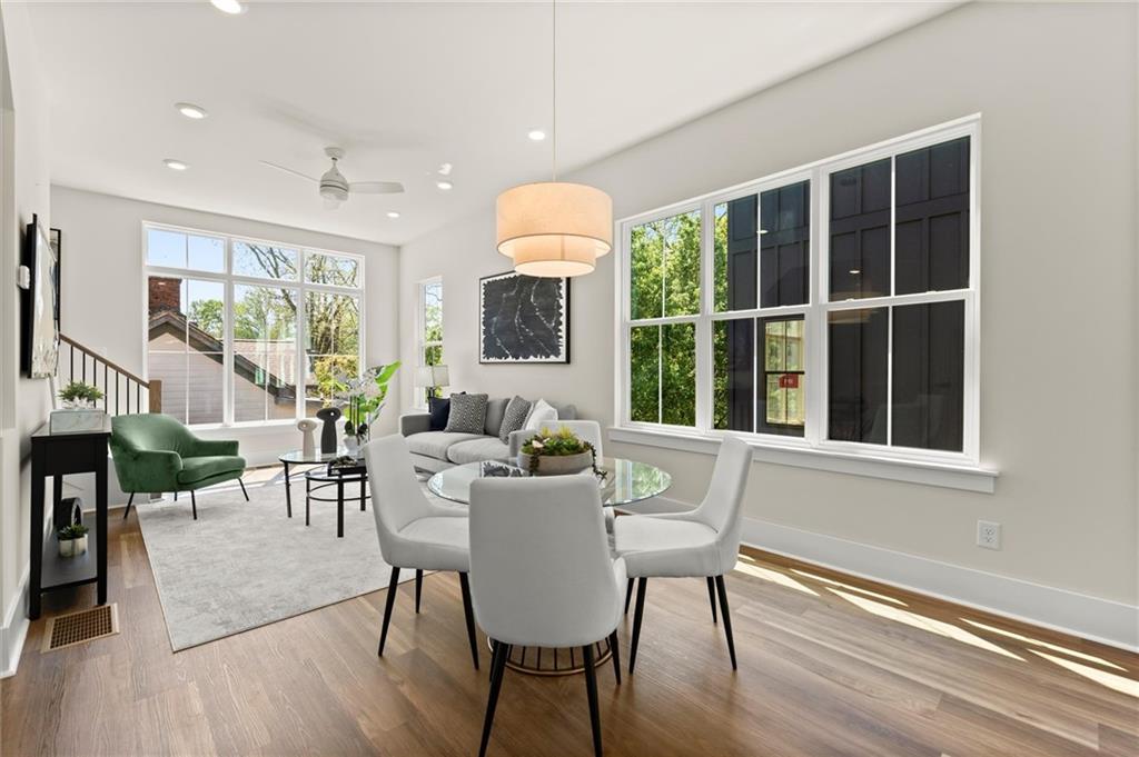 Knights Walk at Howell Station, where every unit is an end unit. These brick and batten board clad, fee simple CityHomes are the latest offering from Middle Housing Company. Abundant natural light is provided by windows on three sides of every unit. Real usable outdoor space is found on the large, covered deck adjacent to the kitchen, while front units facing West Marietta St include a front patio as well. The lower level includes a half bath and a single-car garage with extra storage. The main level includes a great room with living and dining areas, a well-appointed kitchen, and a covered rear deck. The light-filled upper level has a primary suite with ensuite bathroom with double vanity, large floor-to-ceiling tile shower, and a separate water closet. The secondary bedroom, bathroom, and laundry closet complete the upper level. Floors are durable luxury vinyl throughout the unit, and all countertops are quartz. Two different kitchen layouts are available. Knight Walk at Howell Station includes a dog walk and a community common area. This walkable location is only blocks away from Knight Park, the Beltline entrance adjacent to Westside Paper and King Plow.