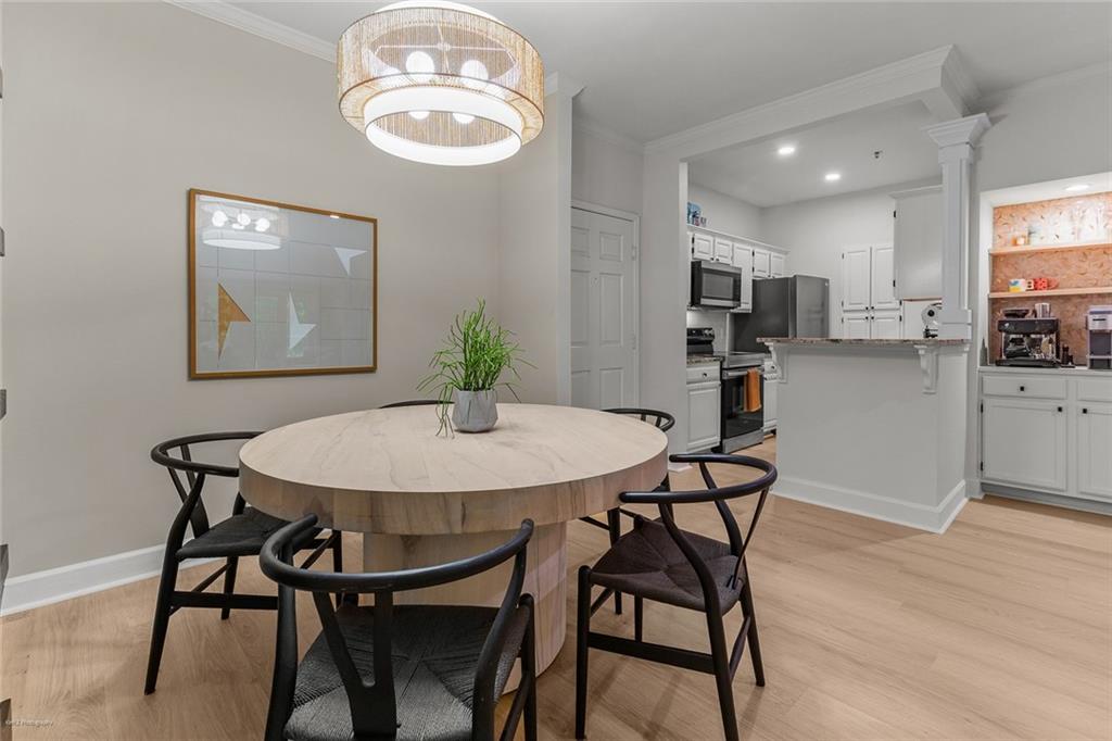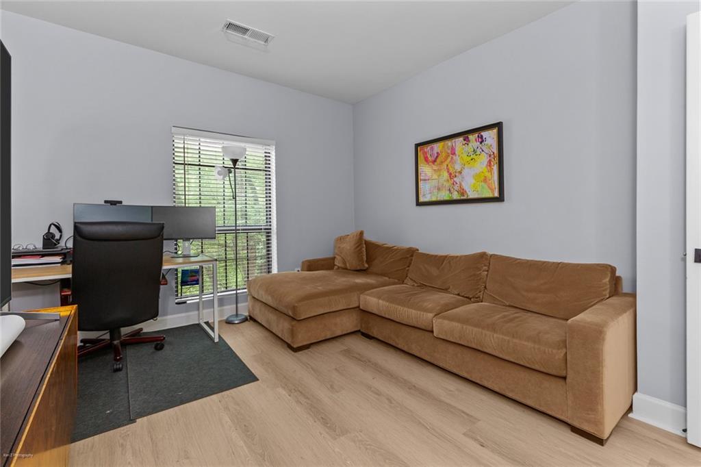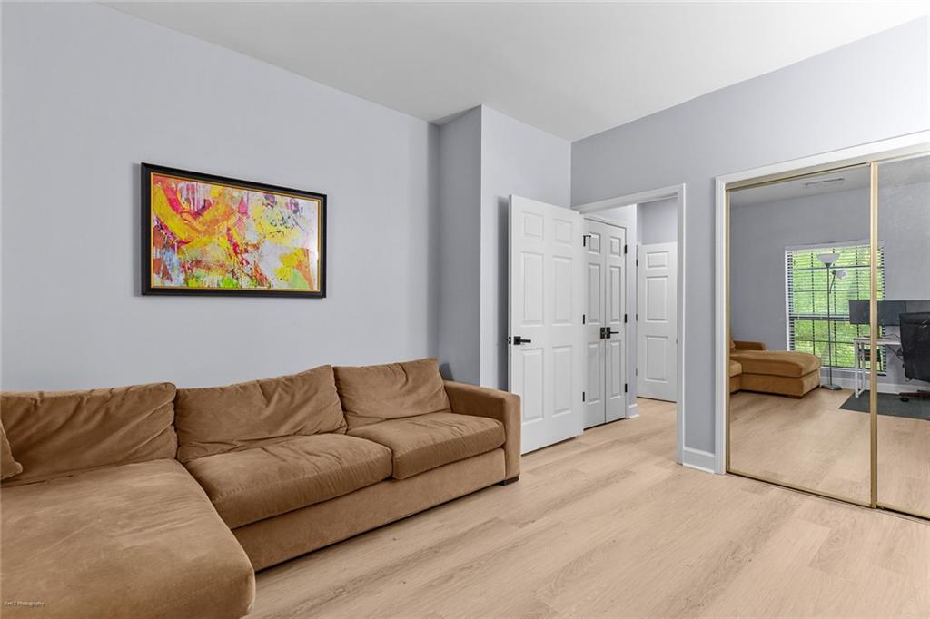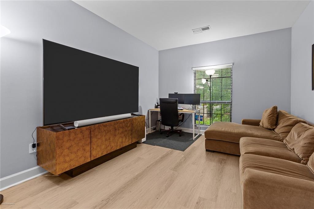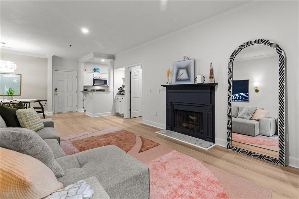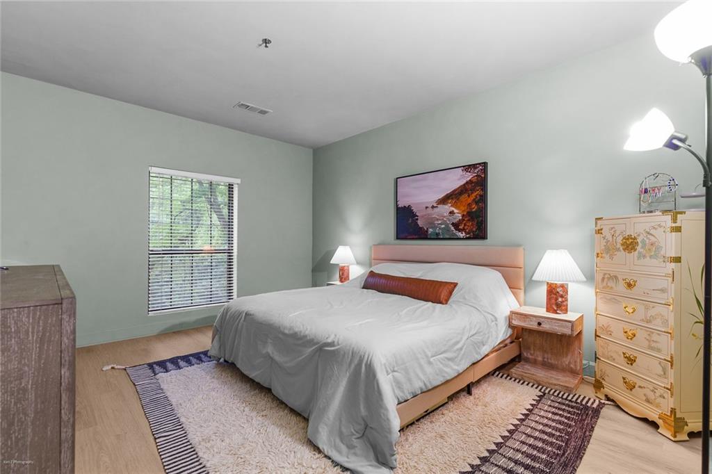 Welcome Home to the Heart of Buckhead! This beautifully updated condo offers more than just a place to live—it’s a place to feel at home. Nestled in one of Atlanta’s most desirable neighborhoods, you're just a short stroll to Lenox Mall, MARTA, local parks, and some of the best restaurants Buckhead has to offer. Step inside to discover an inviting open-concept floor plan bathed in natural light. The brand new luxury vinyl plank flooring adds warmth and style, while the cozy living room with a fireplace sets the stage for relaxing evenings or entertaining friends. The charming dining area is accented with freshly painted walls, and a built-in coffee bar is ready for your morning ritual. Need space to work from home? The separate sunroom makes the perfect home office or reading nook, complete with serene views and access to your own private balcony—an ideal spot to unwind with a glass of wine after a long day. The bright white kitchen is as functional as it is beautiful, featuring stainless steel appliances, granite countertops, a tile backsplash, a breakfast bar, and a roomy pantry for all your storage needs. Retreat to your spacious primary suite, large enough for a king-size bed and a cozy reading chair. You’ll love the two oversized closets and the spa-inspired en-suite bathroom, complete with a luxurious walk-in tiled shower featuring an overhead rain shower and handheld sprayer, plus a double-sink vanity with lighted mirrors. Designed with privacy in mind, the split-bedroom layout is perfect for roommates or guests. The second bedroom also includes generous closet space and an adjacent full bathroom. Washer and dryer stay with the unit—just one more detail that makes life here easy. Step outside your front door and enjoy access to resort-style amenities, including a sparkling saltwater pool, a fully equipped fitness center, and a business center—all right inside your building. There’s even a small private park with a peaceful creek and a quiet cul-de-sac for safe dog walks or evening strolls. Safety and peace of mind come standard, with a gated entrance and controlled access. This is more than a condo—it’s your sanctuary in the city. Don’t miss this rare opportunity to call Buckhead home. Schedule your private tour today! 2 assigned parking spaces