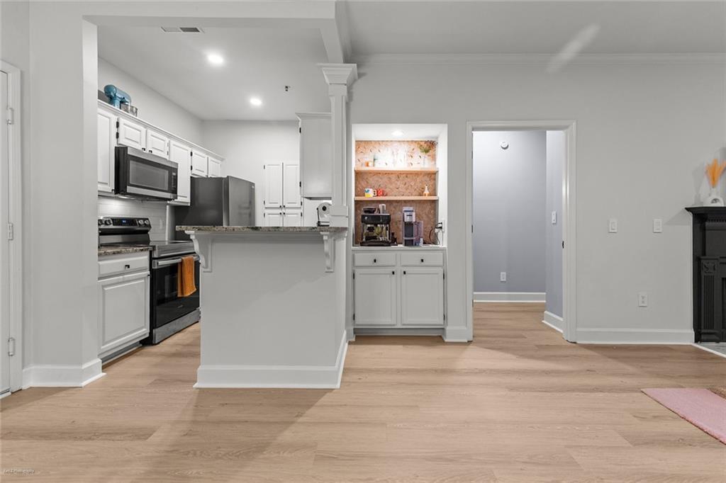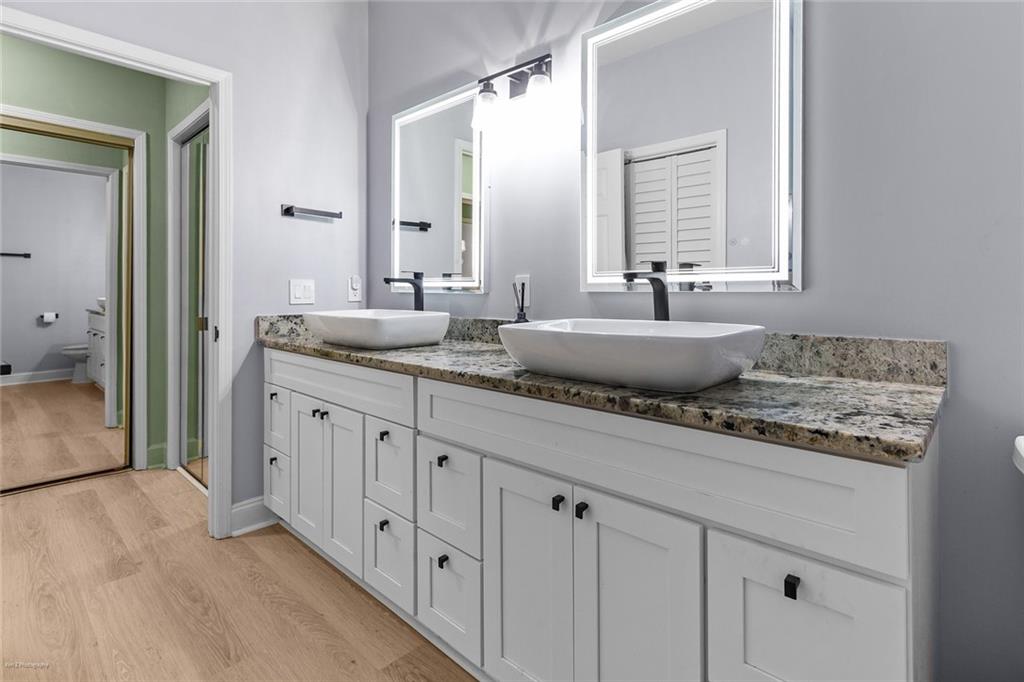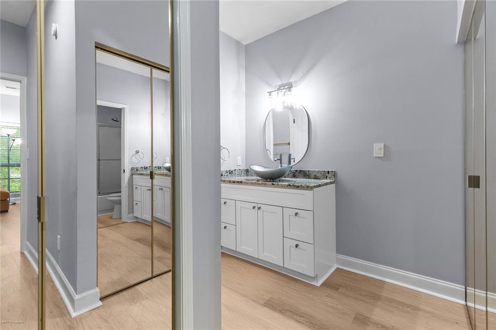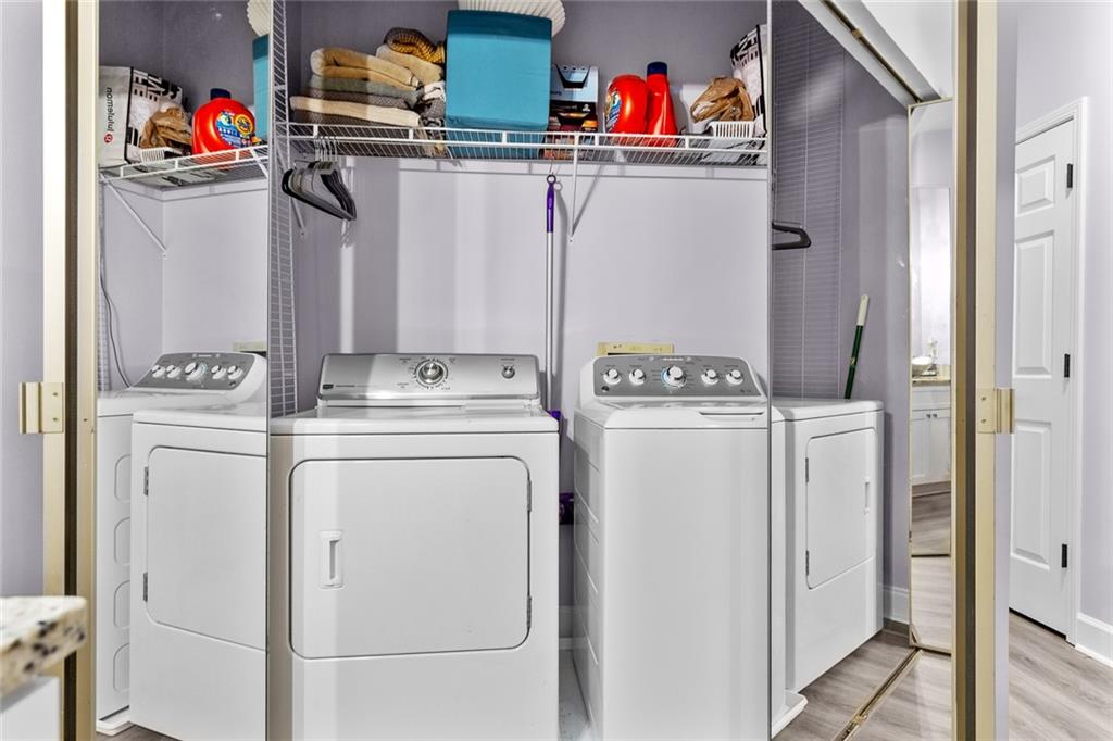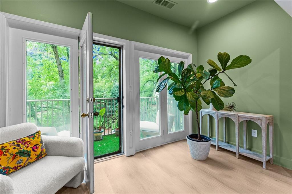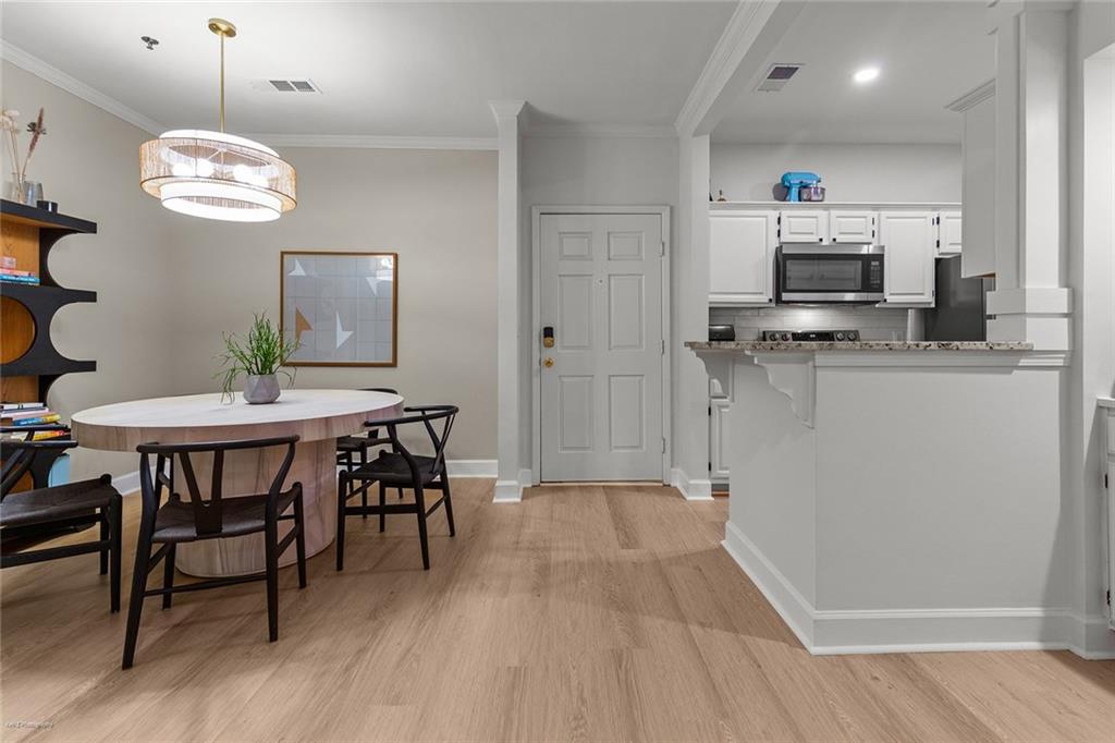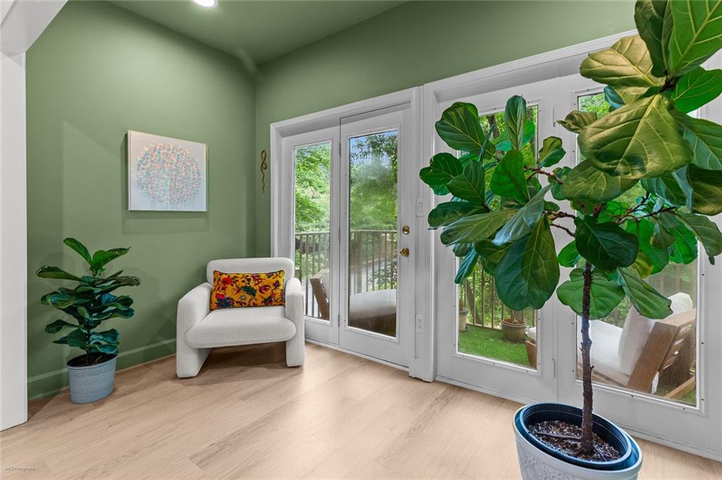 Welcome Home to the Heart of Buckhead! This beautifully updated condo offers more than just a place to live—it’s a place to feel at home. Nestled in one of Atlanta’s most desirable neighborhoods, you're just a short stroll to Lenox Mall, MARTA, local parks, and some of the best restaurants Buckhead has to offer. Step inside to discover an inviting open-concept floor plan bathed in natural light. The brand new luxury vinyl plank flooring adds warmth and style, while the cozy living room with a fireplace sets the stage for relaxing evenings or entertaining friends. The charming dining area is accented with freshly painted walls, and a built-in coffee bar is ready for your morning ritual. Need space to work from home? The separate sunroom makes the perfect home office or reading nook, complete with serene views and access to your own private balcony—an ideal spot to unwind with a glass of wine after a long day. The bright white kitchen is as functional as it is beautiful, featuring stainless steel appliances, granite countertops, a tile backsplash, a breakfast bar, and a roomy pantry for all your storage needs. Retreat to your spacious primary suite, large enough for a king-size bed and a cozy reading chair. You’ll love the two oversized closets and the spa-inspired en-suite bathroom, complete with a luxurious walk-in tiled shower featuring an overhead rain shower and handheld sprayer, plus a double-sink vanity with lighted mirrors. Designed with privacy in mind, the split-bedroom layout is perfect for roommates or guests. The second bedroom also includes generous closet space and an adjacent full bathroom. Washer and dryer stay with the unit—just one more detail that makes life here easy. Step outside your front door and enjoy access to resort-style amenities, including a sparkling saltwater pool, a fully equipped fitness center, and a business center—all right inside your building. There’s even a small private park with a peaceful creek and a quiet cul-de-sac for safe dog walks or evening strolls. Safety and peace of mind come standard, with a gated entrance and controlled access. This is more than a condo—it’s your sanctuary in the city. Don’t miss this rare opportunity to call Buckhead home. Schedule your private tour today! 2 assigned parking spaces