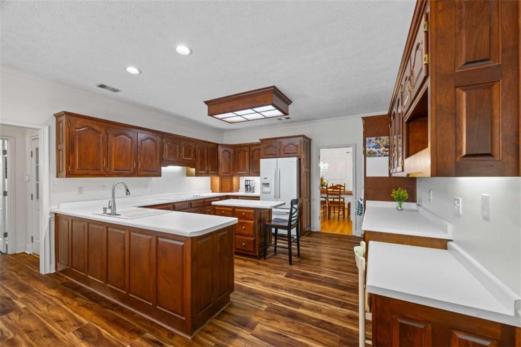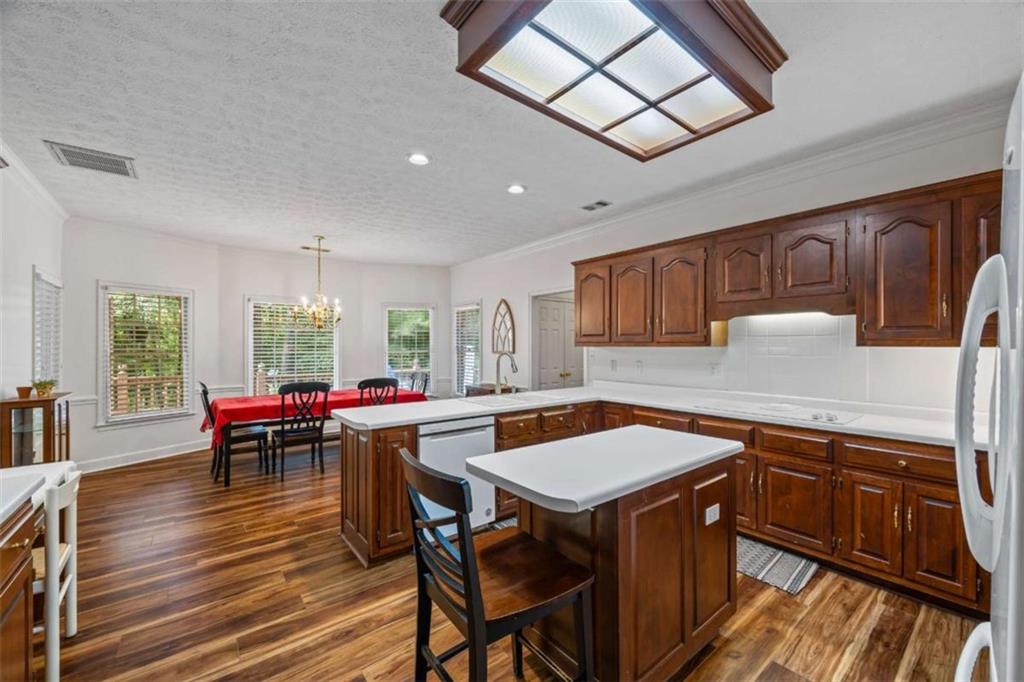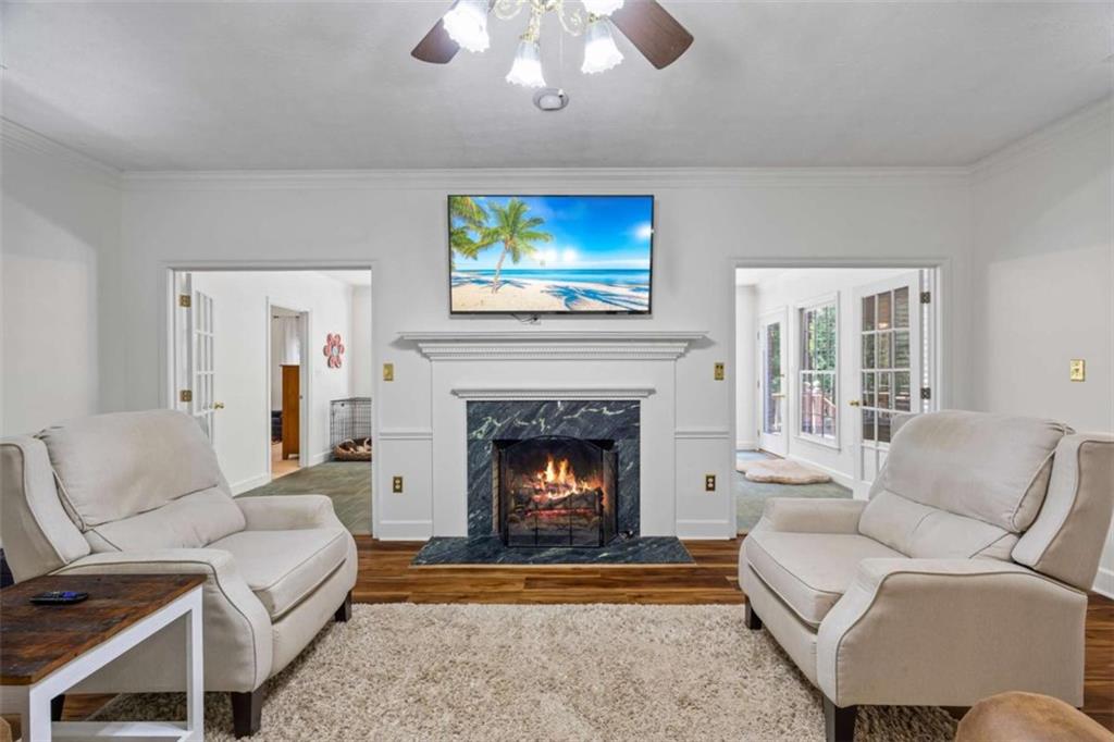 Traditional Brick Ranch in a Wooded Setting Spacious Floorplan + Sunroom Retreat Nestled on a beautifully wooded lot, this timeless brick ranch offers the perfect blend of classic Southern charm and functional space. With generously sized rooms, detailed craftsmanship, and serene surroundings, this one truly feels like home from the moment you pull in. 3 spacious bedrooms + dedicated office/den, perfect for working from home or relaxing. 2.5 bathrooms, including an oversized primary suite with a his and her walk-in closet, separate vanities, soaking tub & walk-in shower. Gorgeous hardwood & LVP flooring and rich custom cabinetry throughout the kitchen. A massive laundry/mudroom complete with sink, storage, and half bath for all of your families needs and back door access. Enjoy family meals in the formal dining room or cozy breakfast nook overlooking nature right outside the window. A warm and inviting family room with a fireplace + double French door access to the light-filled sunroom with beautiful slate flooring- where you can enjoy your morning coffee and unwind in the evening. For more living space, the basement is finished with a full bath, Kitchen, Living Room with fireplace, Bedroom with walk-in closet and three other flex rooms! An additional basement space accessed from the back yard can hold all of your yard equipment and tools. Private back deck with wooded views overlooking a detached screened in building with additional deck for grilling and spending time with family. This home offers an attic space big enough to store all of your holiday decor and family treasures, with the potential to be finished out to create additional living space. Staghorn Plantation Estates also offers a Recreation Center that is about one minute's walk from this property and amenities include a 38 acre lake with beach, playground, basketball court, clubhouse, pickleball court, fire pit and chapel. Located just minutes from town but tucked away for peace and quiet, this home has been lovingly maintained and offers space, privacy, and timeless design.