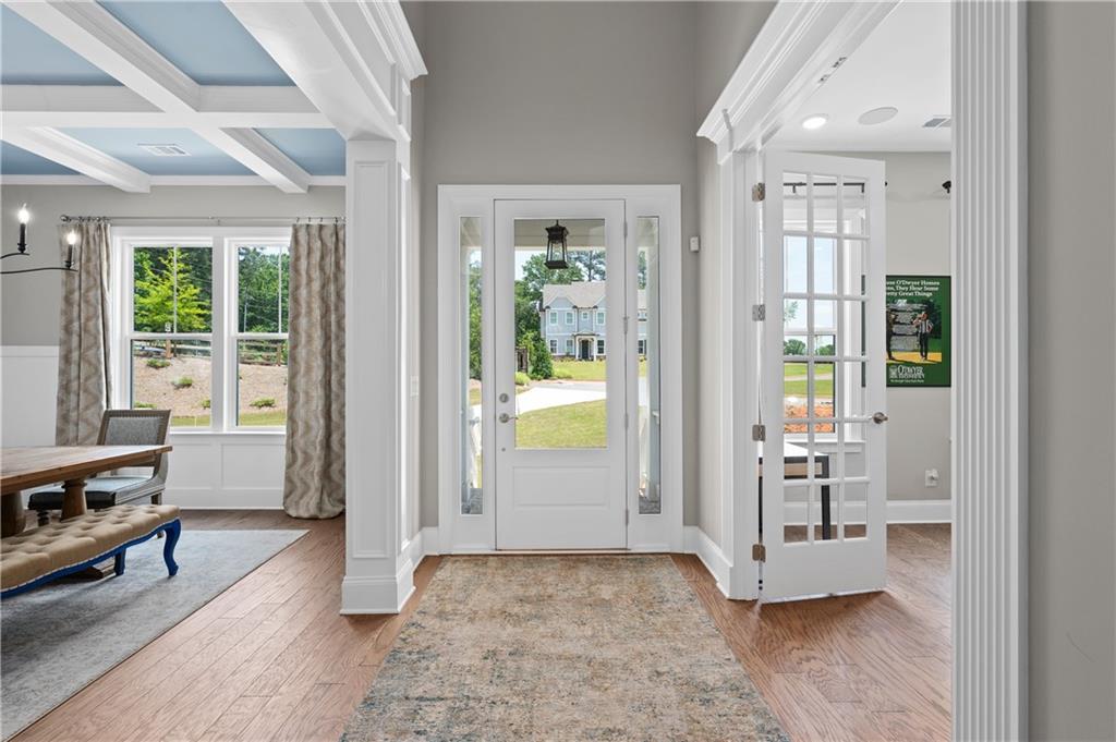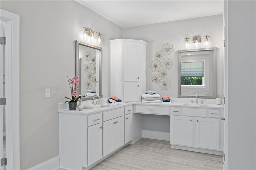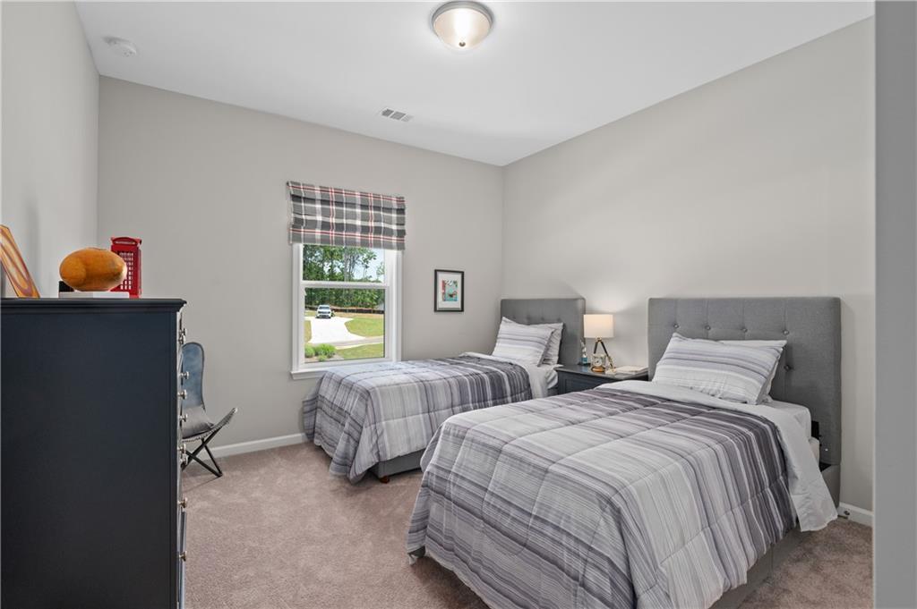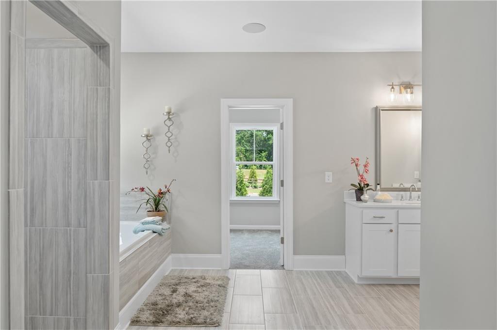 MODEL HOME IS AVAILABLE NOW! LOVE AT FIRST SIGHT when you open the front door of this modern farmhouse and step into the fabulous Longford on a full unfinished basement. The two-story foyer affords a view of the light-filled great room, dining with real coffered ceiling and home office/5th bedroom. Hearthside entertaining space makes for a rose' kind of day with its cozy feel overlooking the backyard. This home has a to-die-for kitchen with huge quartz island and a giant walk-in pantry that will be the envy of all your friends! Designer tile backsplash, quartz tops and painted white cabinetry continue from the kitchen to the butler's pantry. Laundry/mudroom on main with entrances from both the 2-car side-entry garage and the attached 3rd car garage. Open rail to basement adds to the grand feel of this home which boasts 5 bedrooms, 4 bathrooms. Upstairs, the primary retreat beckons! Behind the double doors is your personal escape from the daily grind where you'll relax in a shower featuring both a rain can and shower wand by Delta on separate valves. Prefer a soak? Then ease into a hot bath in the soaking tub. Large closet for all your fashion. Private en suite is perfect for a nursery or a special guest. The media room could be a playroom, home office or even a 6th bedroom. A shared suite comprised of two more bedrooms with walk-in closets and private bath complete the bedroom level. Over 1 1/2 acres to enjoy! This beautiful new home in hot Cumming, Forsyth County, will not last long! Move in as early as September 15!