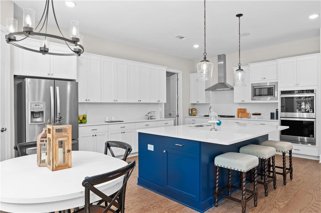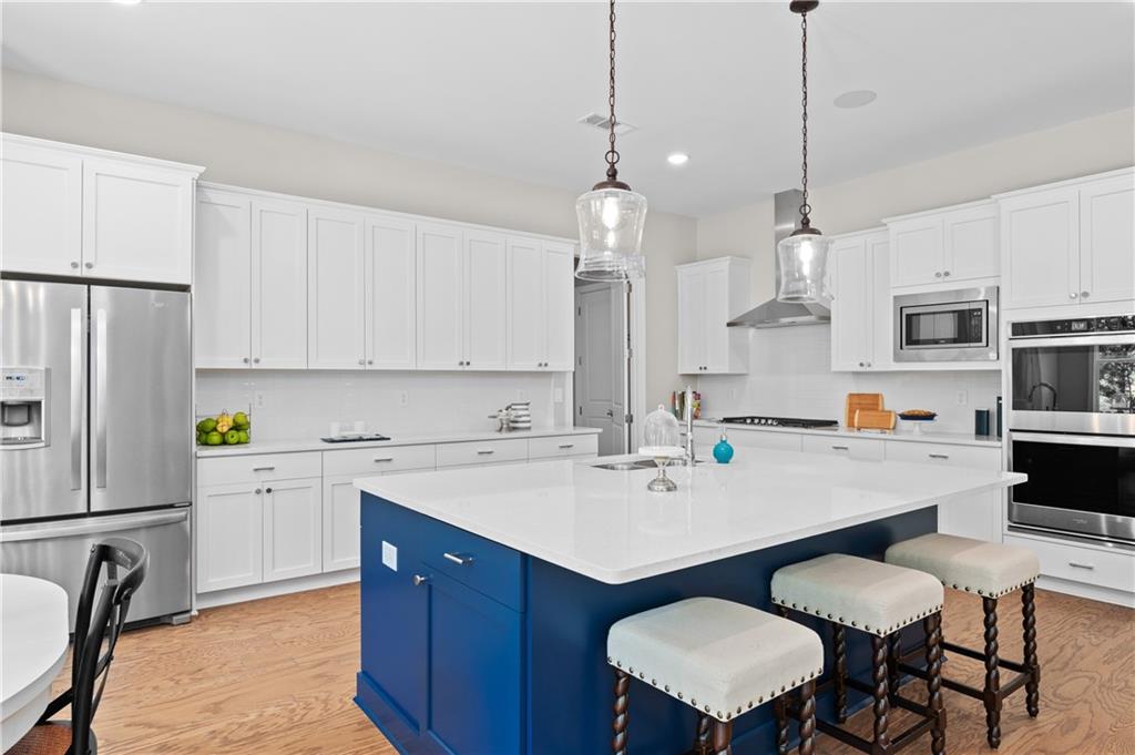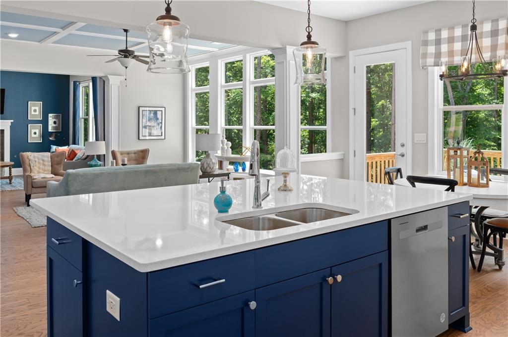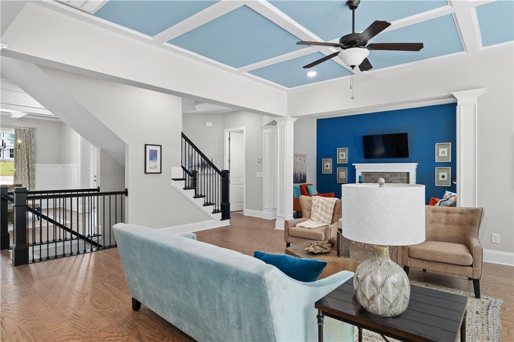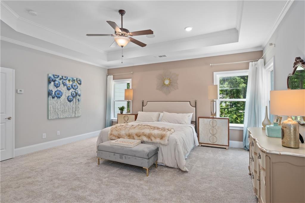 MODEL HOME IS AVAILABLE NOW! LOVE AT FIRST SIGHT when you open the front door of this modern farmhouse and step into the fabulous Longford on a full unfinished basement. The two-story foyer affords a view of the light-filled great room, dining with real coffered ceiling and home office/5th bedroom. Hearthside entertaining space makes for a rose' kind of day with its cozy feel overlooking the backyard. This home has a to-die-for kitchen with huge quartz island and a giant walk-in pantry that will be the envy of all your friends! Designer tile backsplash, quartz tops and painted white cabinetry continue from the kitchen to the butler's pantry. Laundry/mudroom on main with entrances from both the 2-car side-entry garage and the attached 3rd car garage. Open rail to basement adds to the grand feel of this home which boasts 5 bedrooms, 4 bathrooms. Upstairs, the primary retreat beckons! Behind the double doors is your personal escape from the daily grind where you'll relax in a shower featuring both a rain can and shower wand by Delta on separate valves. Prefer a soak? Then ease into a hot bath in the soaking tub. Large closet for all your fashion. Private en suite is perfect for a nursery or a special guest. The media room could be a playroom, home office or even a 6th bedroom. A shared suite comprised of two more bedrooms with walk-in closets and private bath complete the bedroom level. Over 1 1/2 acres to enjoy! This beautiful new home in hot Cumming, Forsyth County, will not last long! Move in as early as September 15!