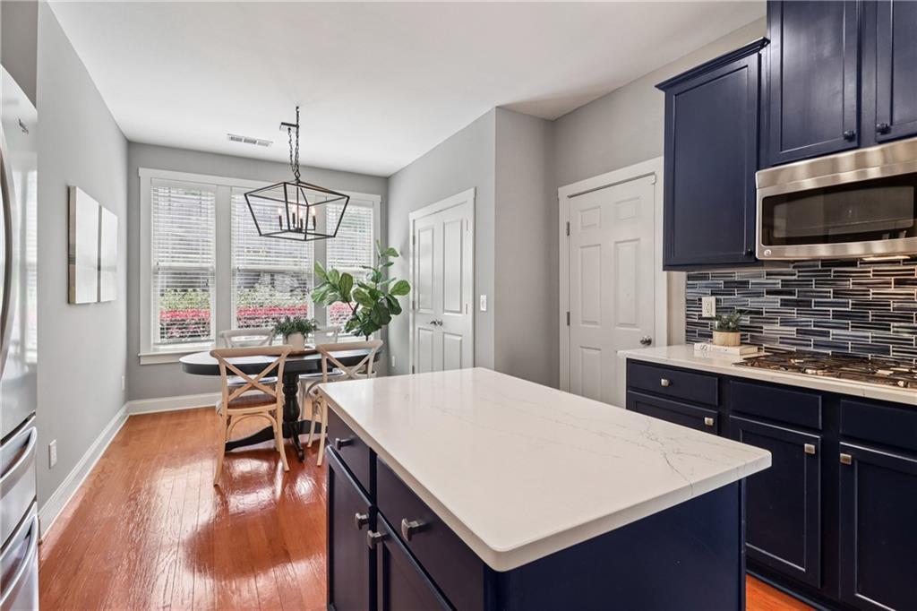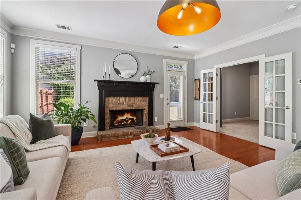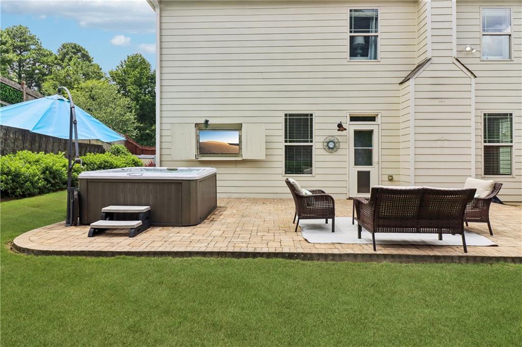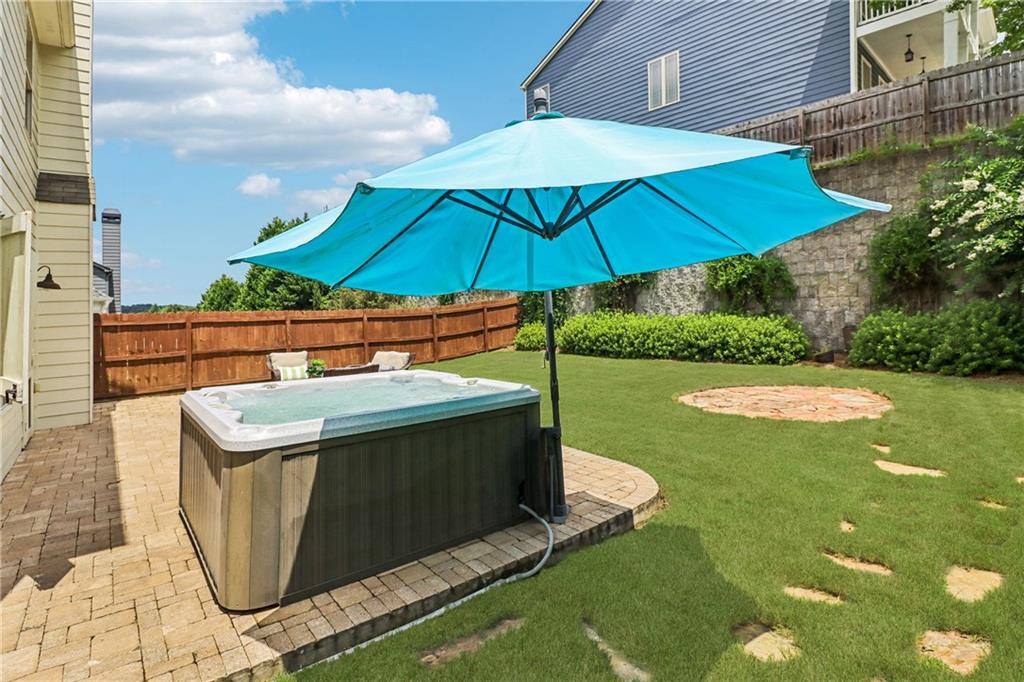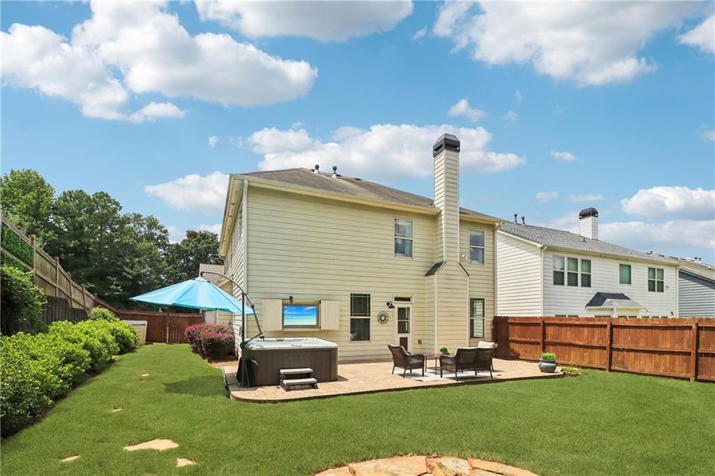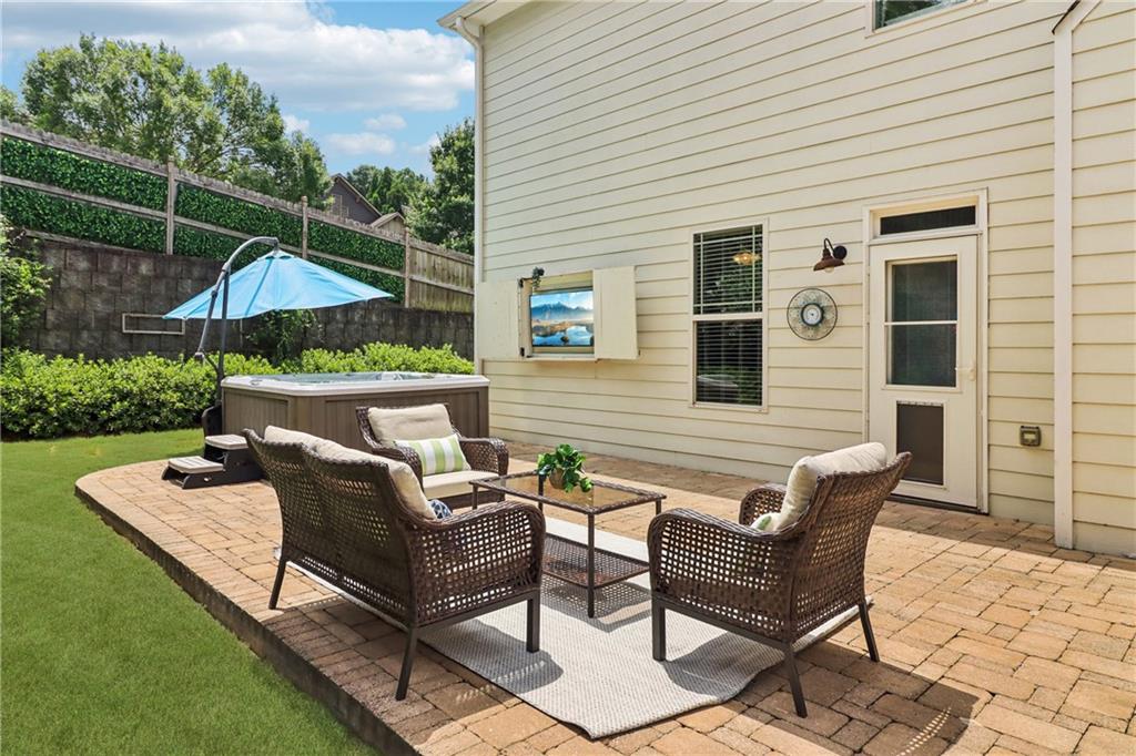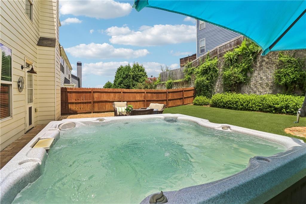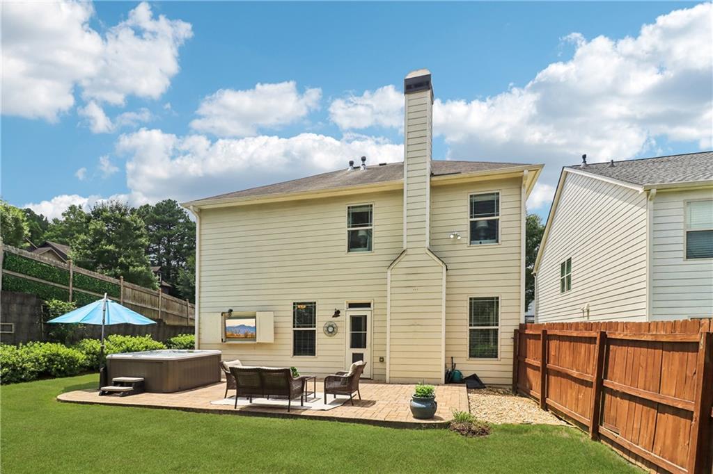 Welcome to this beautifully renovated home in the sought-after Vinings on the Chattahoochee swim-tennis neighborhood. Perfectly positioned on a sunny premium corner lot—one of the largest fenced lots in the community—this home offers exceptional sidewalk access to the neighborhood pool, tennis courts, playground, dog park, Whittier Mill Park, Chattahoochee nature trails, and Bellwood Coffee. You’re also minutes from The Works, Top Golf, Public House 28, and Scott’s Crossing Library. Inside, you’re greeted by a soaring two-story foyer, hardwood floors, and an inviting open-concept layout. The kitchen is a showstopper, featuring quartz countertops, a designer backsplash, rich dark navy shaker cabinets, stainless steel appliances, pantry, and sunlit eat-in breakfast area with an open pass-through view to the family room. The spacious family room boasts a gas, wood-burning fireplace and flows seamlessly to your private outdoor retreat. The stone patio is ideal for year-round entertaining, complete with an outdoor TV and hot tub—which stays with the home! A second stone patio sits within the large, flat, grassy, and landscaped fenced backyard, perfect for a fire pit with additional seating. A main-level bedroom with glass French doors offers flexibility as a guest room, office, or playroom, and is located next to a full guest bath with glass shower. Upstairs, the oversized primary suite includes a generous sitting area, an expansive custom California Closet, and a spa-like bath with dual quartz vanities, updated tile, walk in glass shower, and separate soaking tub. Two additional bedrooms share a fully renovated full bath with gorgeous tile and a glass shower, and a laundry room adds convenience to the upper level. Additional highlights include new HVAC systems, fresh paint, custom closet systems throughout, a detached storage shed, and a two-car garage with epoxy flooring—conveniently located just off the kitchen for easy grocery hauls. Don’t miss this one—truly a rare gem in one of the Westside’s most connected communities!