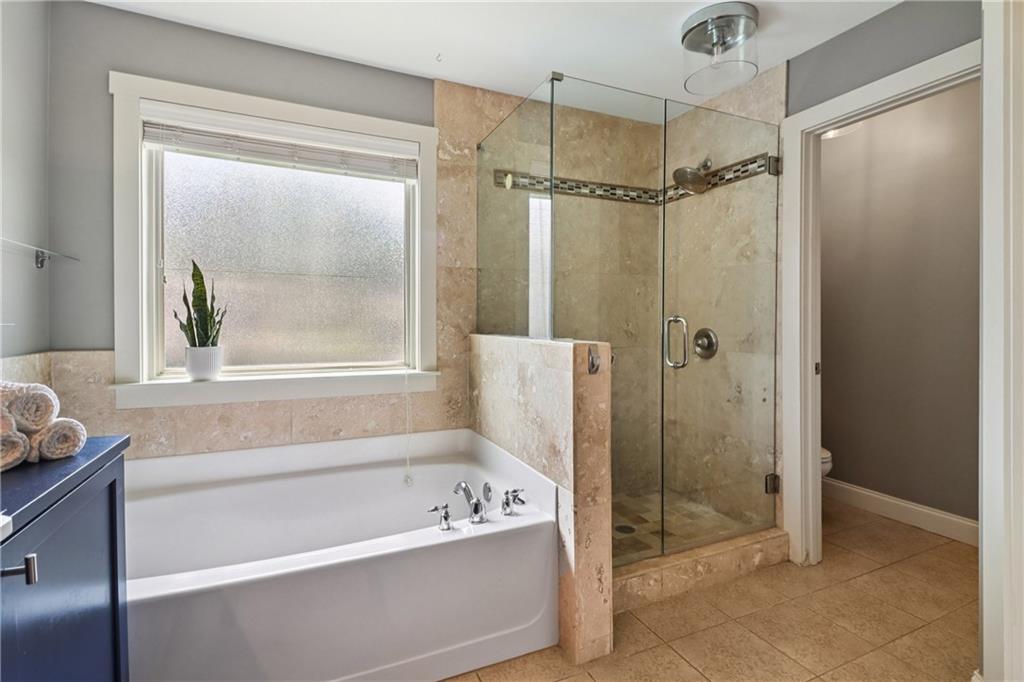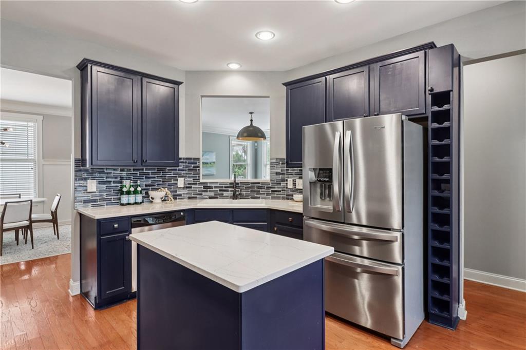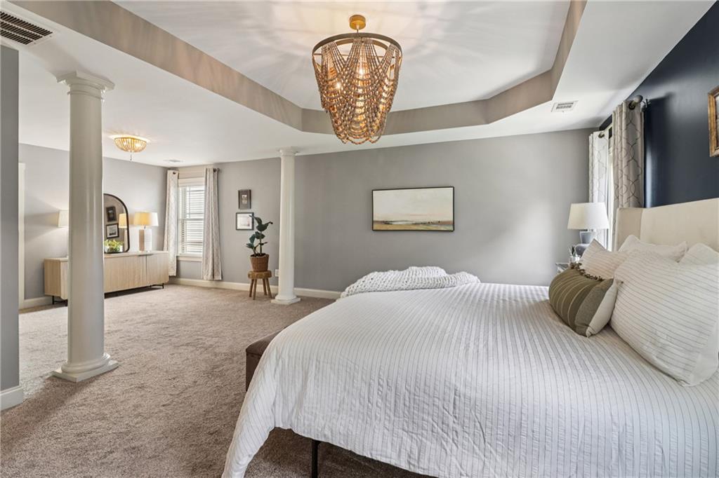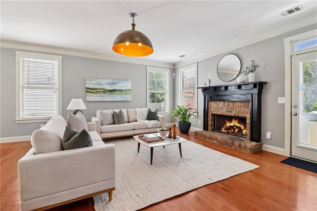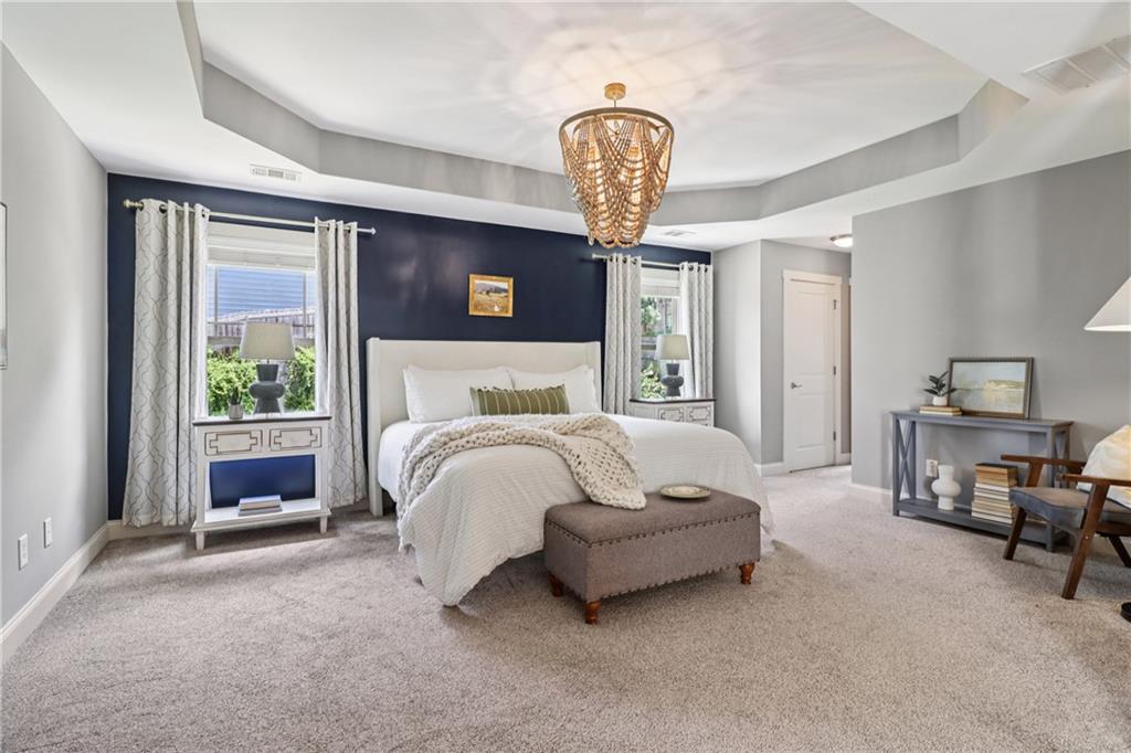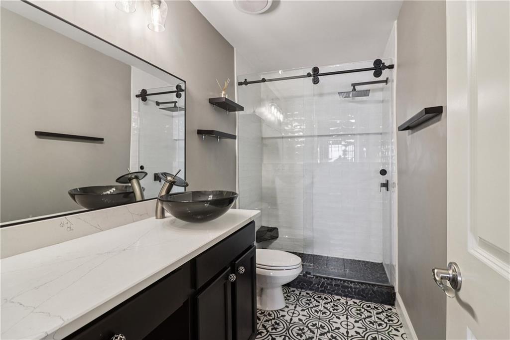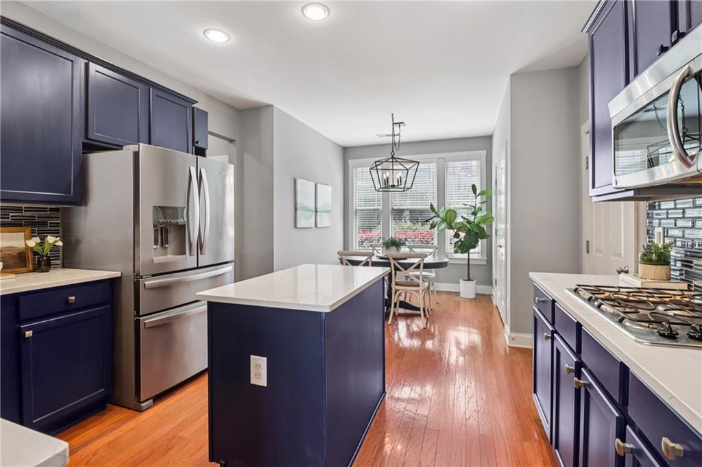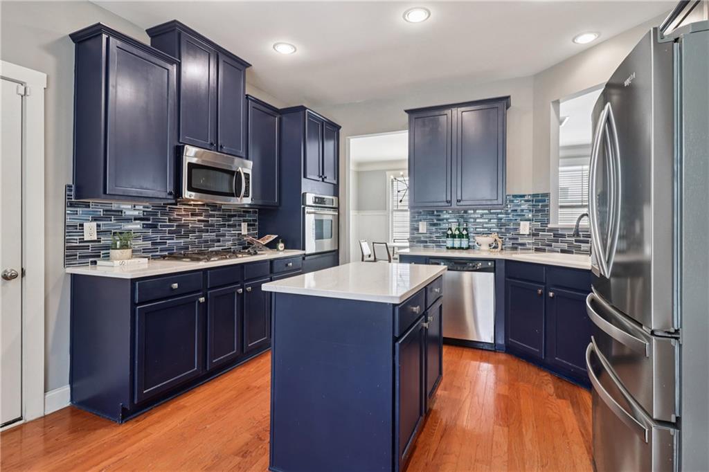Welcome to this beautifully renovated home in the sought-after Vinings on the Chattahoochee swim-tennis neighborhood. Perfectly positioned on a sunny premium corner lot—one of the largest fenced lots in the community—this home offers exceptional sidewalk access to the neighborhood pool, tennis courts, playground, dog park, Whittier Mill Park, Chattahoochee nature trails, and Bellwood Coffee. You’re also minutes from The Works, Top Golf, Public House 28, and Scott’s Crossing Library. Inside, you’re greeted by a soaring two-story foyer, hardwood floors, and an inviting open-concept layout. The kitchen is a showstopper, featuring quartz countertops, a designer backsplash, rich dark navy shaker cabinets, stainless steel appliances, pantry, and sunlit eat-in breakfast area with an open pass-through view to the family room. The spacious family room boasts a gas, wood-burning fireplace and flows seamlessly to your private outdoor retreat. The stone patio is ideal for year-round entertaining, complete with an outdoor TV and hot tub—which stays with the home! A second stone patio sits within the large, flat, grassy, and landscaped fenced backyard, perfect for a fire pit with additional seating. A main-level bedroom with glass French doors offers flexibility as a guest room, office, or playroom, and is located next to a full guest bath with glass shower. Upstairs, the oversized primary suite includes a generous sitting area, an expansive custom California Closet, and a spa-like bath with dual quartz vanities, updated tile, walk in glass shower, and separate soaking tub. Two additional bedrooms share a fully renovated full bath with gorgeous tile and a glass shower, and a laundry room adds convenience to the upper level. Additional highlights include new HVAC systems, fresh paint, custom closet systems throughout, a detached storage shed, and a two-car garage with epoxy flooring—conveniently located just off the kitchen for easy grocery hauls. Don’t miss this one—truly a rare gem in one of the Westside’s most connected communities!