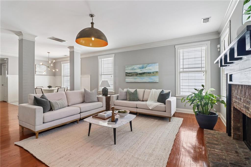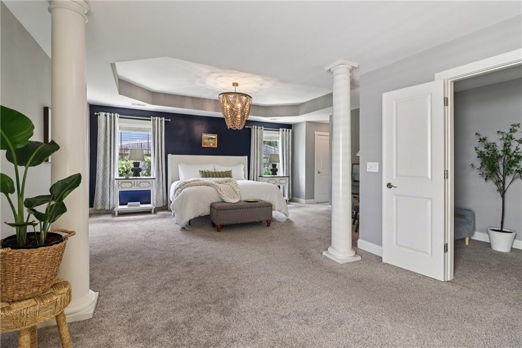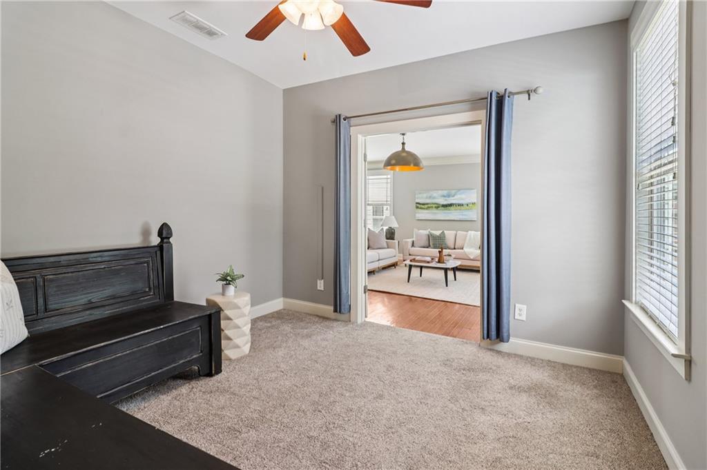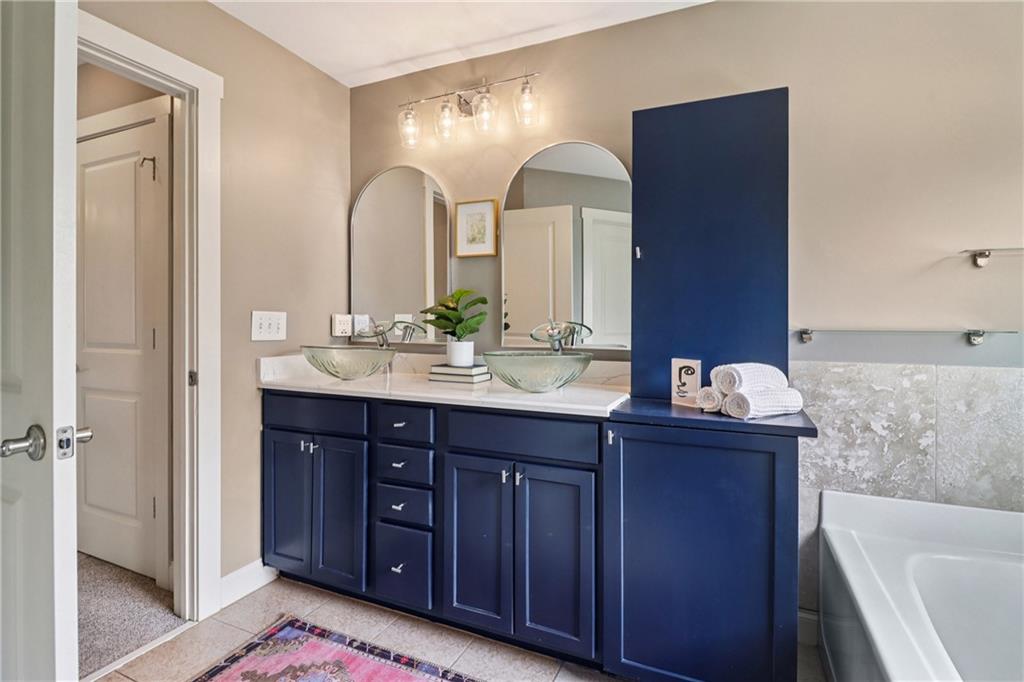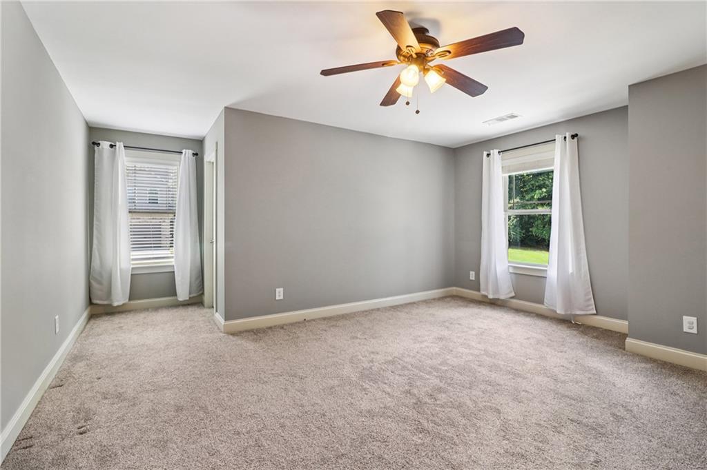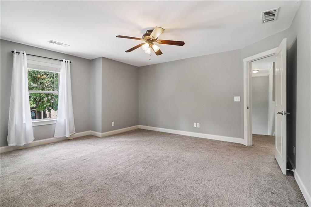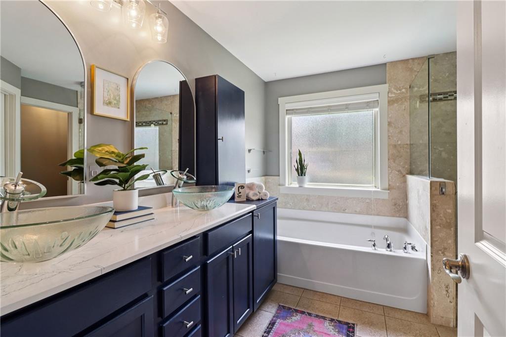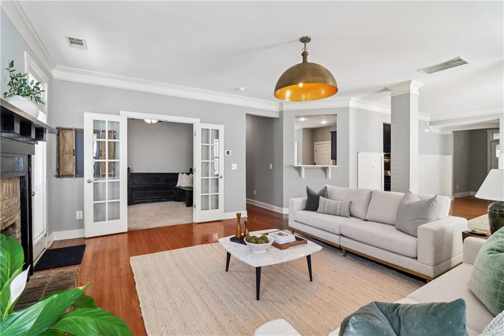 Welcome to this beautifully renovated home in the sought-after Vinings on the Chattahoochee swim-tennis neighborhood. Perfectly positioned on a sunny premium corner lot—one of the largest fenced lots in the community—this home offers exceptional sidewalk access to the neighborhood pool, tennis courts, playground, dog park, Whittier Mill Park, Chattahoochee nature trails, and Bellwood Coffee. You’re also minutes from The Works, Top Golf, Public House 28, and Scott’s Crossing Library. Inside, you’re greeted by a soaring two-story foyer, hardwood floors, and an inviting open-concept layout. The kitchen is a showstopper, featuring quartz countertops, a designer backsplash, rich dark navy shaker cabinets, stainless steel appliances, pantry, and sunlit eat-in breakfast area with an open pass-through view to the family room. The spacious family room boasts a gas, wood-burning fireplace and flows seamlessly to your private outdoor retreat. The stone patio is ideal for year-round entertaining, complete with an outdoor TV and hot tub—which stays with the home! A second stone patio sits within the large, flat, grassy, and landscaped fenced backyard, perfect for a fire pit with additional seating. A main-level bedroom with glass French doors offers flexibility as a guest room, office, or playroom, and is located next to a full guest bath with glass shower. Upstairs, the oversized primary suite includes a generous sitting area, an expansive custom California Closet, and a spa-like bath with dual quartz vanities, updated tile, walk in glass shower, and separate soaking tub. Two additional bedrooms share a fully renovated full bath with gorgeous tile and a glass shower, and a laundry room adds convenience to the upper level. Additional highlights include new HVAC systems, fresh paint, custom closet systems throughout, a detached storage shed, and a two-car garage with epoxy flooring—conveniently located just off the kitchen for easy grocery hauls. Don’t miss this one—truly a rare gem in one of the Westside’s most connected communities!