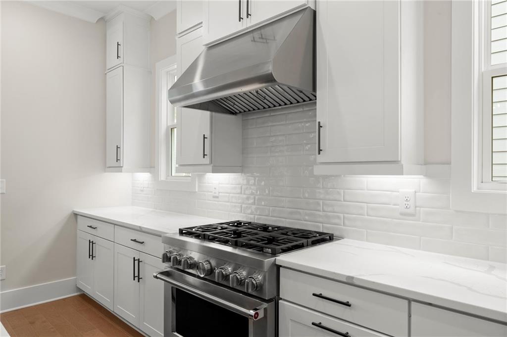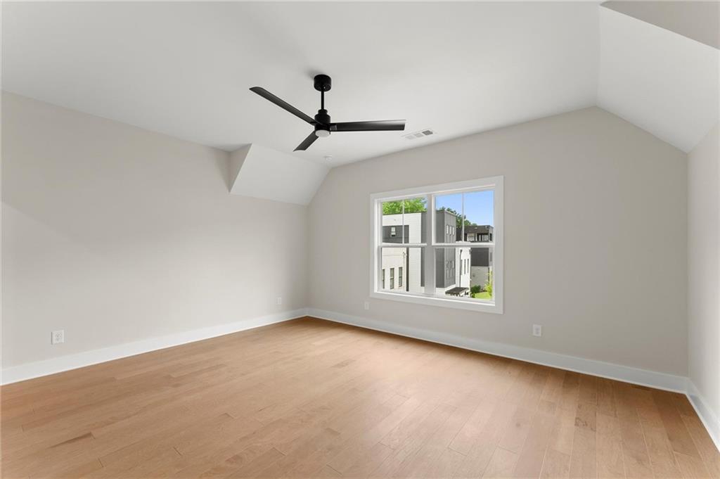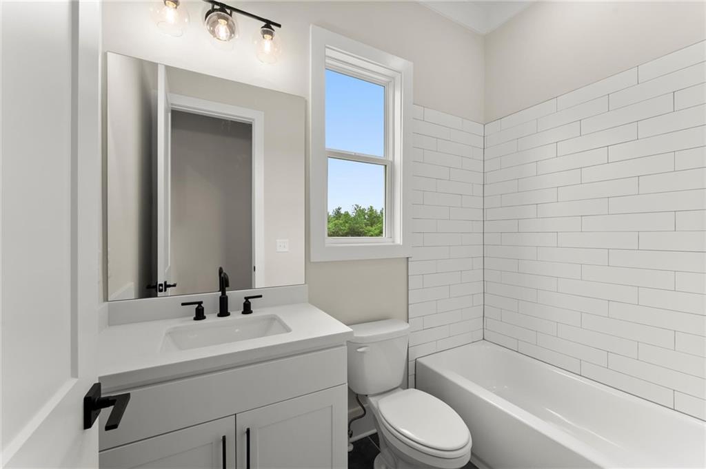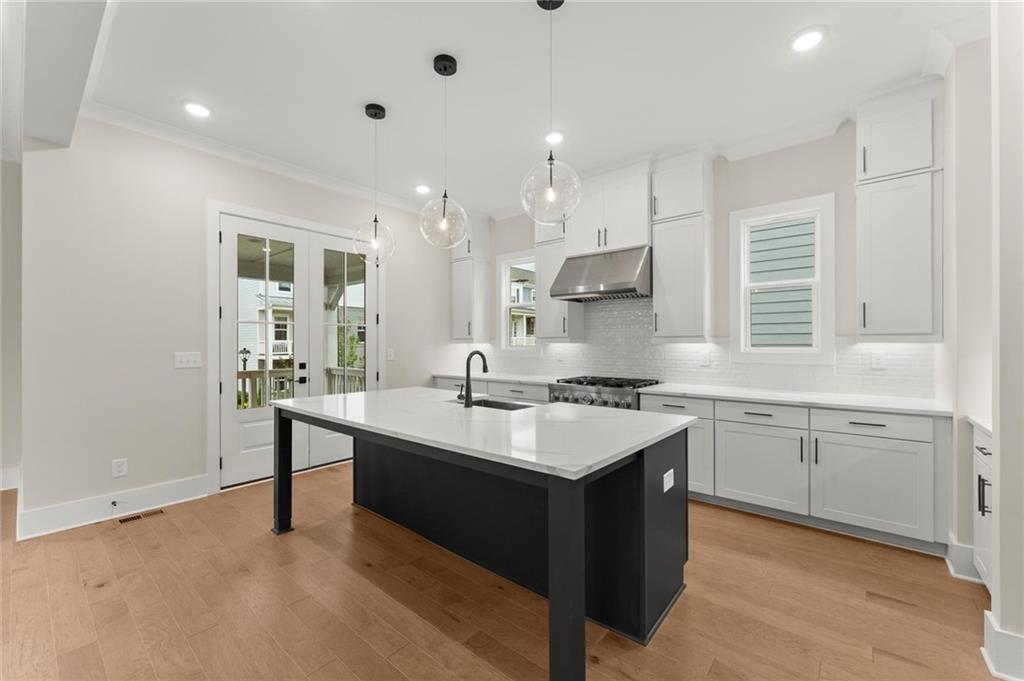 Experience refined city living with the Mya Plan by Brock Built Homes—an exceptional new construction located in the heart of West Midtown Atlanta, offering unparalleled access to the BeltLine and vibrant neighborhood amenities. Nestled on a coveted corner lot, this home boasts uninterrupted BeltLine views, white cabinetry, and abundant natural light throughout, blending modern sophistication with timeless design. Step onto the property and immediately appreciate the home’s striking curb appeal—lush landscaping, a spacious covered front porch, and 8-foot grand double doors lead you into a bright, inviting interior. With oversized windows, hardwood floors, and soaring 9'–10' ceilings, the open-concept living space is bathed in natural light and complemented by elegant finishes. The entry level features a spacious foyer and a private guest suite with an en-suite bath—ideal for visitors or multi-generational living. Upstairs, the expansive chef’s kitchen is a showpiece, showcasing designer-selected quartz countertops, ceiling-height white cabinetry, and top-tier KitchenAid industrial appliances. The oversized island seamlessly flows into a large dining and living area, perfect for hosting guests. Unwind by the fireplace in the family room or take in the stunning city views from the oversized second-story deck—a true urban retreat. On the third level, the primary suite offers treetop views, tray ceilings, and a spa-inspired bathroom complete with a frameless glass shower, quartz-topped dual vanity, and premium fixtures. Two additional generously sized bedrooms are connected by a Jack-and-Jill bathroom with a double vanity and separate shower, combining privacy with convenience. This home is elevator-ready, ensuring effortless access to all levels and future-proofing your living experience. Don’t miss your chance to own one of the last new single-family homes on the Atlanta BeltLine. West Town offers an unbeatable location, thoughtfully designed homes, and a rare opportunity to experience luxury urban living. The Mya Plan is move-in ready, and you can schedule a tour today! Please note: Listing photos and videos are representative of the floor plan and not the actual home.