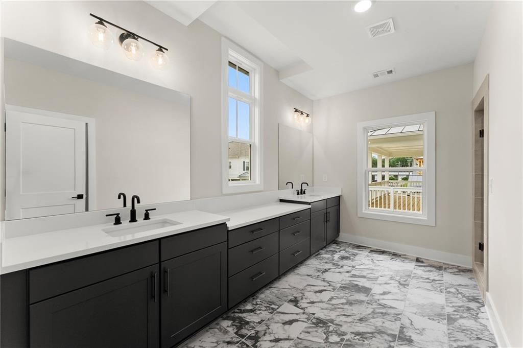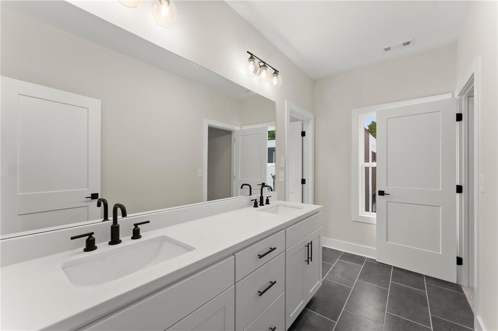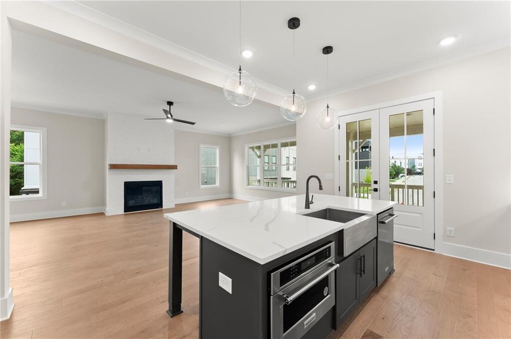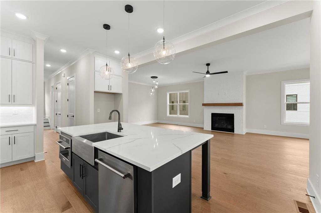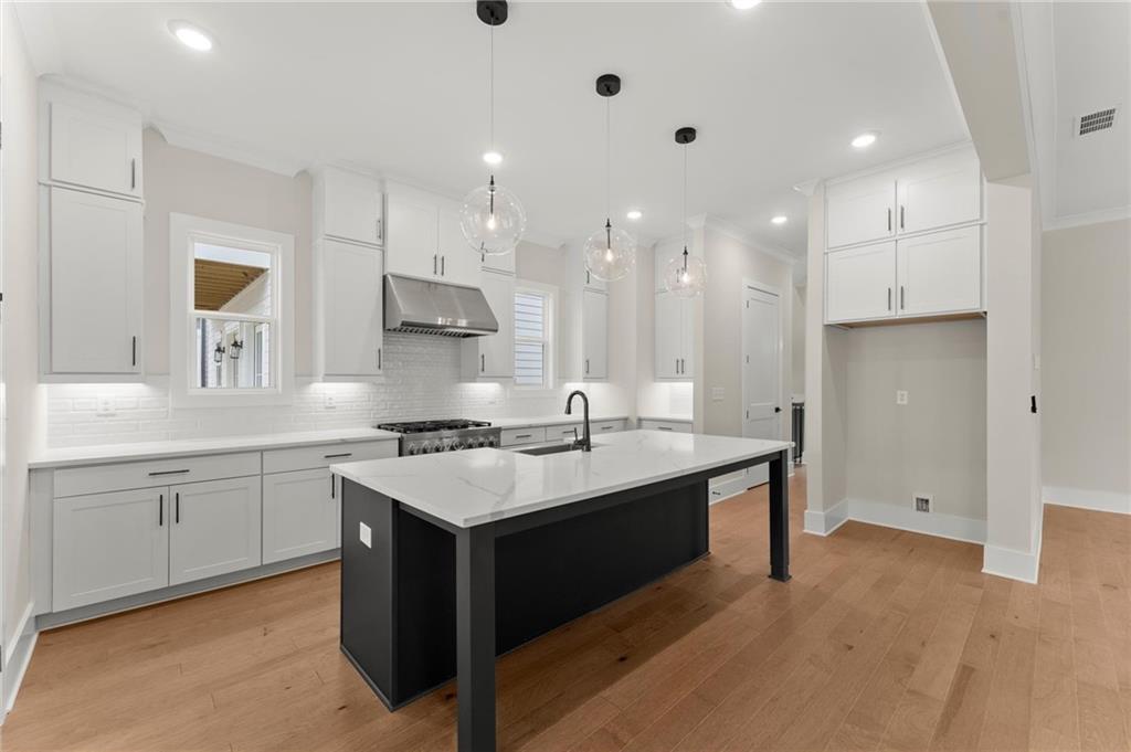Experience refined city living with the Mya Plan by Brock Built Homes—an exceptional new construction located in the heart of West Midtown Atlanta, offering unparalleled access to the BeltLine and vibrant neighborhood amenities. Nestled on a coveted corner lot, this home boasts uninterrupted BeltLine views, white cabinetry, and abundant natural light throughout, blending modern sophistication with timeless design. Step onto the property and immediately appreciate the home’s striking curb appeal—lush landscaping, a spacious covered front porch, and 8-foot grand double doors lead you into a bright, inviting interior. With oversized windows, hardwood floors, and soaring 9'–10' ceilings, the open-concept living space is bathed in natural light and complemented by elegant finishes. The entry level features a spacious foyer and a private guest suite with an en-suite bath—ideal for visitors or multi-generational living. Upstairs, the expansive chef’s kitchen is a showpiece, showcasing designer-selected quartz countertops, ceiling-height white cabinetry, and top-tier KitchenAid industrial appliances. The oversized island seamlessly flows into a large dining and living area, perfect for hosting guests. Unwind by the fireplace in the family room or take in the stunning city views from the oversized second-story deck—a true urban retreat. On the third level, the primary suite offers treetop views, tray ceilings, and a spa-inspired bathroom complete with a frameless glass shower, quartz-topped dual vanity, and premium fixtures. Two additional generously sized bedrooms are connected by a Jack-and-Jill bathroom with a double vanity and separate shower, combining privacy with convenience. This home is elevator-ready, ensuring effortless access to all levels and future-proofing your living experience. Don’t miss your chance to own one of the last new single-family homes on the Atlanta BeltLine. West Town offers an unbeatable location, thoughtfully designed homes, and a rare opportunity to experience luxury urban living. The Mya Plan is move-in ready, and you can schedule a tour today! Please note: Listing photos and videos are representative of the floor plan and not the actual home.