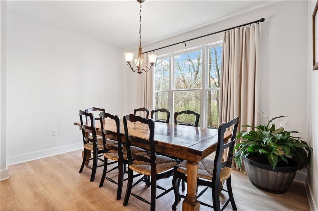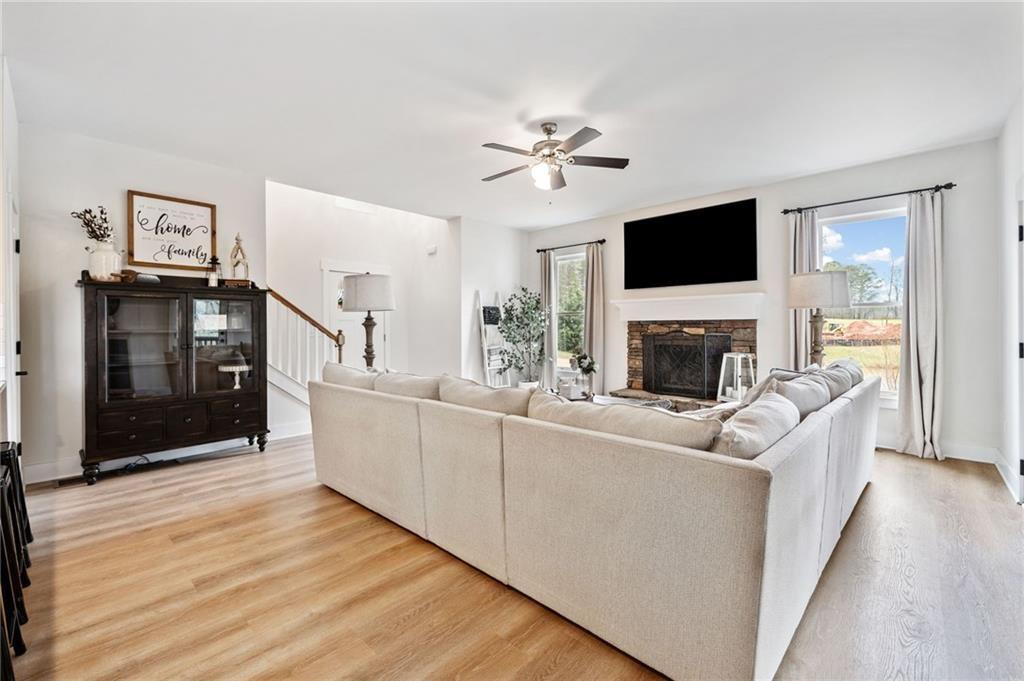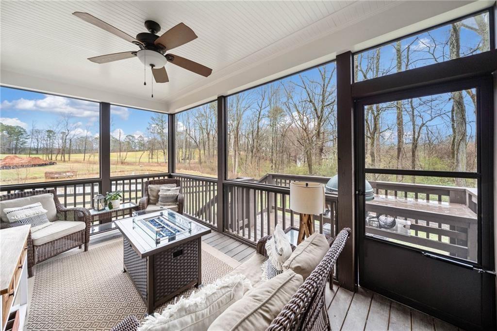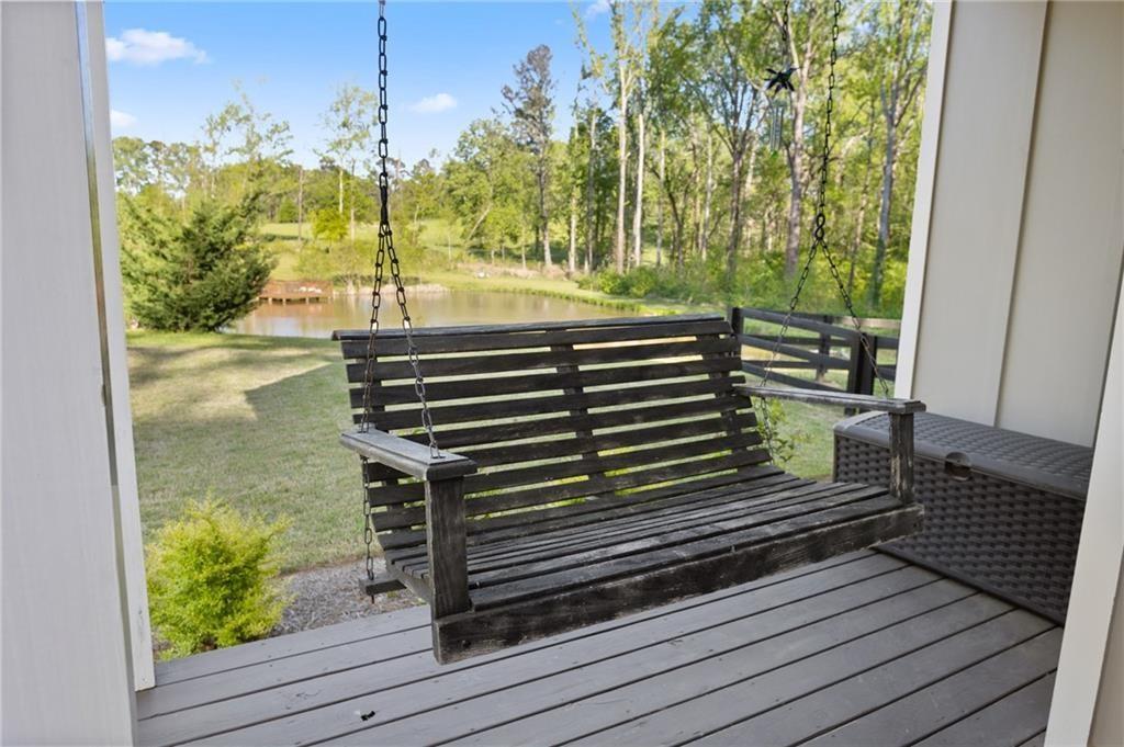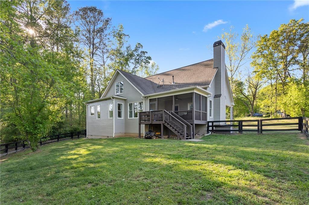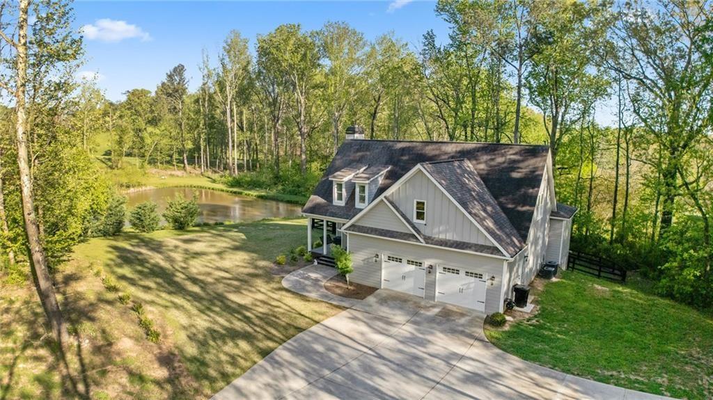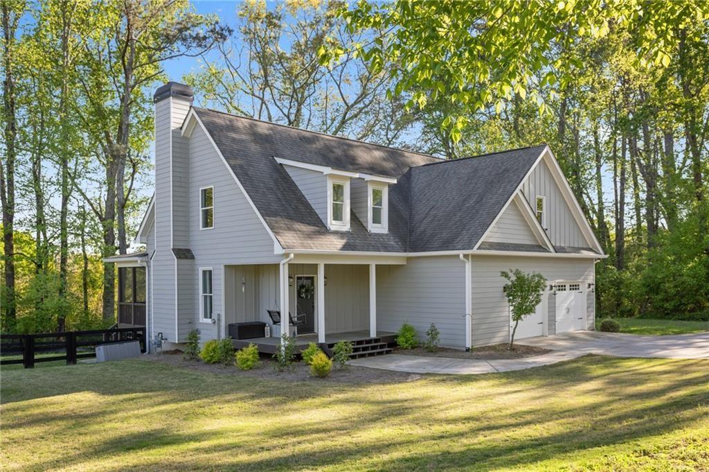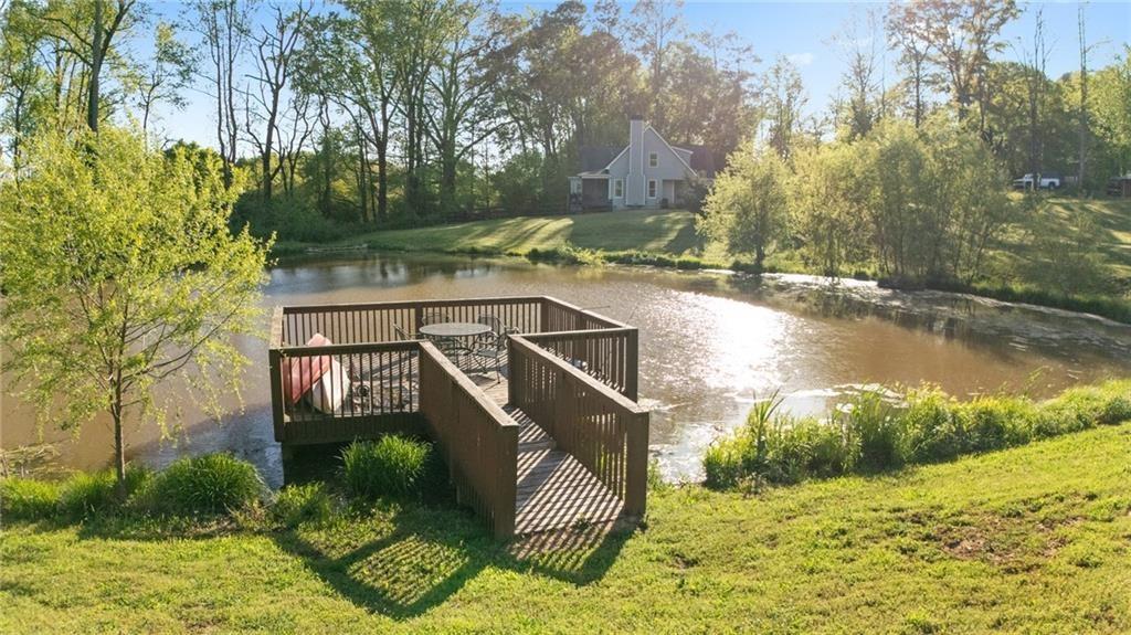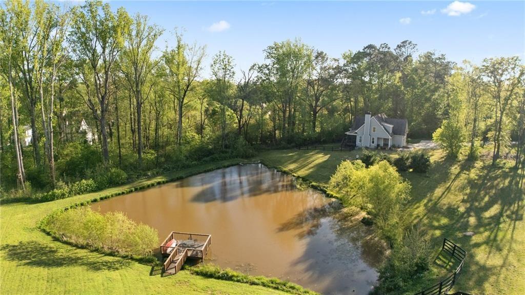 Experience the perfect mix of comfort, privacy, and natural beauty in this custom-built retreat. Tucked away on two peaceful acres with its own pond and dock, this home offers a truly serene setting—ideal for fishing, kayaking, or simply relaxing by the water. Step onto the charming covered front porch, the perfect spot to unwind and enjoy the quiet surroundings. Inside, you'll find stylish LVP flooring throughout (no carpet!), leading into a spacious, open layout. The family room is a warm and inviting space, featuring a stunning stone fireplace surrounded by windows that fill the room with natural light and beautiful views of the property. The kitchen is a chef’s dream, featuring granite countertops, a tile backsplash, stainless steel appliances, and plenty of prep space. The formal dining room is perfect for hosting family or friends, while the mudroom adds everyday practicality. The main-level primary suite features a spa-like bath offering dual vanities, a garden tub, a large tiled walk-in shower, and spacious walk-in closet. Upstairs, you’ll find three oversized bedrooms, all with LVP flooring, and a beautifully updated full bath. Plus, walkout attic space perfect for storing all your extra belongings. Enjoy peaceful mornings or quiet evenings from the screened-in back porch, overlooking a fully fenced backyard. Located in a desirable school district, this home offers it all. Just a short drive to Woodstock, Roswell, Alpharetta, with shopping and restaurants all close by.