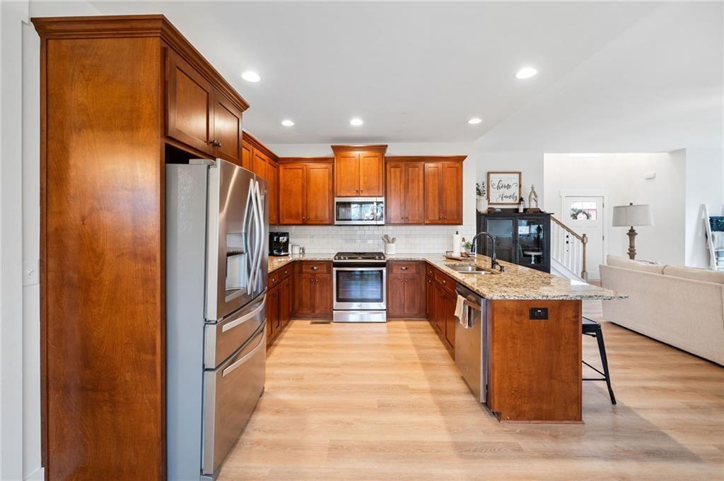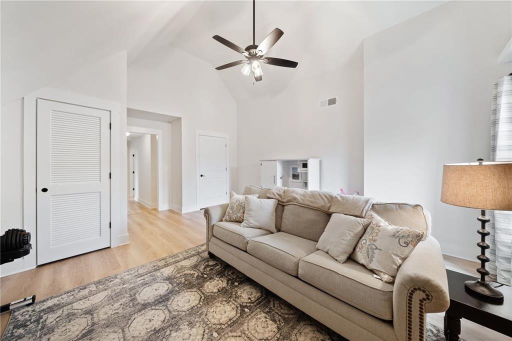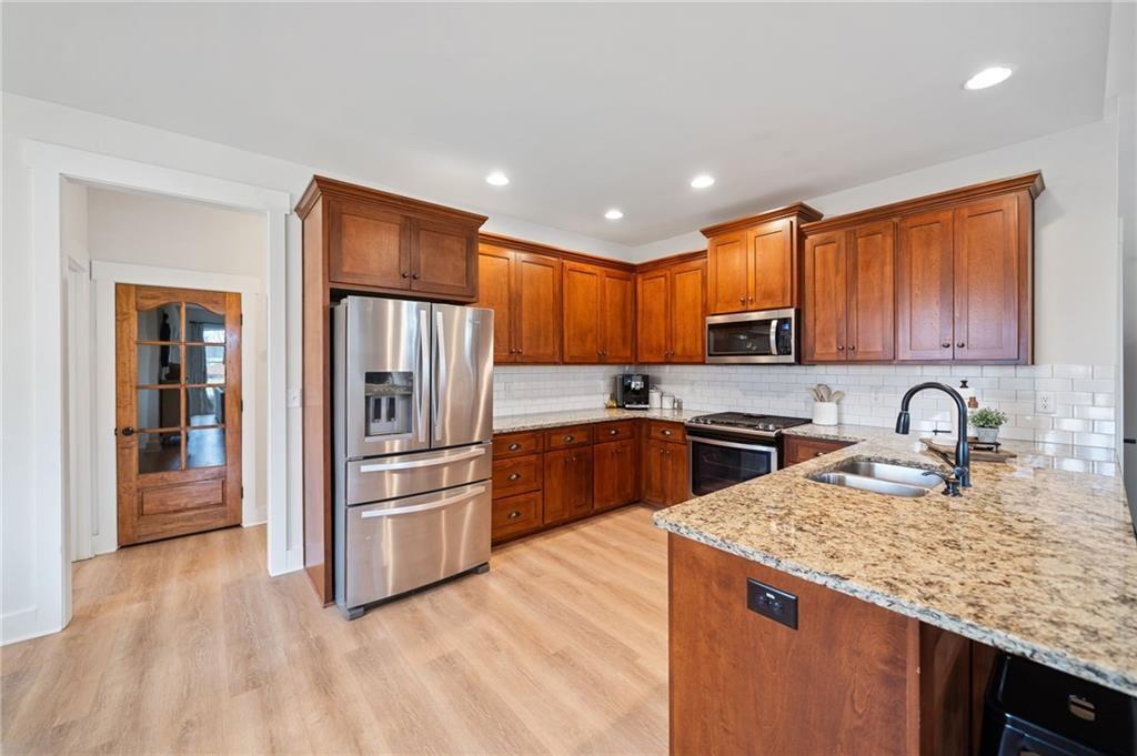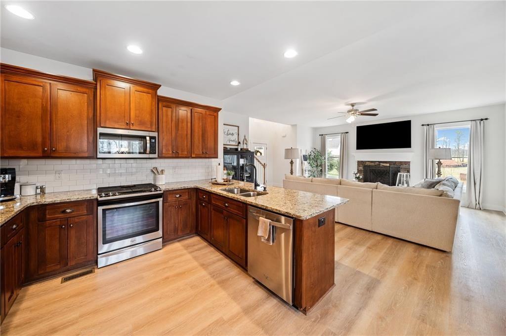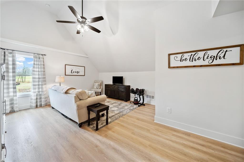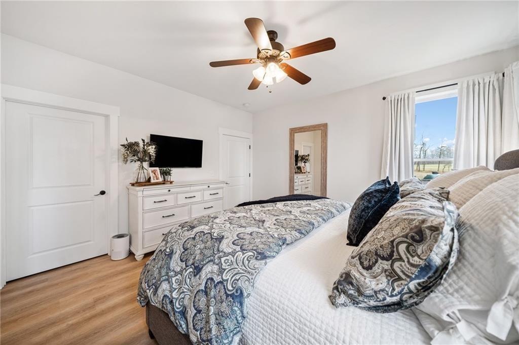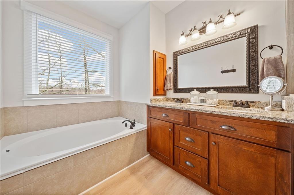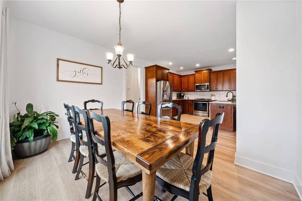 Experience the perfect mix of comfort, privacy, and natural beauty in this custom-built retreat. Tucked away on two peaceful acres with its own pond and dock, this home offers a truly serene setting—ideal for fishing, kayaking, or simply relaxing by the water. Step onto the charming covered front porch, the perfect spot to unwind and enjoy the quiet surroundings. Inside, you'll find stylish LVP flooring throughout (no carpet!), leading into a spacious, open layout. The family room is a warm and inviting space, featuring a stunning stone fireplace surrounded by windows that fill the room with natural light and beautiful views of the property. The kitchen is a chef’s dream, featuring granite countertops, a tile backsplash, stainless steel appliances, and plenty of prep space. The formal dining room is perfect for hosting family or friends, while the mudroom adds everyday practicality. The main-level primary suite features a spa-like bath offering dual vanities, a garden tub, a large tiled walk-in shower, and spacious walk-in closet. Upstairs, you’ll find three oversized bedrooms, all with LVP flooring, and a beautifully updated full bath. Plus, walkout attic space perfect for storing all your extra belongings. Enjoy peaceful mornings or quiet evenings from the screened-in back porch, overlooking a fully fenced backyard. Located in a desirable school district, this home offers it all. Just a short drive to Woodstock, Roswell, Alpharetta, with shopping and restaurants all close by.