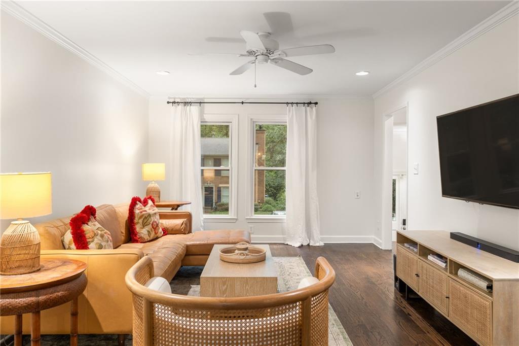 Tucked into the heart of Morningside Place, this classic brick townhome pairs timeless charm with everyday comfort in one of Atlanta’s most loved neighborhoods. Inside, natural light fills the open main living space, where the living room flows seamlessly into the dining area and kitchen. Whether you're hosting friends or enjoying a quiet night in, this layout makes it all feel easy. The kitchen is outfitted with white cabinetry, granite countertops, stainless steel appliances, a tile backsplash, and plenty of storage. Step outside to your private, fenced patio with space to garden, grill, or dine under the stars. Upstairs, the primary suite offers a peaceful retreat with a large walk-in closet and private bath. Two additional bedrooms and a full hall bath provide the flexibility to host guests, work from home, or grow into the space. The finished basement brings even more options, with room for a home gym, den, playroom, or creative studio. You’ll also have interior access to the one-car garage for easy parking and storage. This well-maintained home features a new HVAC, new water heater, and a newer roof that’s covered by the HOA. Live steps from Morningside Nature Preserve featuring scenic trails, a swing bridge, and the city’s favorite “dog beach,” along with the best dining and shopping in Morningside and Virginia Highland. Zoned for Morningside Elementary, this one truly checks all the boxes.