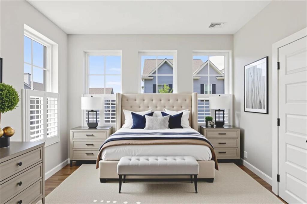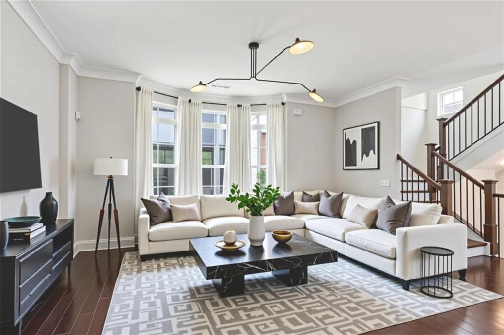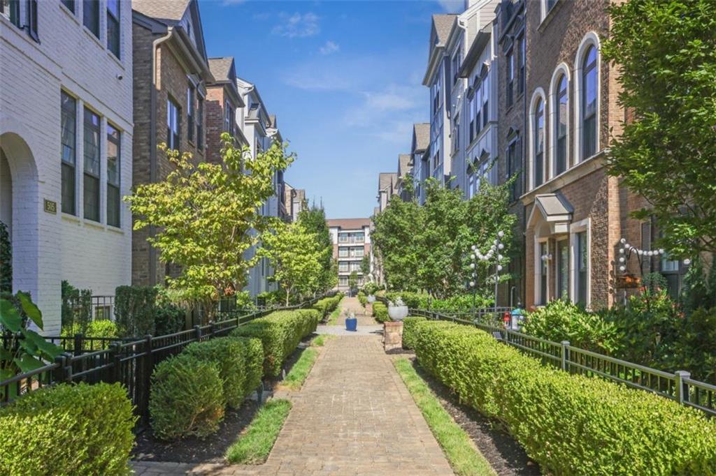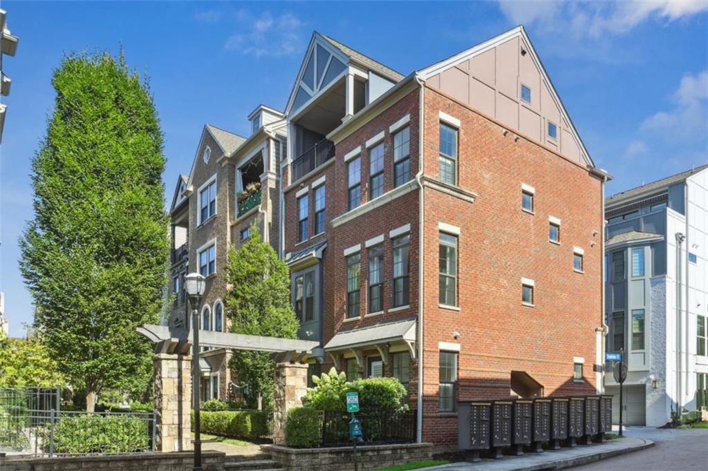 Experience refined in-town living in this stunning end-unit townhome nestled within the sought-after, gated community of Broadview Place in Atlanta's prestigious Buckhead community. Boasting Manhattan Brownstone vibes, this impeccably maintained, four-bedroom/three full bath/two half-bath residence spans 4 floors and is perfectly designed with thoughtfully curated living spaces. Boasting a sleek, modern aesthetic, the home features an open-concept layout highlighted by soaring 10-foot ceilings, rich hardwood floors, designer's select light fixtures, extensive trim package, and custom plantation shutters to name a few. The gourmet kitchen is an entertainer's dream open to both the sunlit dining area and living room. Upper-scale and perfectly equipped, this culinary masterpiece is appointed with top-of-the-line stainless steel appliances, beveled subway tile backsplash, granite counters that overflow to the spacious central island with bar seating, and ample custom cabinetry. Bedrooms and full baths span throughout the home, but you can find your personal retreat, the owner's suite, on the 3rd level. This primary haven is upgraded with plush carpet flooring, triple bay window, generous closet with shelving system, and is complete with a lavishly styled ensuite full bath. Tile floors, dual-sink vanity, large tiled shower accented with a frameless glass door-the primary bath is sure to please. Adding a touch of versatility, the top-floor flex space features an ideal layout for a media room, home office, or fitness area. This crowning jewel includes custom built-ins and French door access opening to a private, covered balcony with skyline views, offering a serene escape in the heart of the city. Additional highlights include a two-car attached garage, designer finishes throughout, and abundant of natural light from this perfectly positioned end-unit. Located just minutes away from major highways, MARTA, and just around the block from premier shops, dining, and entertainment, this exceptional residence offers the perfect blend of upscale comfort and unmatched convenience in one of Atlanta's most sought-after neighborhoods.