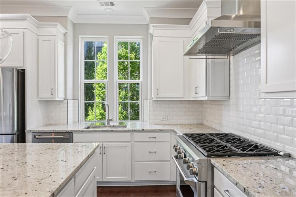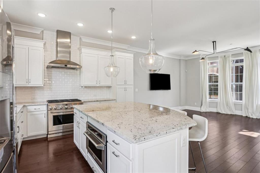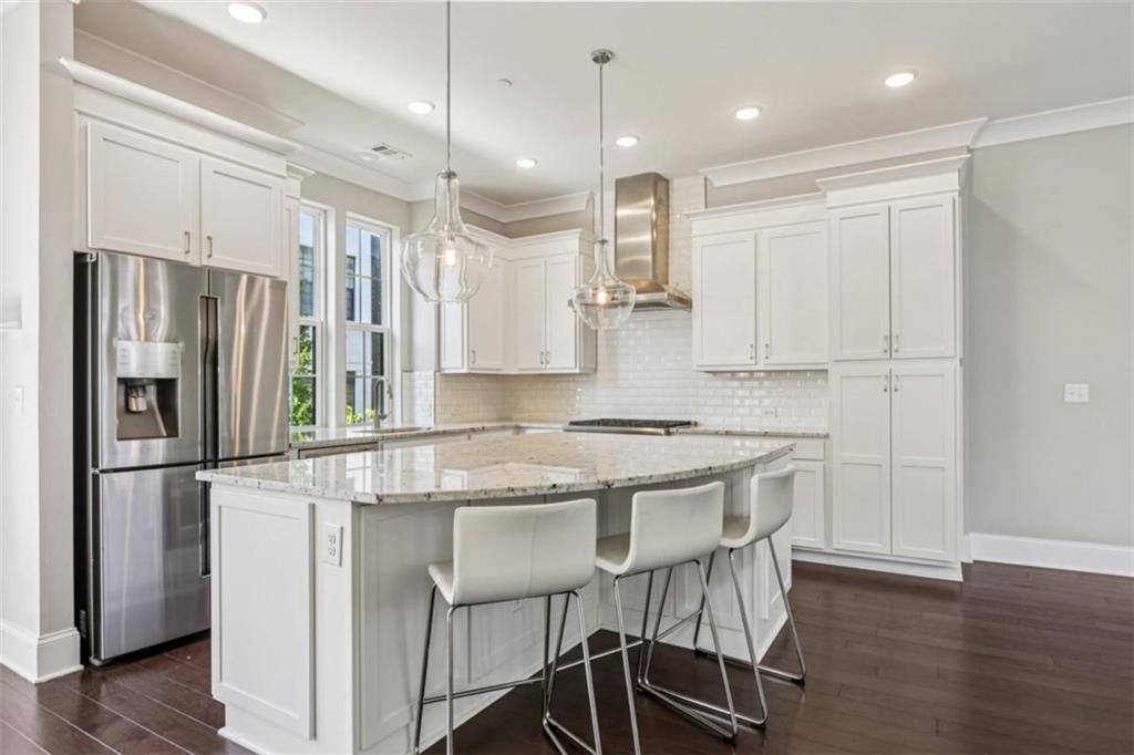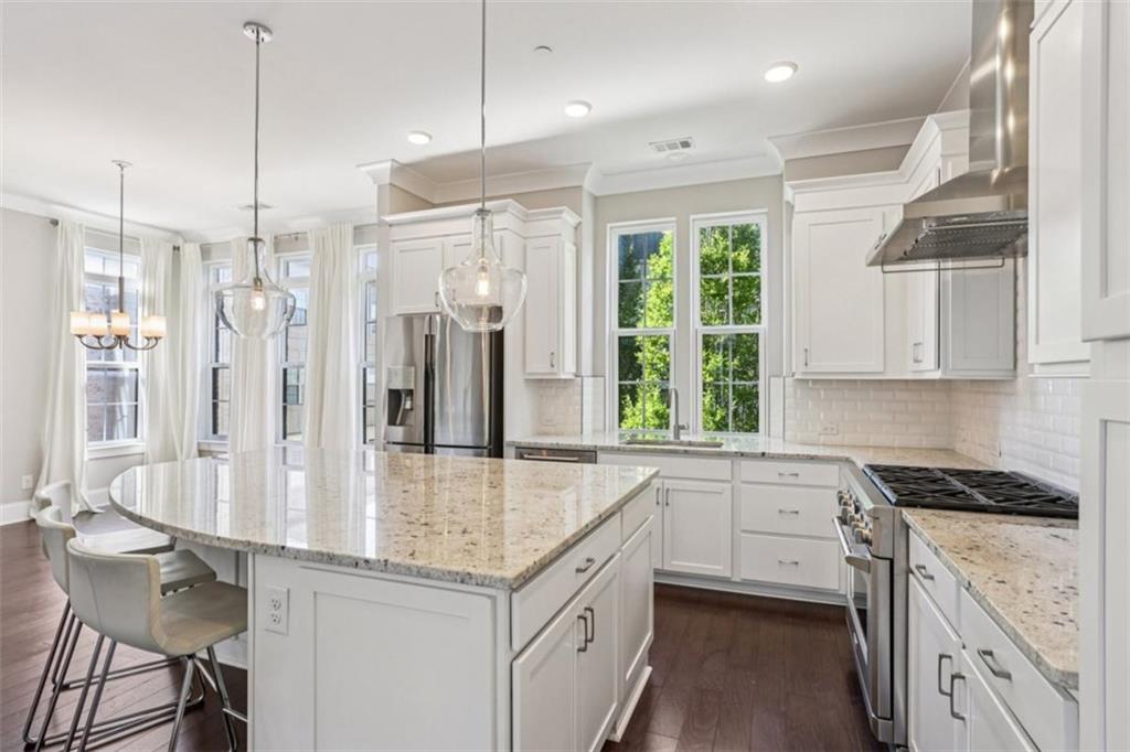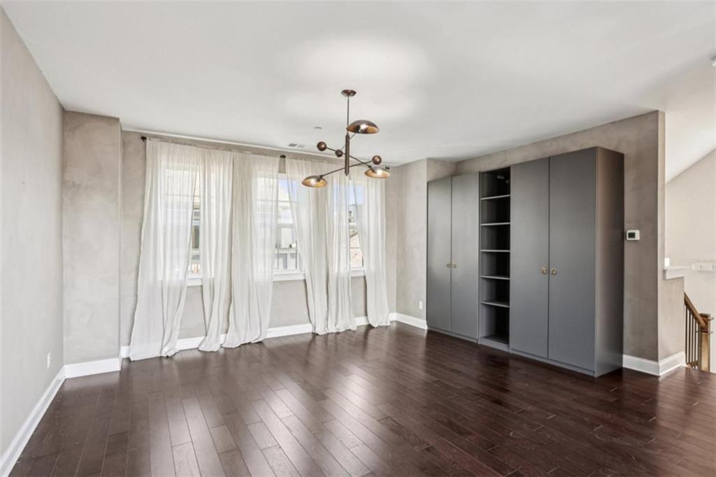 Experience refined in-town living in this stunning end-unit townhome nestled within the sought-after, gated community of Broadview Place in Atlanta's prestigious Buckhead community. Boasting Manhattan Brownstone vibes, this impeccably maintained, four-bedroom/three full bath/two half-bath residence spans 4 floors and is perfectly designed with thoughtfully curated living spaces. Boasting a sleek, modern aesthetic, the home features an open-concept layout highlighted by soaring 10-foot ceilings, rich hardwood floors, designer's select light fixtures, extensive trim package, and custom plantation shutters to name a few. The gourmet kitchen is an entertainer's dream open to both the sunlit dining area and living room. Upper-scale and perfectly equipped, this culinary masterpiece is appointed with top-of-the-line stainless steel appliances, beveled subway tile backsplash, granite counters that overflow to the spacious central island with bar seating, and ample custom cabinetry. Bedrooms and full baths span throughout the home, but you can find your personal retreat, the owner's suite, on the 3rd level. This primary haven is upgraded with plush carpet flooring, triple bay window, generous closet with shelving system, and is complete with a lavishly styled ensuite full bath. Tile floors, dual-sink vanity, large tiled shower accented with a frameless glass door-the primary bath is sure to please. Adding a touch of versatility, the top-floor flex space features an ideal layout for a media room, home office, or fitness area. This crowning jewel includes custom built-ins and French door access opening to a private, covered balcony with skyline views, offering a serene escape in the heart of the city. Additional highlights include a two-car attached garage, designer finishes throughout, and abundant of natural light from this perfectly positioned end-unit. Located just minutes away from major highways, MARTA, and just around the block from premier shops, dining, and entertainment, this exceptional residence offers the perfect blend of upscale comfort and unmatched convenience in one of Atlanta's most sought-after neighborhoods.