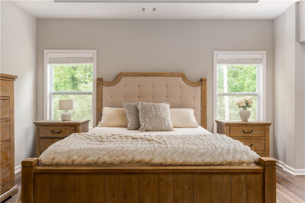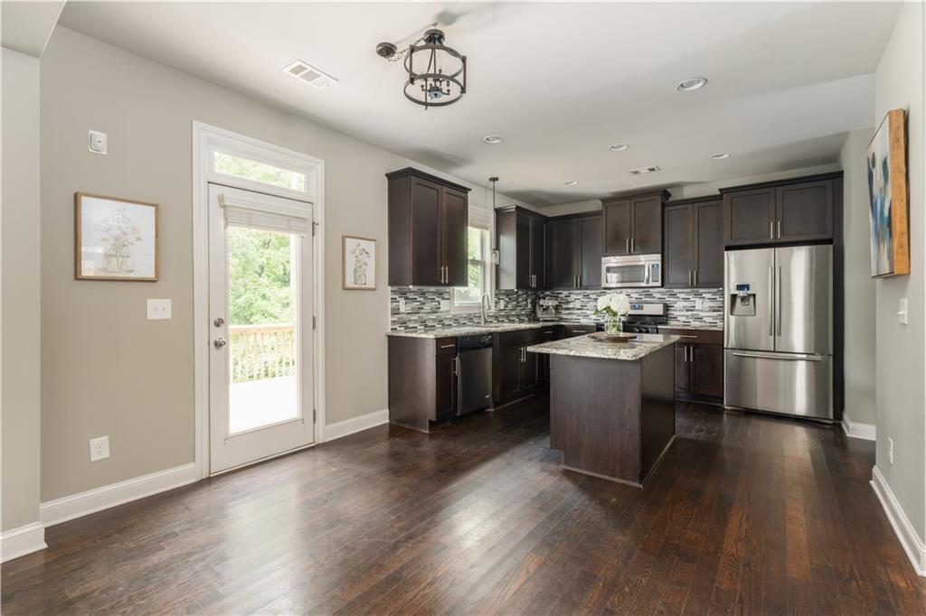 Right in the heart of West Highlands, this 4 bedroom, 3.5 bathroom Craftsman home checks all the boxes—and then some! With an open floorplan that’s made for entertaining, a newly replaced deck overlooking the backyard, you’ve got space to gather friends, dine, and relax in style! The main level features hardwood floors throughout, a formal dining room, a butler’s pantry, granite countertops, stainless steel appliances, and tons of kitchen cabinet space. The family room, with a fire place as its centerpiece, flows effortlessly from the kitchen, creating a warm and inviting space. Upstairs, the oversized primary suite steals the show. It is a true retreat with a sitting area, over-sized closets, and a spacious bath. Upstairs you will find two additional bedrooms (one with a large closet that can double as a playroom), another full bathroom, and a laundry room off the hallway. The finished basement adds even more flexibility, featuring a bedroom, full bath, office, media/playroom, and bonus space! As part of the HOA you’ll be able to relax by the pool, or do a few laps! You’re just minutes from The Works, downtown Atlanta, the beltline, the Quarry, as well as West Midtown Restaurants and Shops!