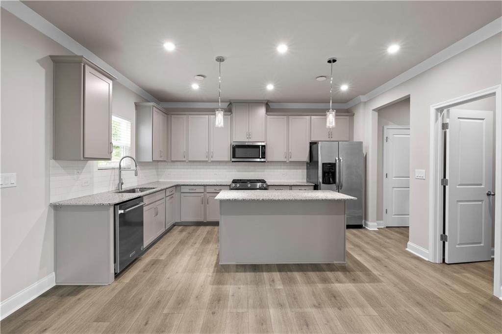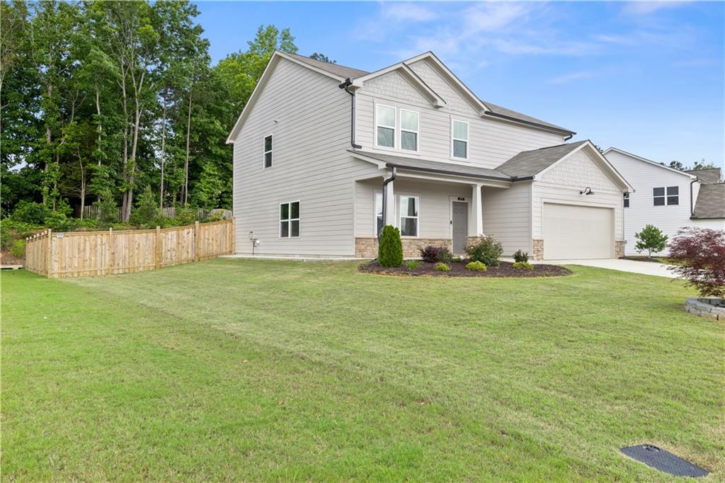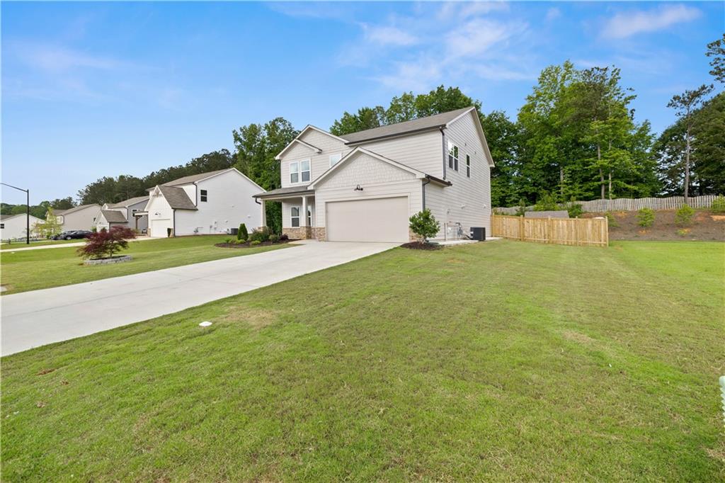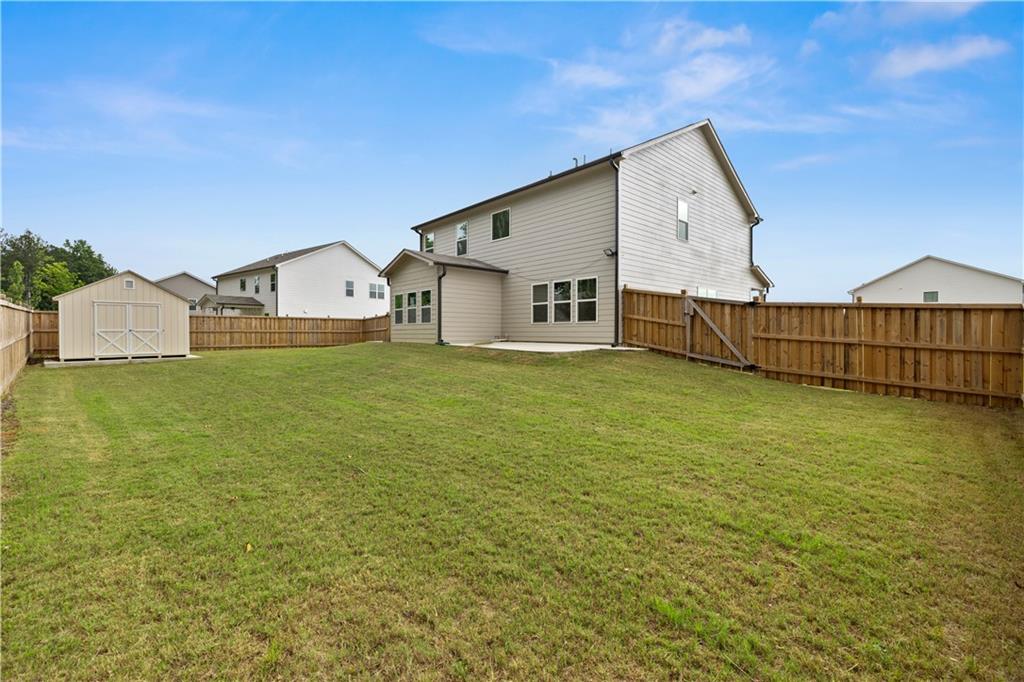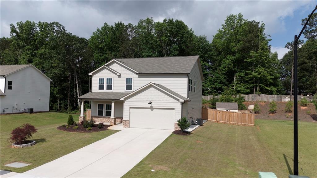 This stunning 4-bedroom, 2.5-bathroom home in Acworth, GA offers modern living with over $60k in high-end upgrades throughout. Situated on a premium level lot, it features a fully fenced backyard, spacious storage shed, and newly installed concrete pathways. Inside, you’ll find luxury vinyl plank flooring throughout the whole house, a dedicated office space on the main floor, and an inviting sunroom. The open-concept living area includes a cozy fireplace flanked by custom-built-in shelves. Upstairs, a versatile loft provides the perfect space for entertainment or relaxation. The gourmet kitchen is a chef’s dream—complete with granite countertops, white subway tile backsplash, KitchenAid appliances, and stylish modern fixtures. The oversized primary suite features a generous walk-in closet and a spa-like bathroom with double vanities, a soaking tub, and a frameless glass shower. Additional features include a tankless water heater, updated lighting, and thoughtful details throughout. This move-in ready home blends comfort, style, and functionality—all in a prime Acworth location near top schools, shopping, and parks.