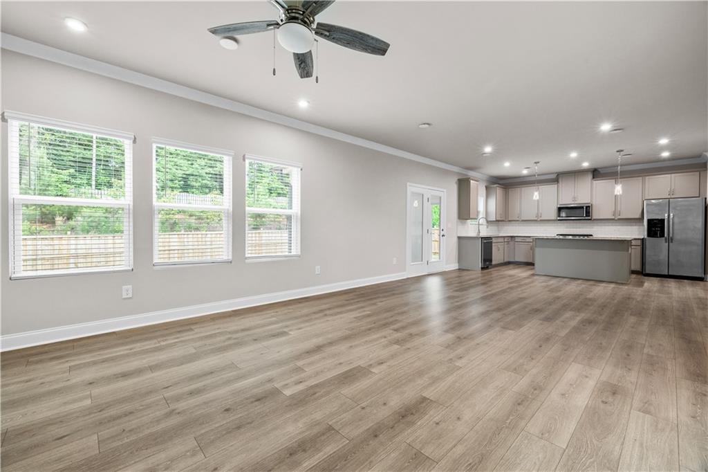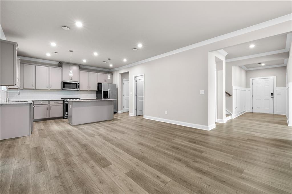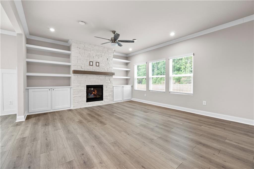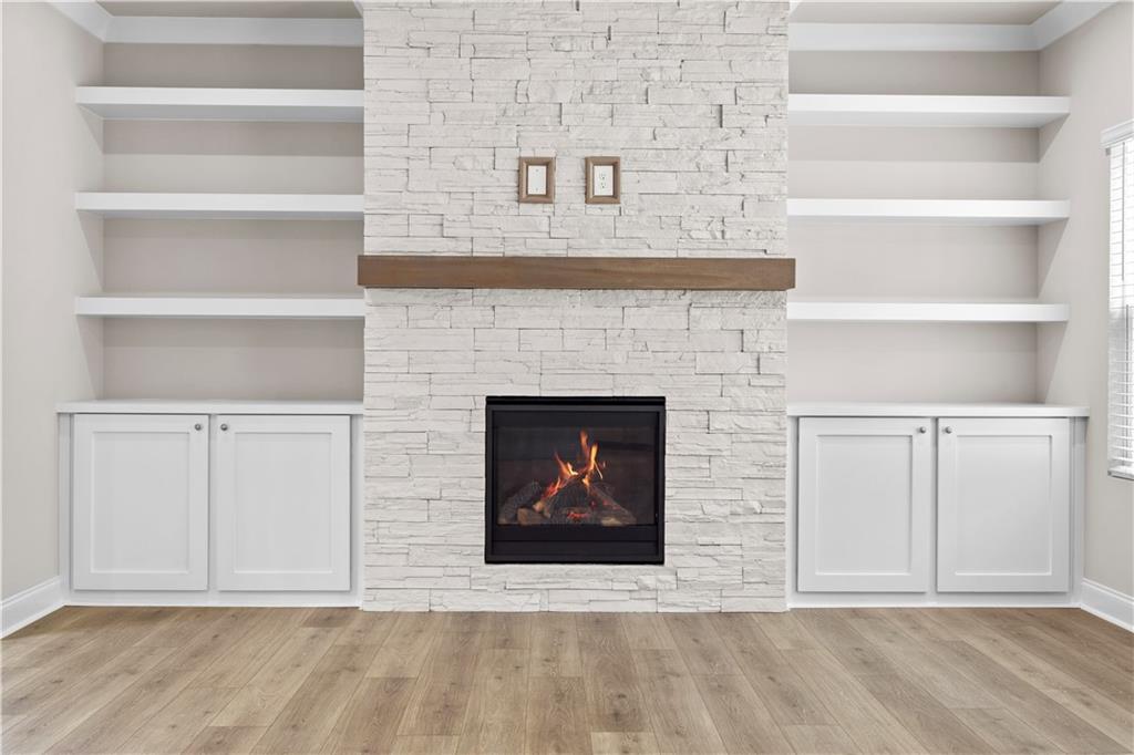 This stunning 4-bedroom, 2.5-bathroom home in Acworth, GA offers modern living with over $60k in high-end upgrades throughout. Situated on a premium level lot, it features a fully fenced backyard, spacious storage shed, and newly installed concrete pathways. Inside, you’ll find luxury vinyl plank flooring throughout the whole house, a dedicated office space on the main floor, and an inviting sunroom. The open-concept living area includes a cozy fireplace flanked by custom-built-in shelves. Upstairs, a versatile loft provides the perfect space for entertainment or relaxation. The gourmet kitchen is a chef’s dream—complete with granite countertops, white subway tile backsplash, KitchenAid appliances, and stylish modern fixtures. The oversized primary suite features a generous walk-in closet and a spa-like bathroom with double vanities, a soaking tub, and a frameless glass shower. Additional features include a tankless water heater, updated lighting, and thoughtful details throughout. This move-in ready home blends comfort, style, and functionality—all in a prime Acworth location near top schools, shopping, and parks.
