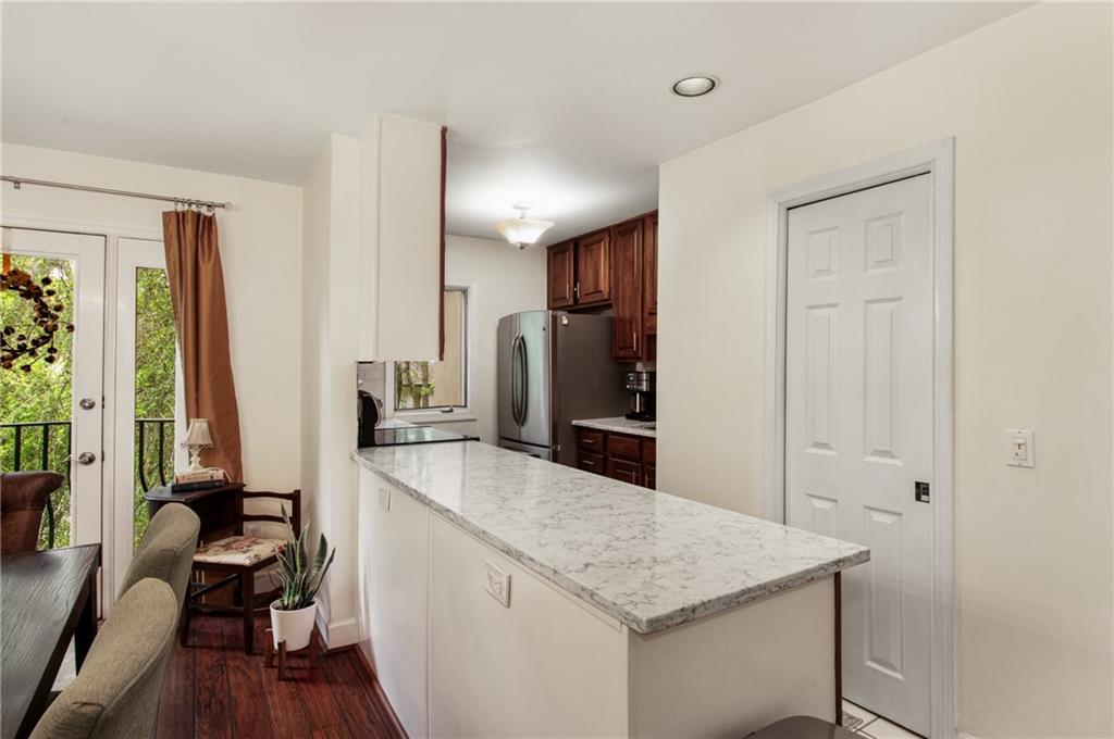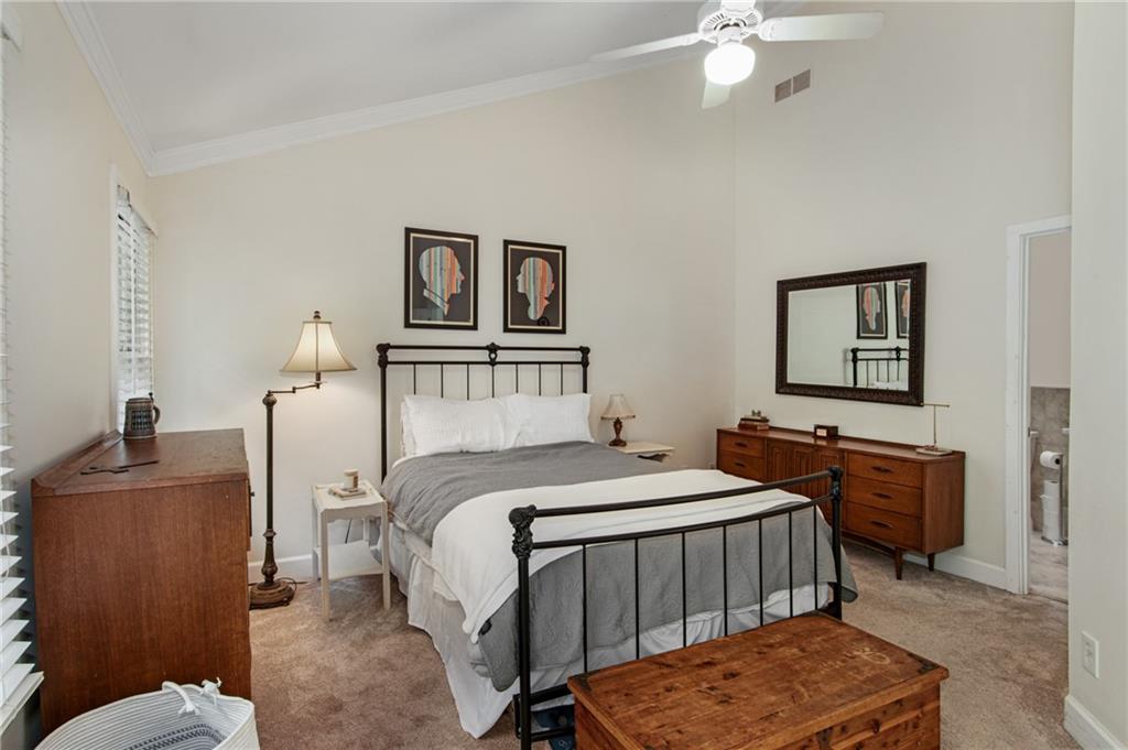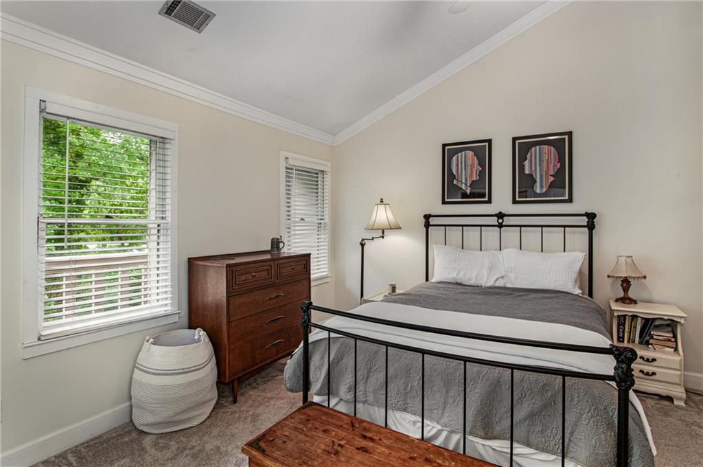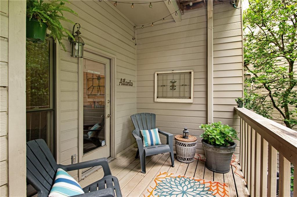 Beautifully renovated townhome STEPS from the Beltline, Piedmont Park, Ansley Mall & more! Vaulted ceilings, unique open concept living, and multiple outdoor living areas make this a must see property that won't last long! Entry Level features office/flex space and one-car garage with room for storage. Main level boasts open views to cozy living, distinctive dining space and kitchen with SS appliances, stone counters, and ample storage. Upper floor with soaring vaulted ceilings, oversized primary, light filled bathrooms, and more! Each bedroom features ensuite bath, skylights in bath. Access on each level to outdoor entertainment patio and decks. Google Fiber Home! Live in the heart of of it all! Do not miss this Midtown gem!