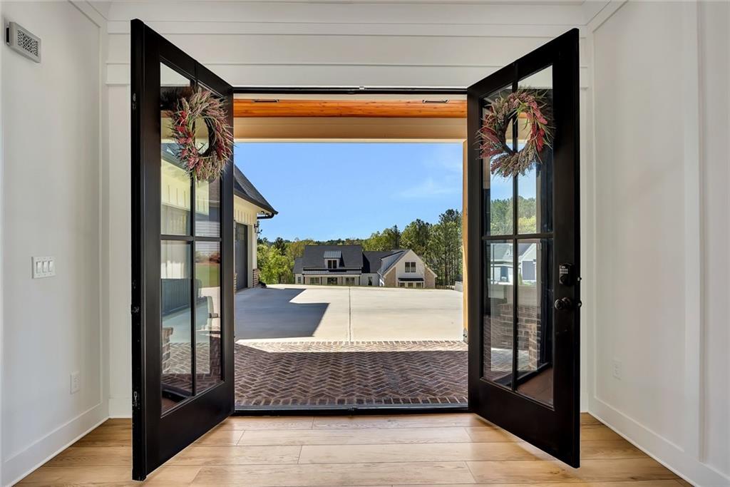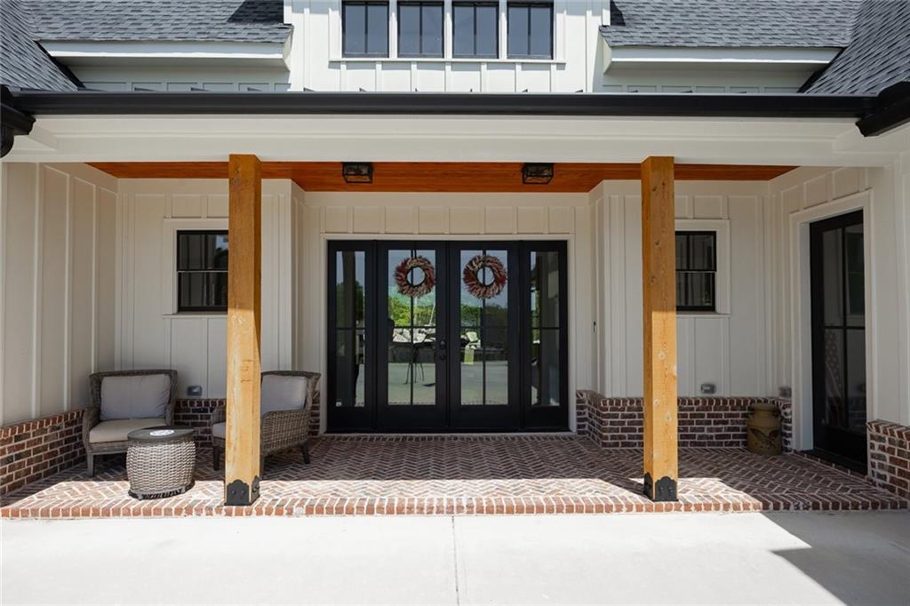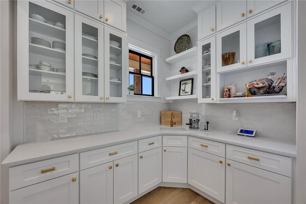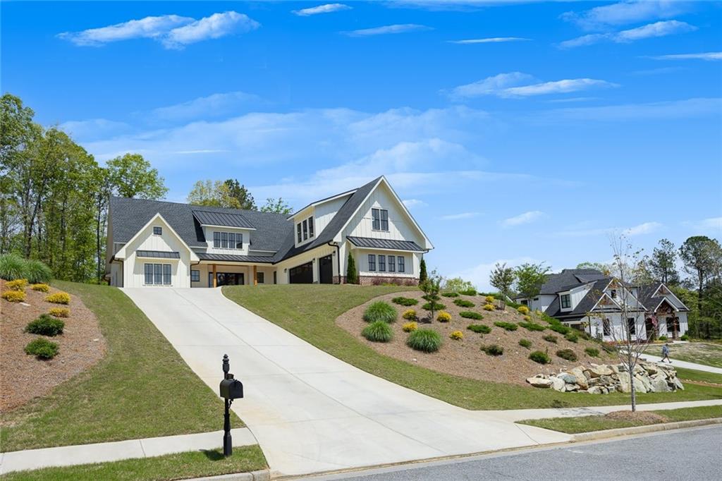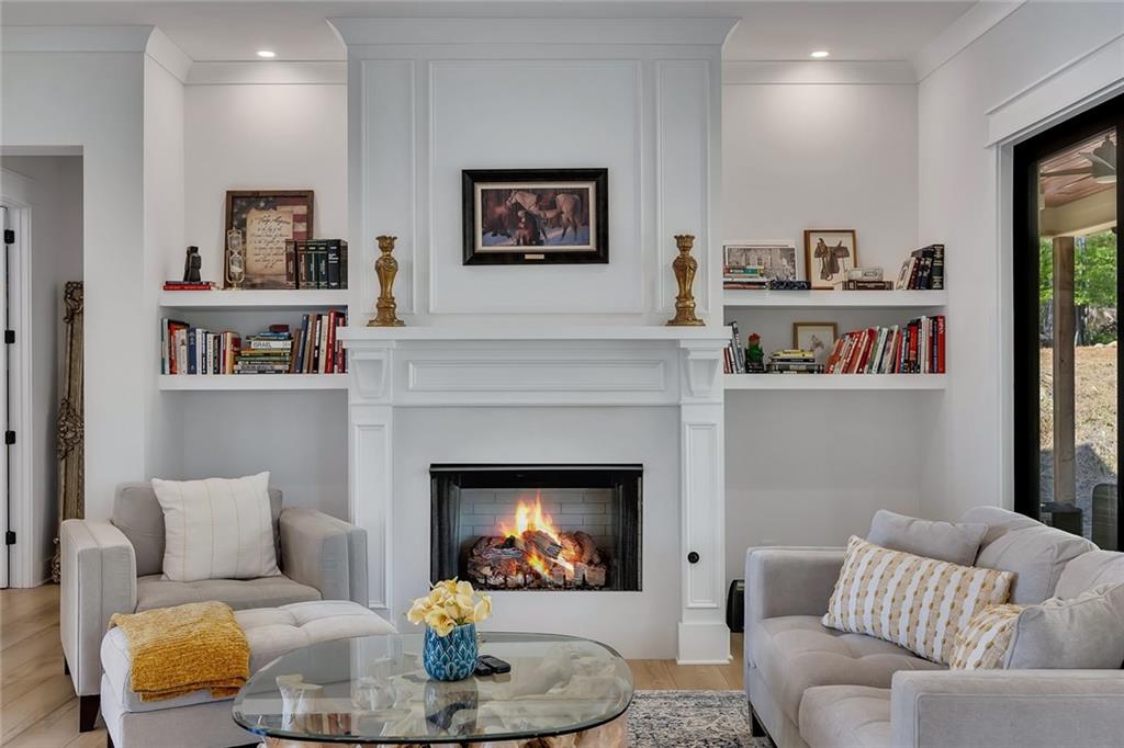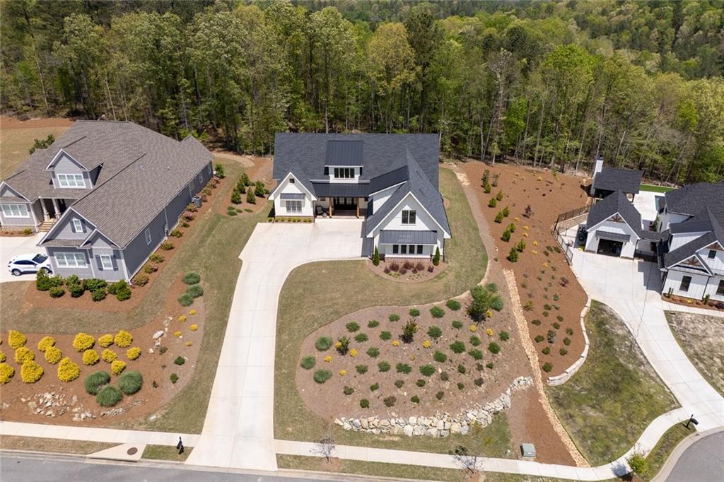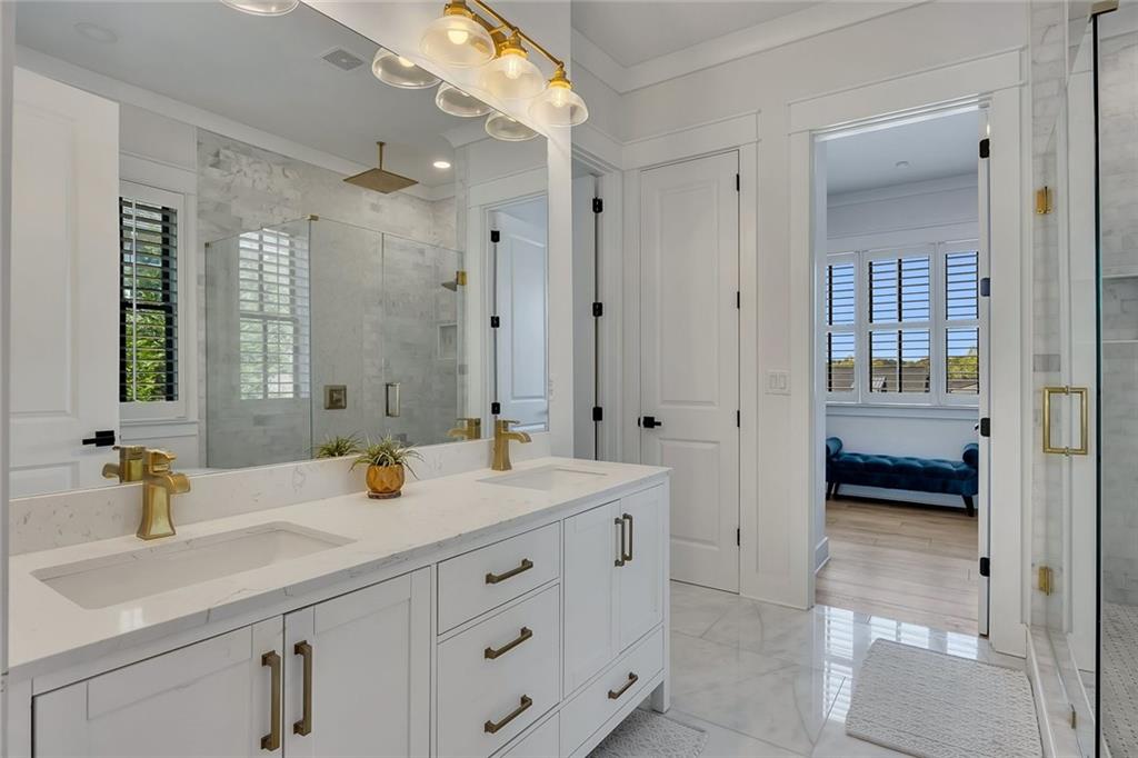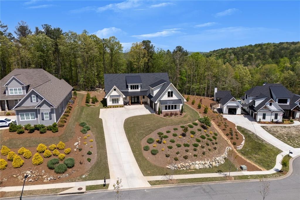 Luxury Meets Thoughtful Design in This Like-New Custom Estate in The Estates. Perched on an elevated homesite for added privacy and tucked away on a quiet cul-de-sac, this stunning 5-bedroom, 4-bath custom-built home offers refined living in one of the area's most desirable communities. The flat, private backyard is perfectly suited to accommodate a pool, creating the ultimate outdoor retreat. Designed for comfort and flexibility, this home lives like a ranch with the spacious primary suite on the main featuring a serene spa-like bathroom with premium finishes including an insulated soaking tub, marble floors, floor to ceiling marble tiled shower walls and floors with frameless glass and a rain shower head, dual vanities with quartz counters and direct access to an oversized walk in closet connected to the spacious laundry room featuring a folding table and sink. The gourmet kitchen is a chef’s dream with custom soft-close cabinetry, quartz countertops, professional-grade stainless steel appliances, pot filler, vent hood, tile backsplash, oversized island with farmhouse sink, dual trash pull-out, recessed lighting, and a walk-in butler’s pantry with full-height cabinetry, quartz counters, a sink, and custom shelving. The inviting living room features a floor-to-ceiling custom-trimmed fireplace with floating shelves, 8-foot French doors, and a custom accordion door that opens to the professionally covered back patio complete with brick floors, tongue-and-groove ceiling, dual ceiling fans, a TV mount, and a floor to ceiling wood-burning fireplace. Also on the main level: a private office with oversized windows that can be used as the 5th bedroom which also shares the fully marble guest bathroom with custom cabinetry, large custom shower that is marbled to the ceiling with satin brass fixtures and frameless glass. Upstairs, you'll find three spacious bedrooms, a loft/playroom, and a bright skylit bonus room with soaring vaulted ceilings. Two spacious spa-like bathrooms feature quartz counters, marble floors, custom cabinetry, floor-to-ceiling marble showers with satin brass plumbing fixtures. A second laundry room is conveniently located upstairs between the guest bedrooms. The 900 square foot oversized three car garage with remote access was professionally epoxy'd which makes for easy clean up. Additional custom features include spray foam insulation, plantation shutters, trim and crown molding throughout, sky lights, LVP flooring throughout the entire home, white oak treads, hand-built custom cabinetry, double laundry rooms for maximum convenience, tankless water heater and countless designer upgrades throughout. This home is a true masterpiece, custom built, move-in ready, and made for luxurious everyday living!
