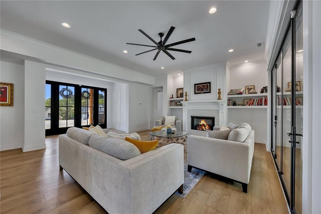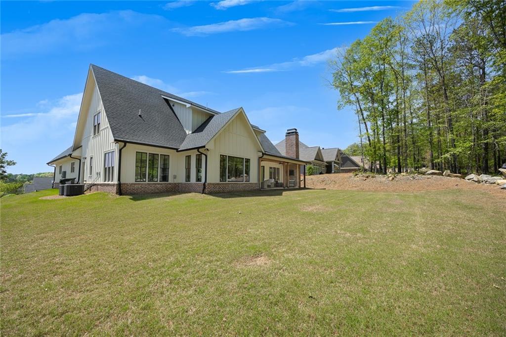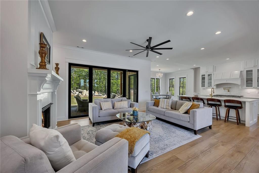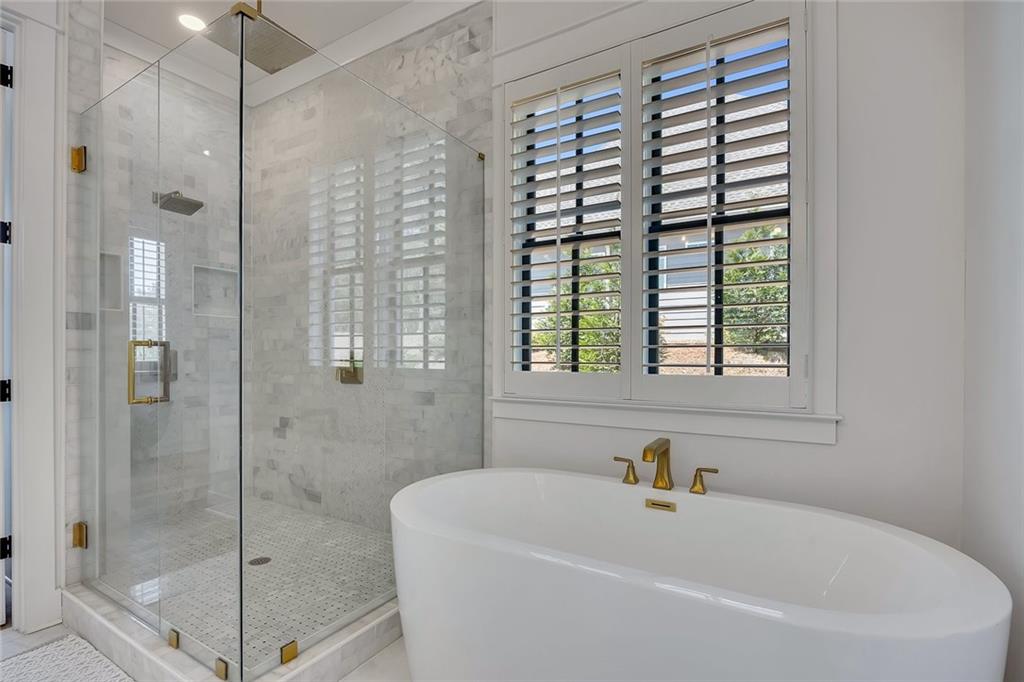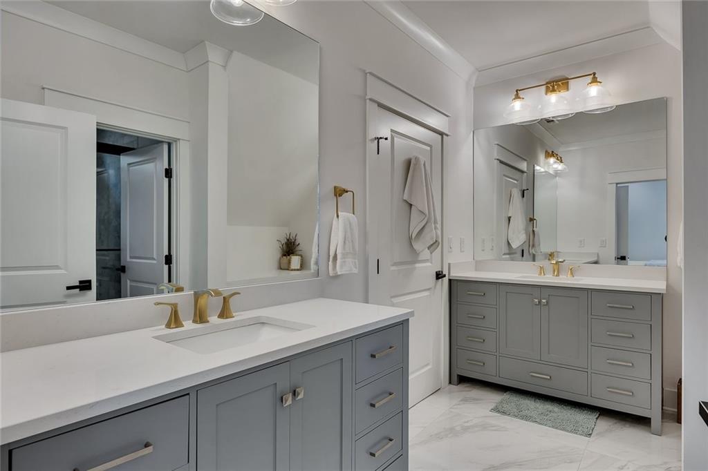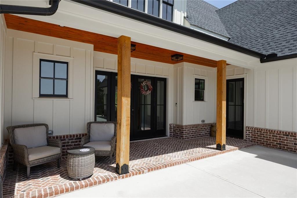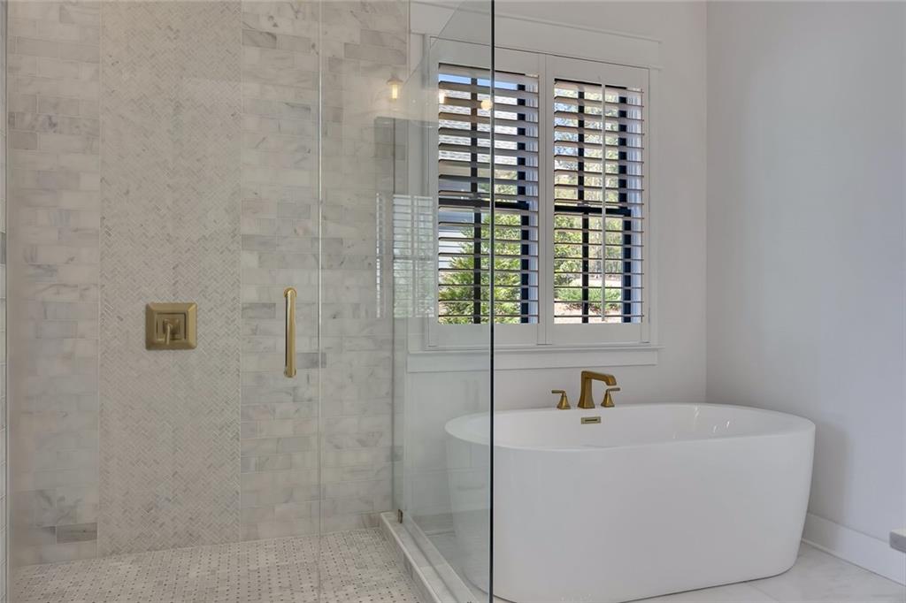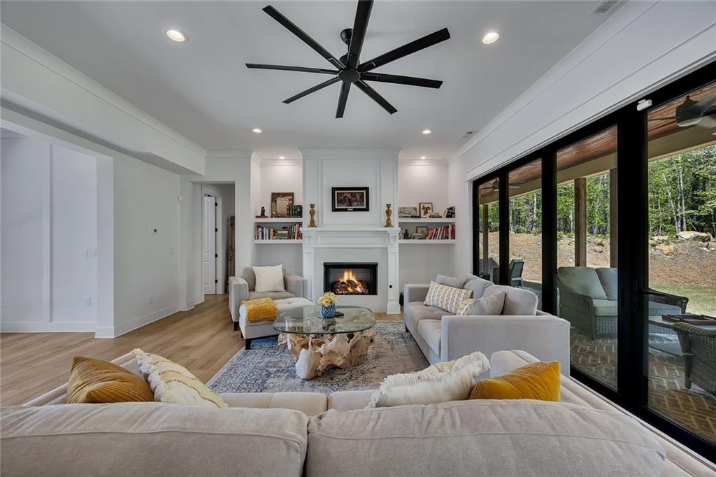 Luxury Meets Thoughtful Design in This Like-New Custom Estate in The Estates. Perched on an elevated homesite for added privacy and tucked away on a quiet cul-de-sac, this stunning 5-bedroom, 4-bath custom-built home offers refined living in one of the area's most desirable communities. The flat, private backyard is perfectly suited to accommodate a pool, creating the ultimate outdoor retreat. Designed for comfort and flexibility, this home lives like a ranch with the spacious primary suite on the main featuring a serene spa-like bathroom with premium finishes including an insulated soaking tub, marble floors, floor to ceiling marble tiled shower walls and floors with frameless glass and a rain shower head, dual vanities with quartz counters and direct access to an oversized walk in closet connected to the spacious laundry room featuring a folding table and sink. The gourmet kitchen is a chef’s dream with custom soft-close cabinetry, quartz countertops, professional-grade stainless steel appliances, pot filler, vent hood, tile backsplash, oversized island with farmhouse sink, dual trash pull-out, recessed lighting, and a walk-in butler’s pantry with full-height cabinetry, quartz counters, a sink, and custom shelving. The inviting living room features a floor-to-ceiling custom-trimmed fireplace with floating shelves, 8-foot French doors, and a custom accordion door that opens to the professionally covered back patio complete with brick floors, tongue-and-groove ceiling, dual ceiling fans, a TV mount, and a floor to ceiling wood-burning fireplace. Also on the main level: a private office with oversized windows that can be used as the 5th bedroom which also shares the fully marble guest bathroom with custom cabinetry, large custom shower that is marbled to the ceiling with satin brass fixtures and frameless glass. Upstairs, you'll find three spacious bedrooms, a loft/playroom, and a bright skylit bonus room with soaring vaulted ceilings. Two spacious spa-like bathrooms feature quartz counters, marble floors, custom cabinetry, floor-to-ceiling marble showers with satin brass plumbing fixtures. A second laundry room is conveniently located upstairs between the guest bedrooms. The 900 square foot oversized three car garage with remote access was professionally epoxy'd which makes for easy clean up. Additional custom features include spray foam insulation, plantation shutters, trim and crown molding throughout, sky lights, LVP flooring throughout the entire home, white oak treads, hand-built custom cabinetry, double laundry rooms for maximum convenience, tankless water heater and countless designer upgrades throughout. This home is a true masterpiece, custom built, move-in ready, and made for luxurious everyday living!