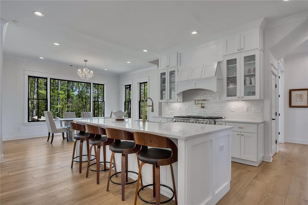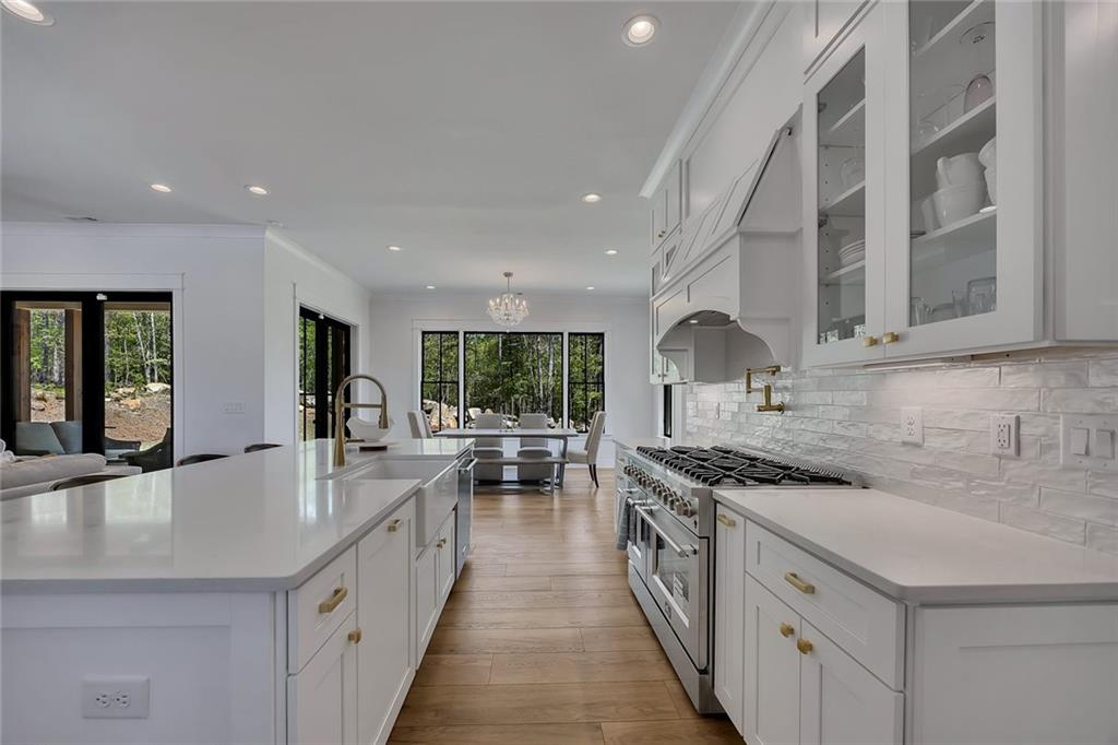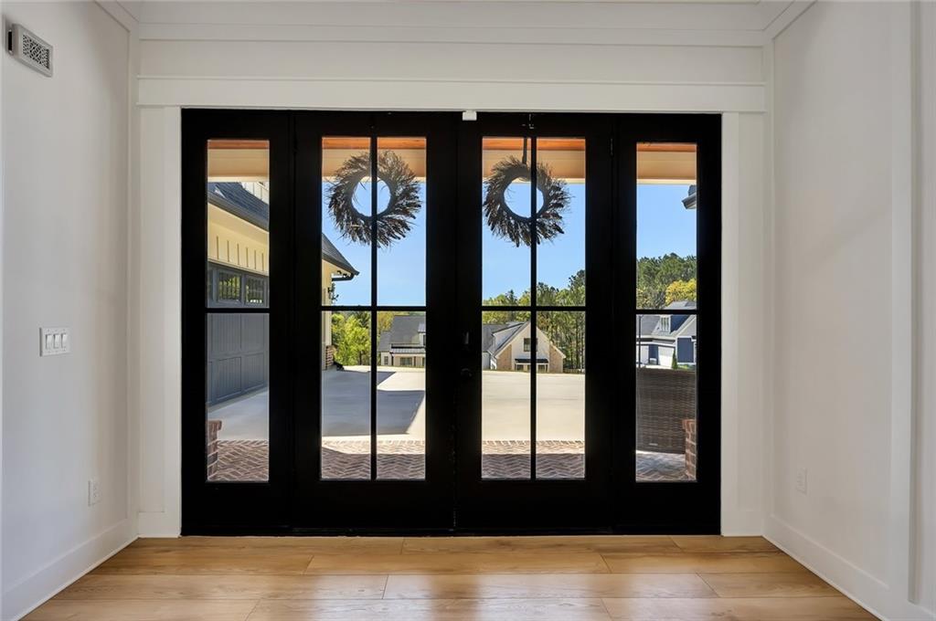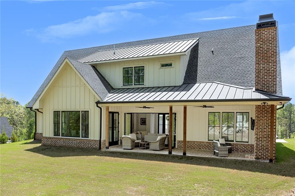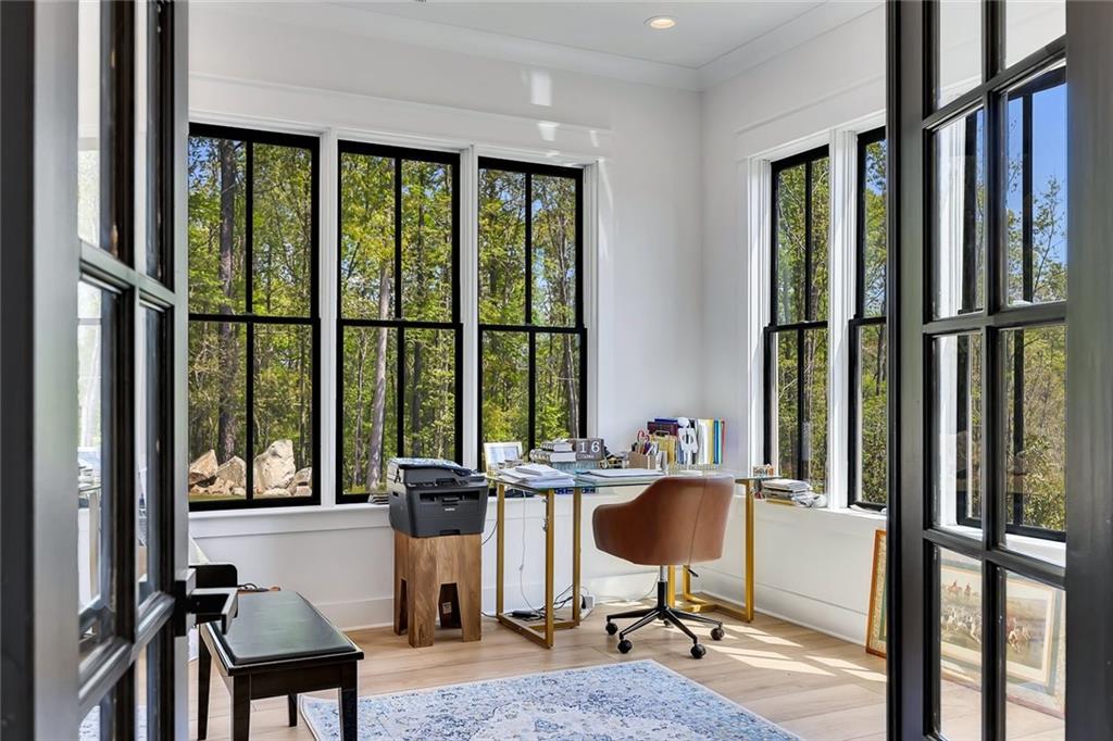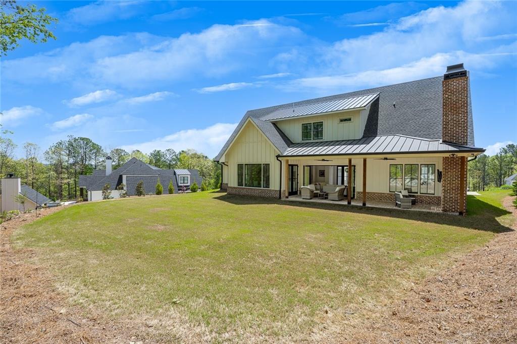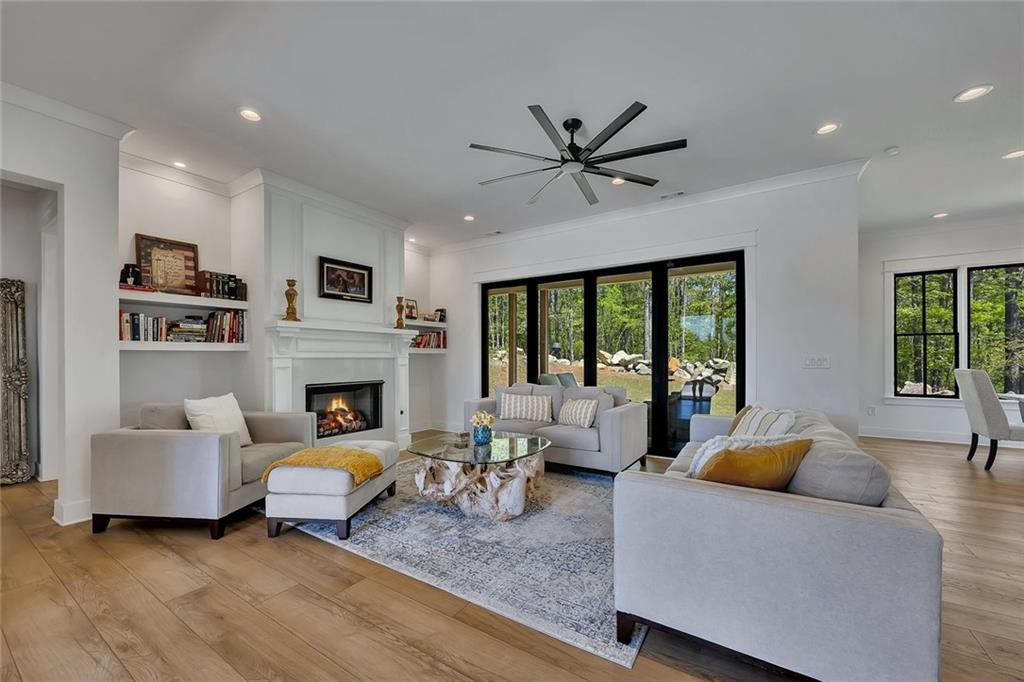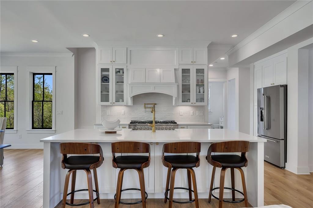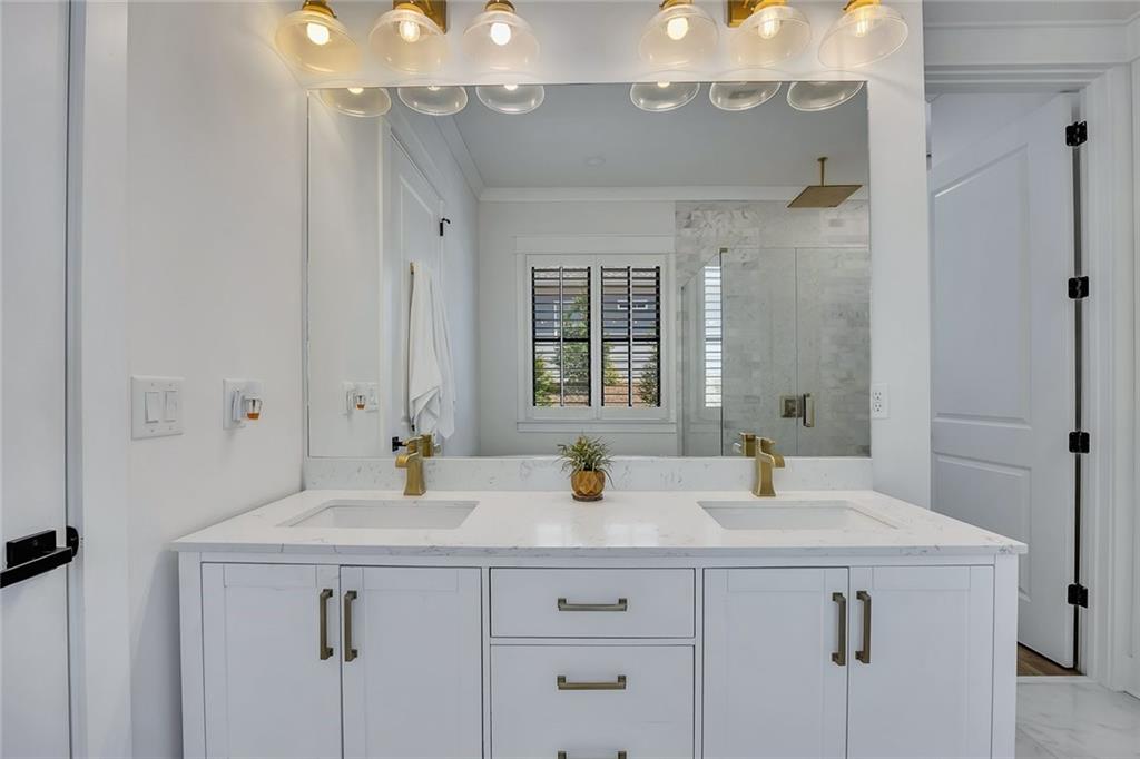 Luxury Meets Thoughtful Design in This Like-New Custom Estate in The Estates. Perched on an elevated homesite for added privacy and tucked away on a quiet cul-de-sac, this stunning 5-bedroom, 4-bath custom-built home offers refined living in one of the area's most desirable communities. The flat, private backyard is perfectly suited to accommodate a pool, creating the ultimate outdoor retreat. Designed for comfort and flexibility, this home lives like a ranch with the spacious primary suite on the main featuring a serene spa-like bathroom with premium finishes including an insulated soaking tub, marble floors, floor to ceiling marble tiled shower walls and floors with frameless glass and a rain shower head, dual vanities with quartz counters and direct access to an oversized walk in closet connected to the spacious laundry room featuring a folding table and sink. The gourmet kitchen is a chef’s dream with custom soft-close cabinetry, quartz countertops, professional-grade stainless steel appliances, pot filler, vent hood, tile backsplash, oversized island with farmhouse sink, dual trash pull-out, recessed lighting, and a walk-in butler’s pantry with full-height cabinetry, quartz counters, a sink, and custom shelving. The inviting living room features a floor-to-ceiling custom-trimmed fireplace with floating shelves, 8-foot French doors, and a custom accordion door that opens to the professionally covered back patio complete with brick floors, tongue-and-groove ceiling, dual ceiling fans, a TV mount, and a floor to ceiling wood-burning fireplace. Also on the main level: a private office with oversized windows that can be used as the 5th bedroom which also shares the fully marble guest bathroom with custom cabinetry, large custom shower that is marbled to the ceiling with satin brass fixtures and frameless glass. Upstairs, you'll find three spacious bedrooms, a loft/playroom, and a bright skylit bonus room with soaring vaulted ceilings. Two spacious spa-like bathrooms feature quartz counters, marble floors, custom cabinetry, floor-to-ceiling marble showers with satin brass plumbing fixtures. A second laundry room is conveniently located upstairs between the guest bedrooms. The 900 square foot oversized three car garage with remote access was professionally epoxy'd which makes for easy clean up. Additional custom features include spray foam insulation, plantation shutters, trim and crown molding throughout, sky lights, LVP flooring throughout the entire home, white oak treads, hand-built custom cabinetry, double laundry rooms for maximum convenience, tankless water heater and countless designer upgrades throughout. This home is a true masterpiece, custom built, move-in ready, and made for luxurious everyday living!