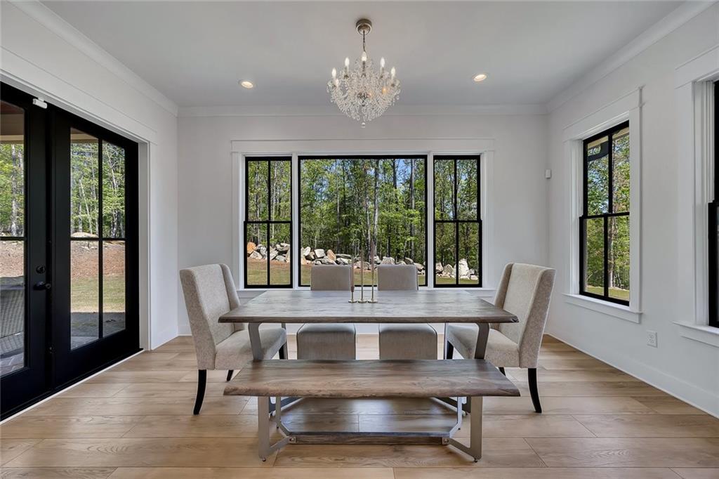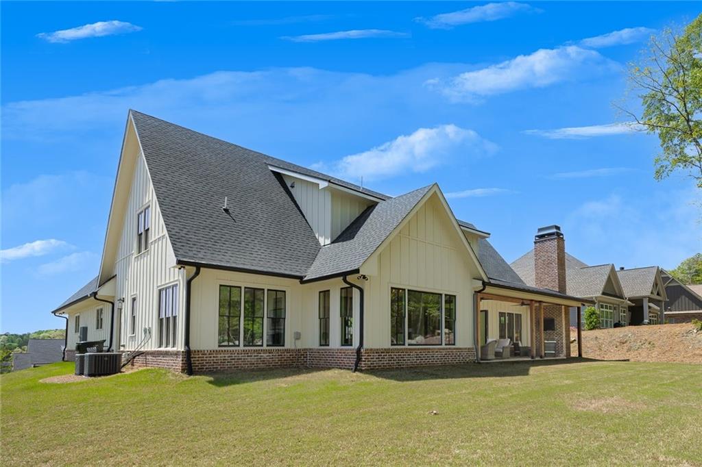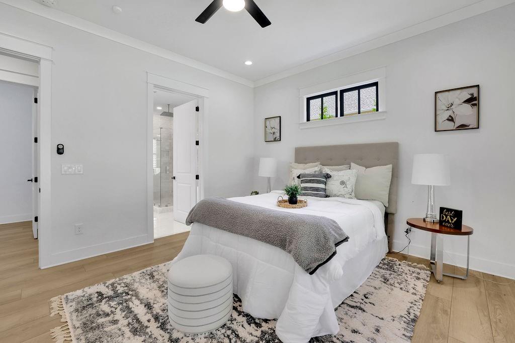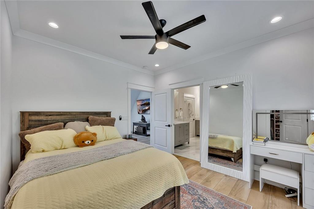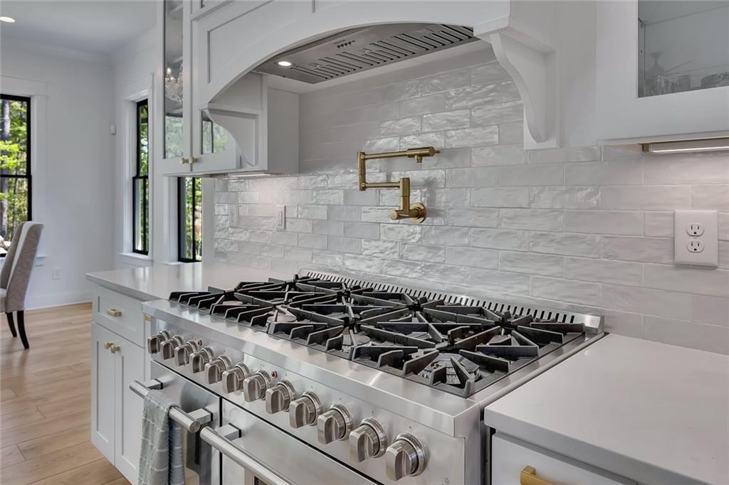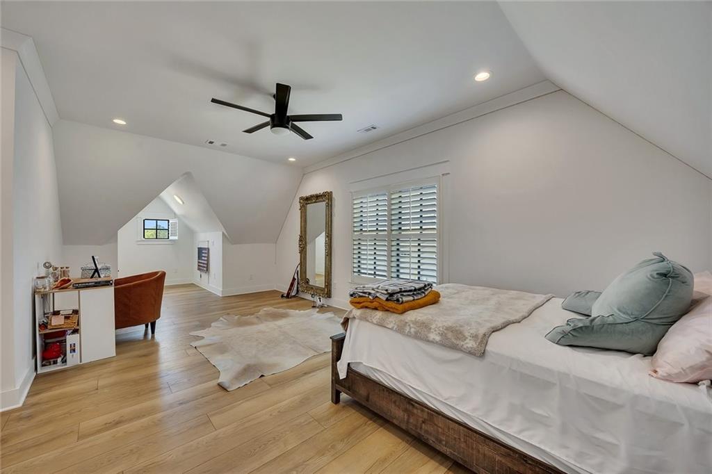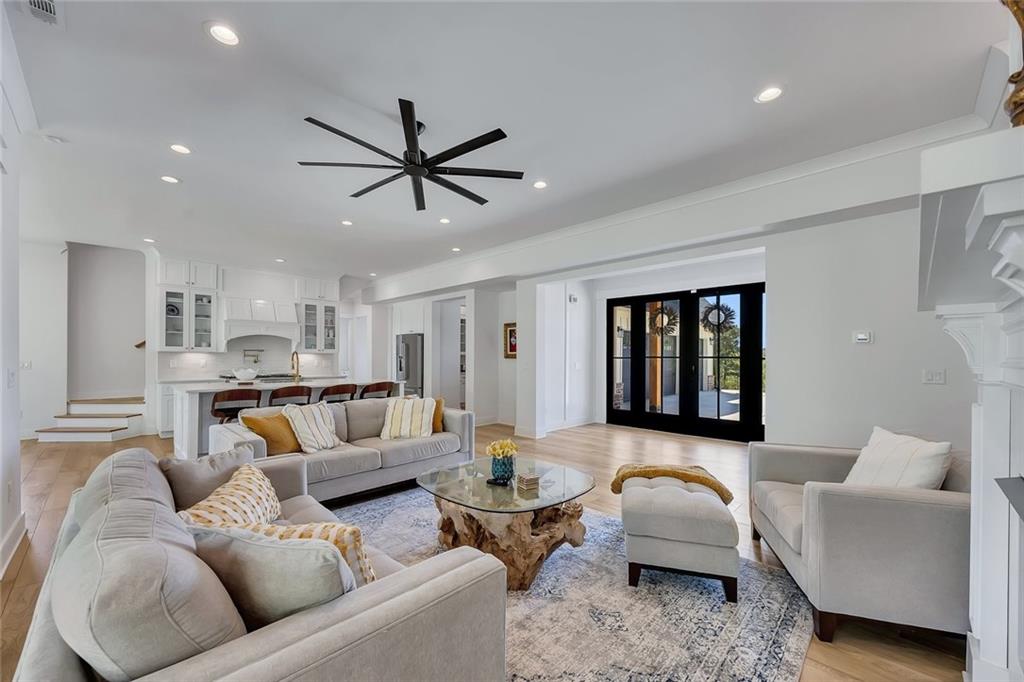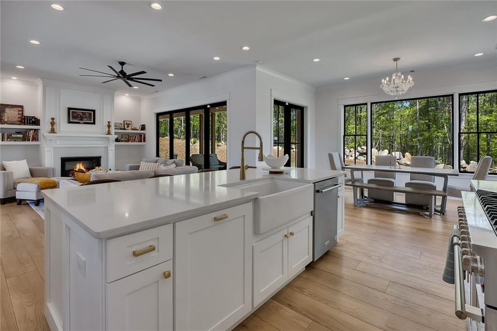 Luxury Meets Thoughtful Design in This Like-New Custom Estate in The Estates. Perched on an elevated homesite for added privacy and tucked away on a quiet cul-de-sac, this stunning 5-bedroom, 4-bath custom-built home offers refined living in one of the area's most desirable communities. The flat, private backyard is perfectly suited to accommodate a pool, creating the ultimate outdoor retreat. Designed for comfort and flexibility, this home lives like a ranch with the spacious primary suite on the main featuring a serene spa-like bathroom with premium finishes including an insulated soaking tub, marble floors, floor to ceiling marble tiled shower walls and floors with frameless glass and a rain shower head, dual vanities with quartz counters and direct access to an oversized walk in closet connected to the spacious laundry room featuring a folding table and sink. The gourmet kitchen is a chef’s dream with custom soft-close cabinetry, quartz countertops, professional-grade stainless steel appliances, pot filler, vent hood, tile backsplash, oversized island with farmhouse sink, dual trash pull-out, recessed lighting, and a walk-in butler’s pantry with full-height cabinetry, quartz counters, a sink, and custom shelving. The inviting living room features a floor-to-ceiling custom-trimmed fireplace with floating shelves, 8-foot French doors, and a custom accordion door that opens to the professionally covered back patio complete with brick floors, tongue-and-groove ceiling, dual ceiling fans, a TV mount, and a floor to ceiling wood-burning fireplace. Also on the main level: a private office with oversized windows that can be used as the 5th bedroom which also shares the fully marble guest bathroom with custom cabinetry, large custom shower that is marbled to the ceiling with satin brass fixtures and frameless glass. Upstairs, you'll find three spacious bedrooms, a loft/playroom, and a bright skylit bonus room with soaring vaulted ceilings. Two spacious spa-like bathrooms feature quartz counters, marble floors, custom cabinetry, floor-to-ceiling marble showers with satin brass plumbing fixtures. A second laundry room is conveniently located upstairs between the guest bedrooms. The 900 square foot oversized three car garage with remote access was professionally epoxy'd which makes for easy clean up. Additional custom features include spray foam insulation, plantation shutters, trim and crown molding throughout, sky lights, LVP flooring throughout the entire home, white oak treads, hand-built custom cabinetry, double laundry rooms for maximum convenience, tankless water heater and countless designer upgrades throughout. This home is a true masterpiece, custom built, move-in ready, and made for luxurious everyday living!