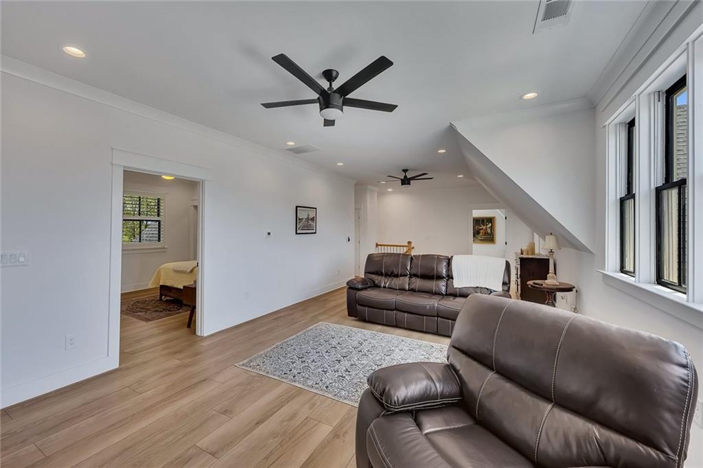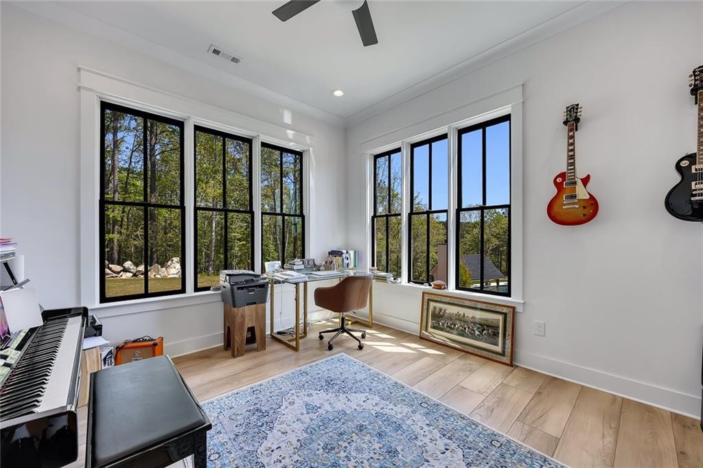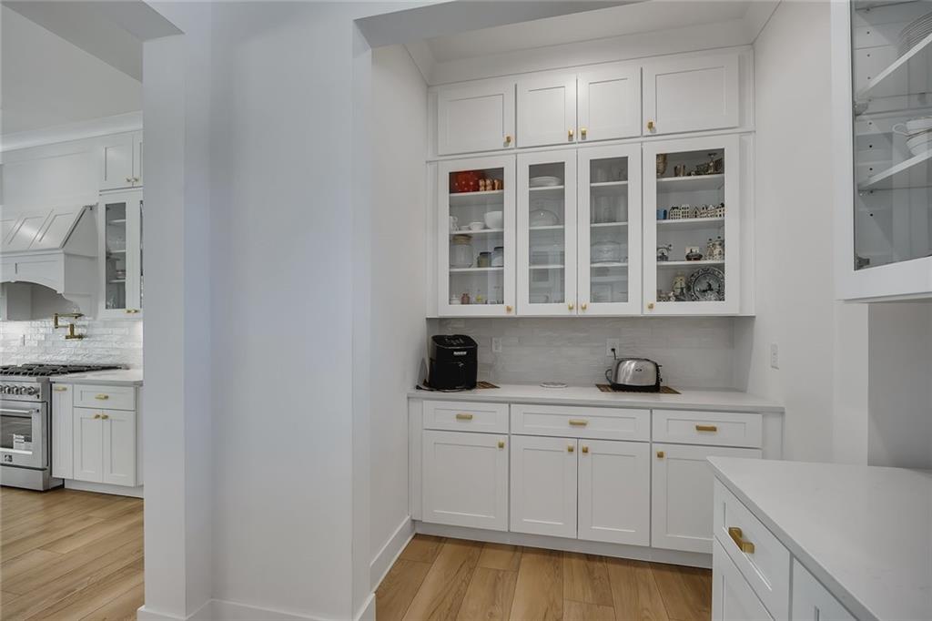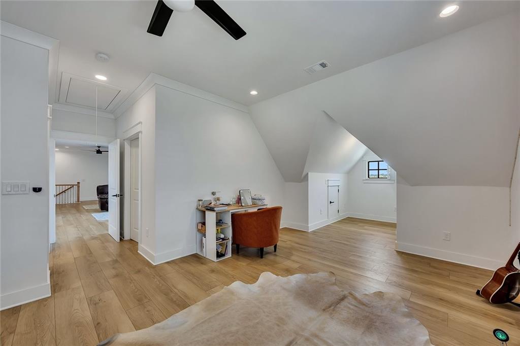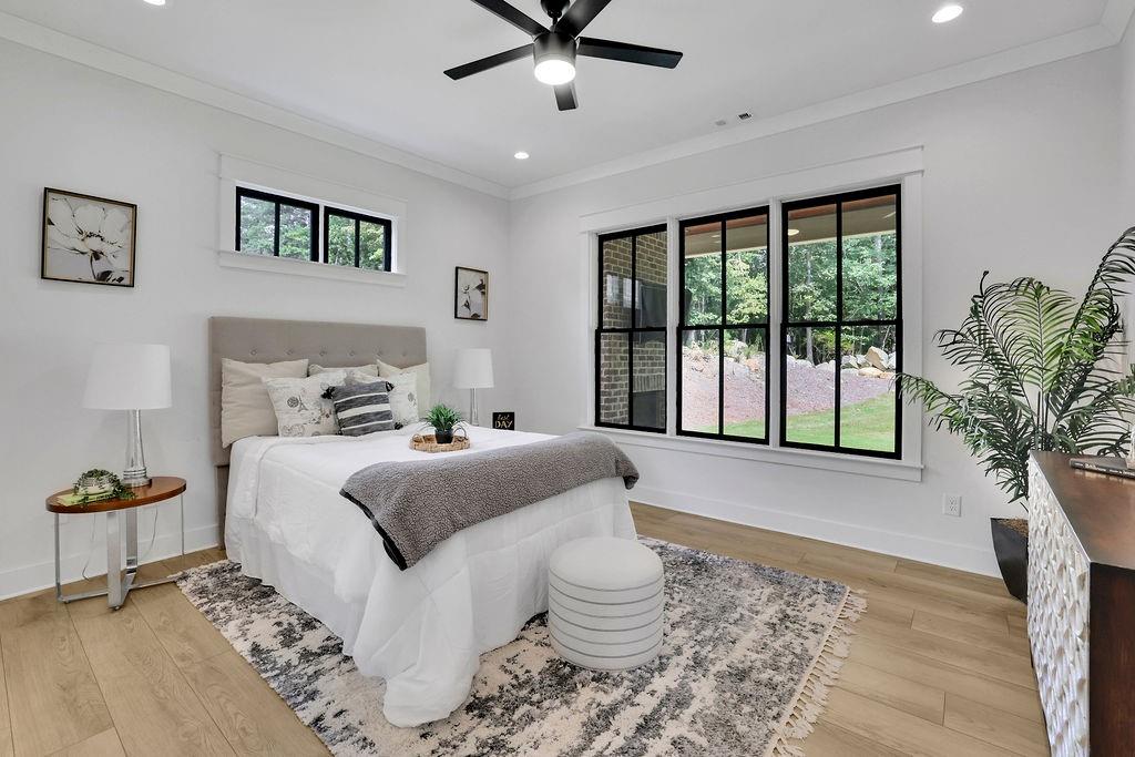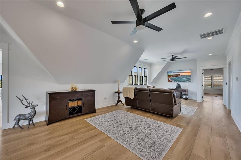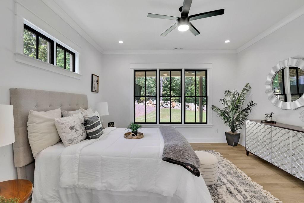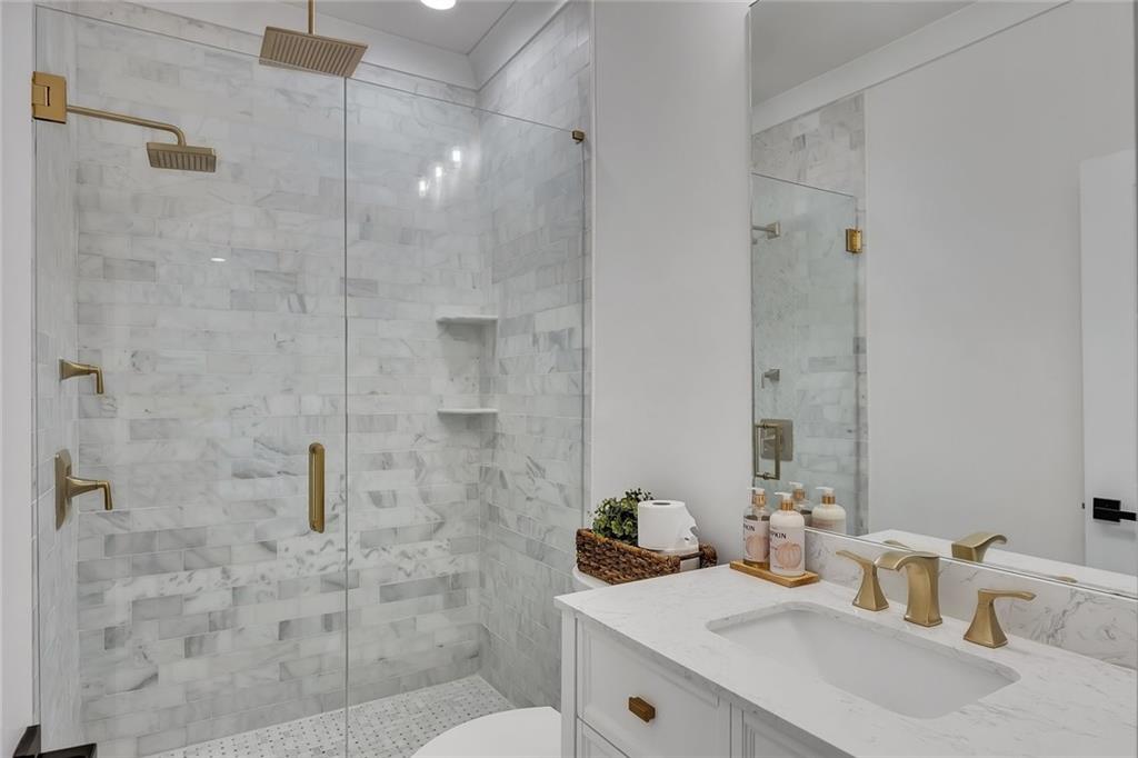 Luxury Meets Thoughtful Design in This Like-New Custom Estate in The Estates. Perched on an elevated homesite for added privacy and tucked away on a quiet cul-de-sac, this stunning 5-bedroom, 4-bath custom-built home offers refined living in one of the area's most desirable communities. The flat, private backyard is perfectly suited to accommodate a pool, creating the ultimate outdoor retreat. Designed for comfort and flexibility, this home lives like a ranch with the spacious primary suite on the main featuring a serene spa-like bathroom with premium finishes including an insulated soaking tub, marble floors, floor to ceiling marble tiled shower walls and floors with frameless glass and a rain shower head, dual vanities with quartz counters and direct access to an oversized walk in closet connected to the spacious laundry room featuring a folding table and sink. The gourmet kitchen is a chef’s dream with custom soft-close cabinetry, quartz countertops, professional-grade stainless steel appliances, pot filler, vent hood, tile backsplash, oversized island with farmhouse sink, dual trash pull-out, recessed lighting, and a walk-in butler’s pantry with full-height cabinetry, quartz counters, a sink, and custom shelving. The inviting living room features a floor-to-ceiling custom-trimmed fireplace with floating shelves, 8-foot French doors, and a custom accordion door that opens to the professionally covered back patio complete with brick floors, tongue-and-groove ceiling, dual ceiling fans, a TV mount, and a floor to ceiling wood-burning fireplace. Also on the main level: a private office with oversized windows that can be used as the 5th bedroom which also shares the fully marble guest bathroom with custom cabinetry, large custom shower that is marbled to the ceiling with satin brass fixtures and frameless glass. Upstairs, you'll find three spacious bedrooms, a loft/playroom, and a bright skylit bonus room with soaring vaulted ceilings. Two spacious spa-like bathrooms feature quartz counters, marble floors, custom cabinetry, floor-to-ceiling marble showers with satin brass plumbing fixtures. A second laundry room is conveniently located upstairs between the guest bedrooms. The 900 square foot oversized three car garage with remote access was professionally epoxy'd which makes for easy clean up. Additional custom features include spray foam insulation, plantation shutters, trim and crown molding throughout, sky lights, LVP flooring throughout the entire home, white oak treads, hand-built custom cabinetry, double laundry rooms for maximum convenience, tankless water heater and countless designer upgrades throughout. This home is a true masterpiece, custom built, move-in ready, and made for luxurious everyday living!
