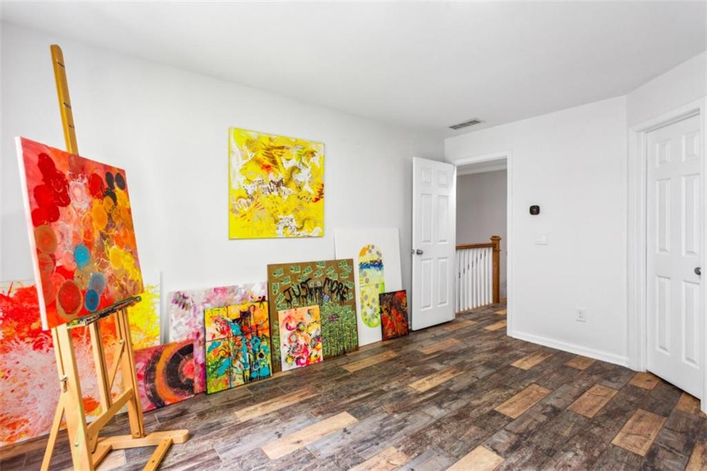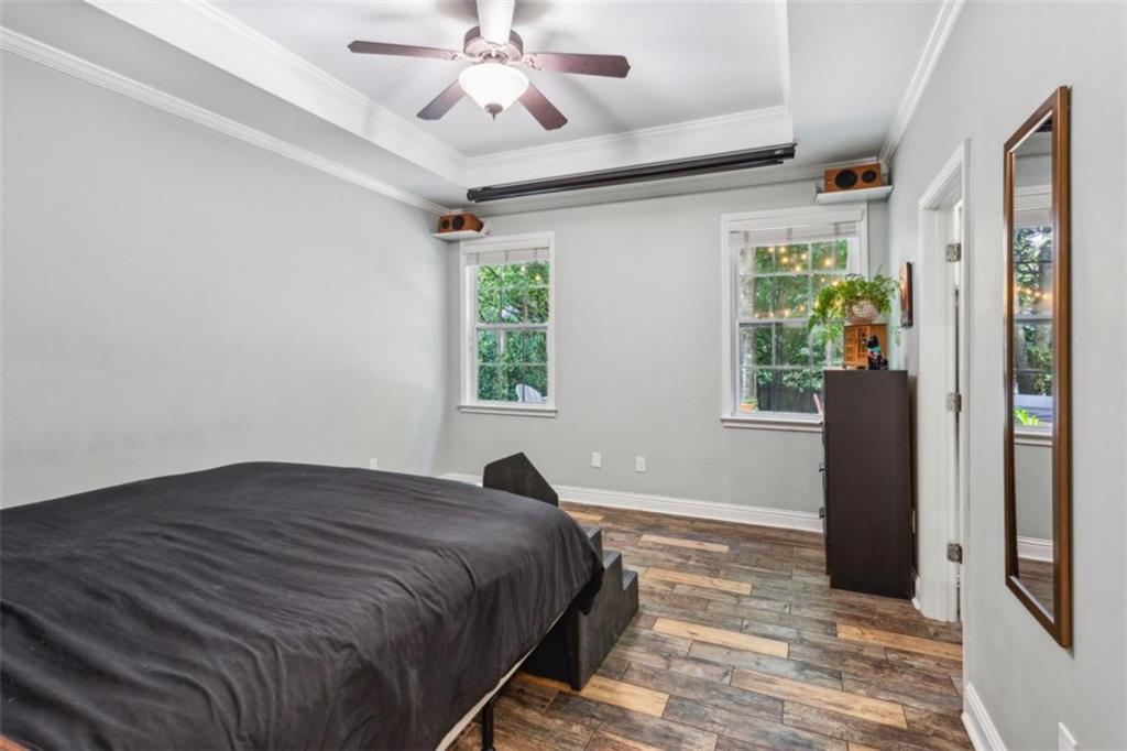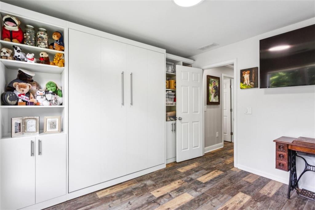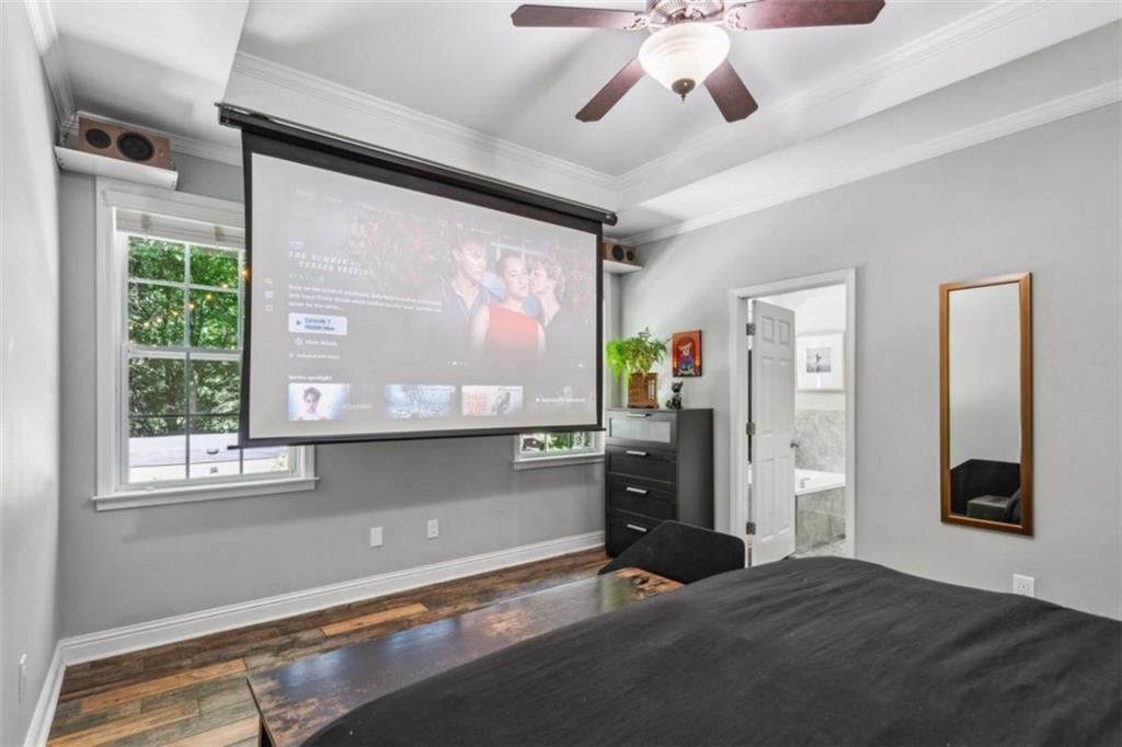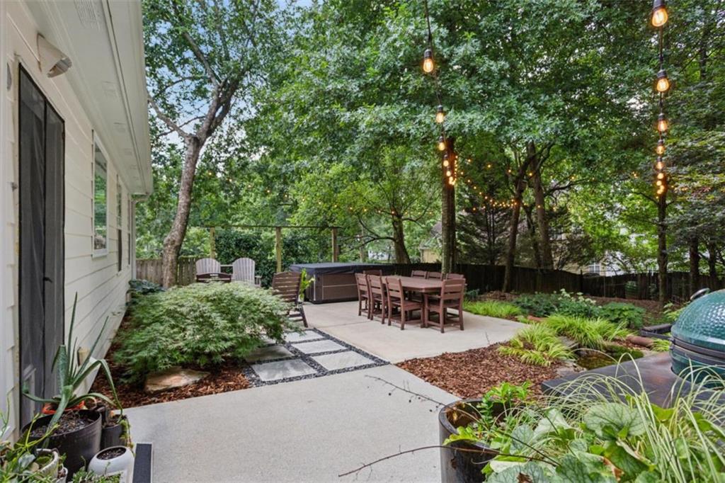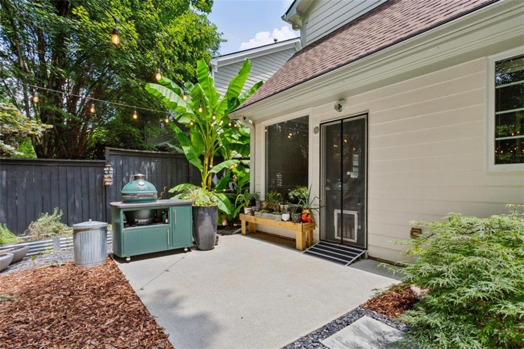 Location, location, location, paired with thoughtful updates and impeccable maintenance make this home the one you'll want. Designed for entertaining, it features a magical backyard complete with a new spa, soft overhead lighting, a spacious outdoor dining area and grilling area with Big Green Egg, a calming water feature, and privacy fence. Your dogs will love the enclosed back yard plus dedicated dog-run on one side of the house, while the opposite side offers raised garden beds, a wall-mounted hose system with a 100-foot hose for watering your planters, and even banana trees soaking up the southern sun. Inside, the home boasts hardwood floors in the vaulted living room, and in the kitchen and dining area. Custom shelves in the living room and mounted 65" Samsung TV. The main-level primary suite features a custom headboard, projector TV with retractable 100" screen, and a spa-like bathroom with separate tub and shower surrounded by tile to the ceiling. Upgraded replacement windows with custom blinds are installed throughout most of the home, including the two upper-level bedrooms. The front windows feature integrated blinds that allow pets to look outside without damaging them. Secondary bedroom #2 includes a queen Murphy bed with a top-tier mattress, a generous double closet, and upgraded windows. Storage is plentiful, with secure plywood floor and lit spaces above the garage and behind both secondary bedrooms, plus a custom drop-down ladder to an additional attic area above the second-floor landing. The garage is a true man cave and workshop in one, featuring a custom epoxy floor, full custom slatwall storage and shelving system, safe, workbench, and Monolift garage door. This home is also a dog-lover's dream, with a custom kitchen door with built-in doggie door, another doggie door from the living room to the enclosed run, and a pre-installed dog gate between the kitchen and living area. Across the street is the dog walker's heaven - Crestlawn Cemetery where the dogs and their hoomans all know each other. Technology abounds with gigabit internet with a Nighthawk distributed satellite Wi-Fi system, full-house CAT-8 Ethernet wiring in all rooms (including TV hookups), and a whole-home security camera system. When it's time to explore, major attractions are just around the corner, including The Works, Topgolf, and fine dining at Bacchanalia. The new largest park in the City of Atlanta, Shirley Franklin Park is minutes away, offering fresh air, skyline views, and connections to the Proctor Creek Trail and Atlanta Beltline. Just half a mile up the street, the Whetstone Creek Trail links you with the Silver Comet Trail, and Westside Village's dining and retail options are an easy stroll up the trail. Convenient to Downtown, Midtown, and Buckhead and all points beyond with easy access to I-75 and I-285.
