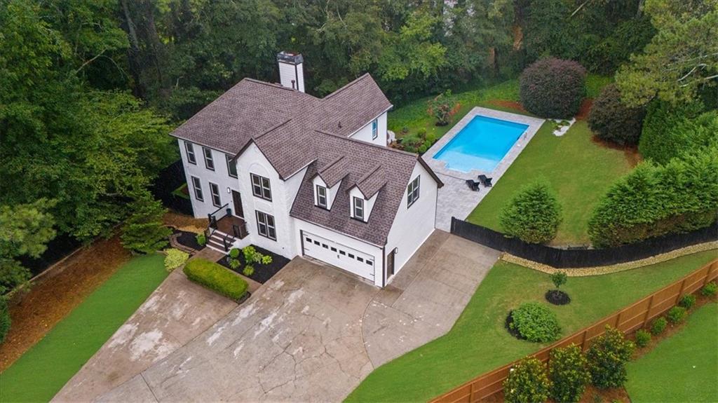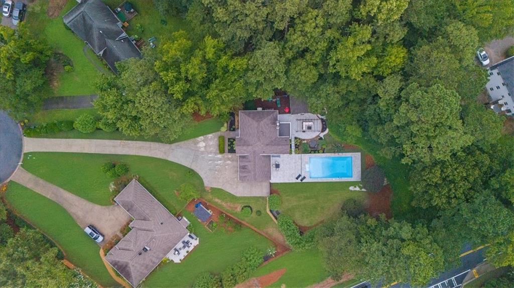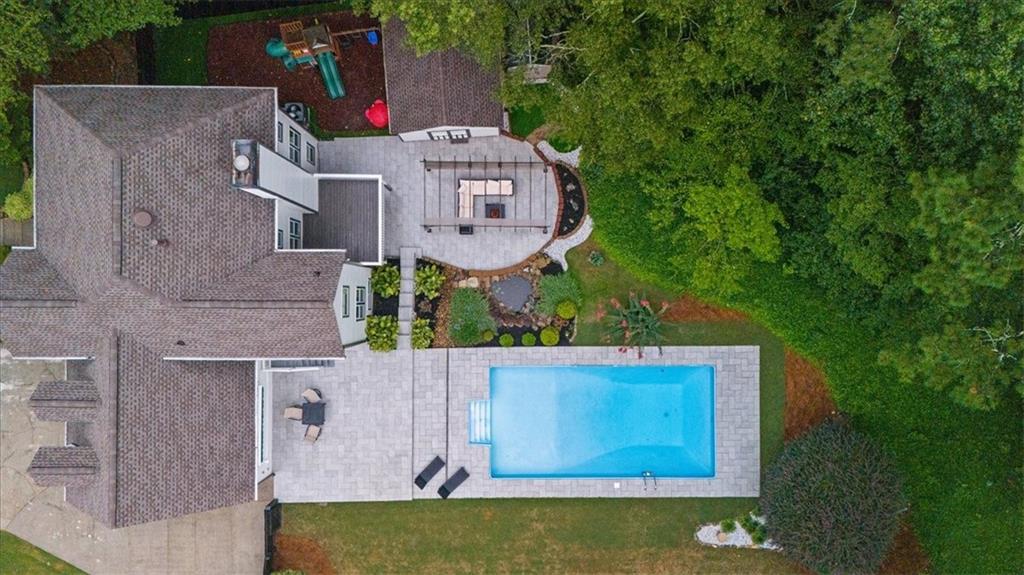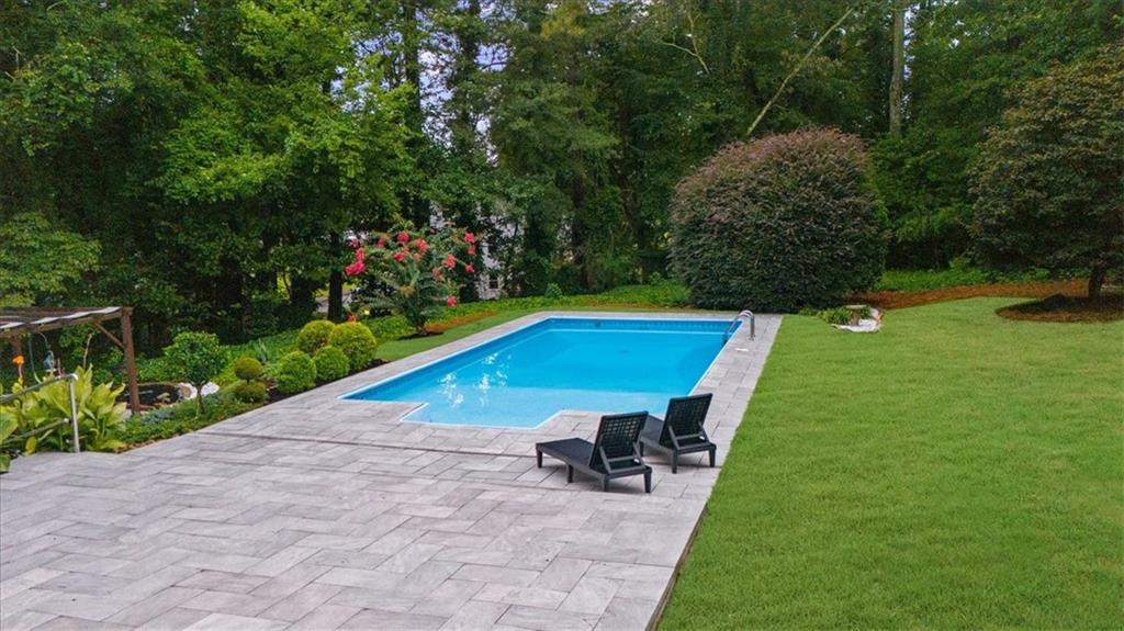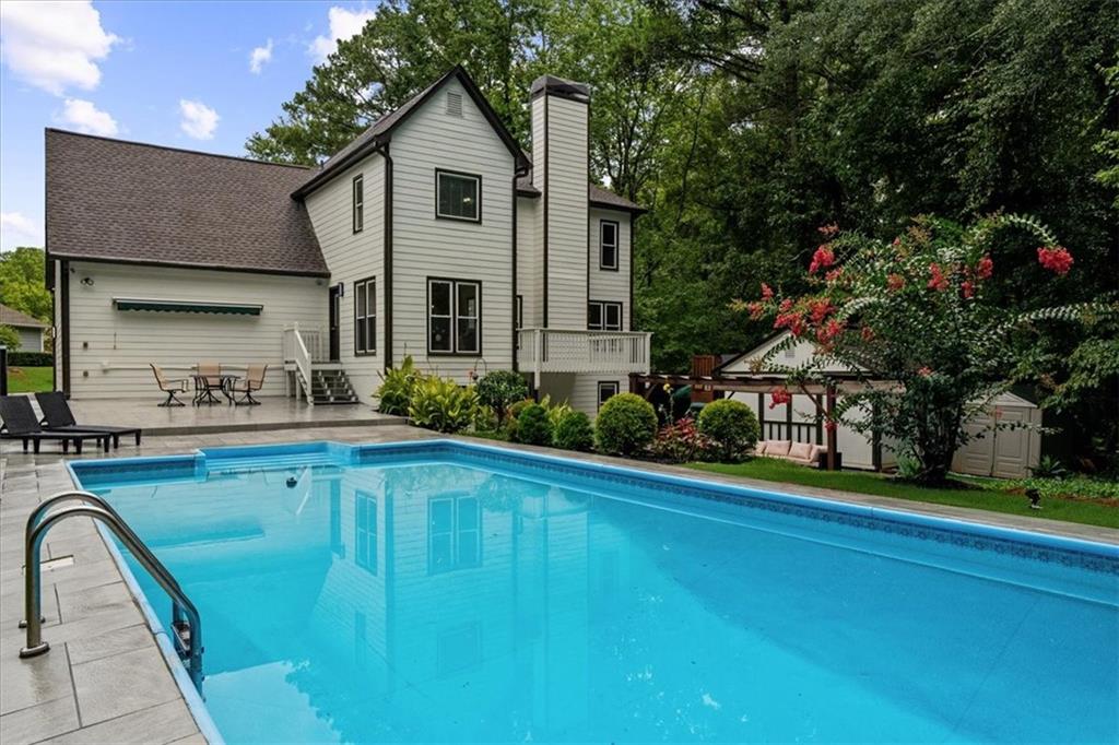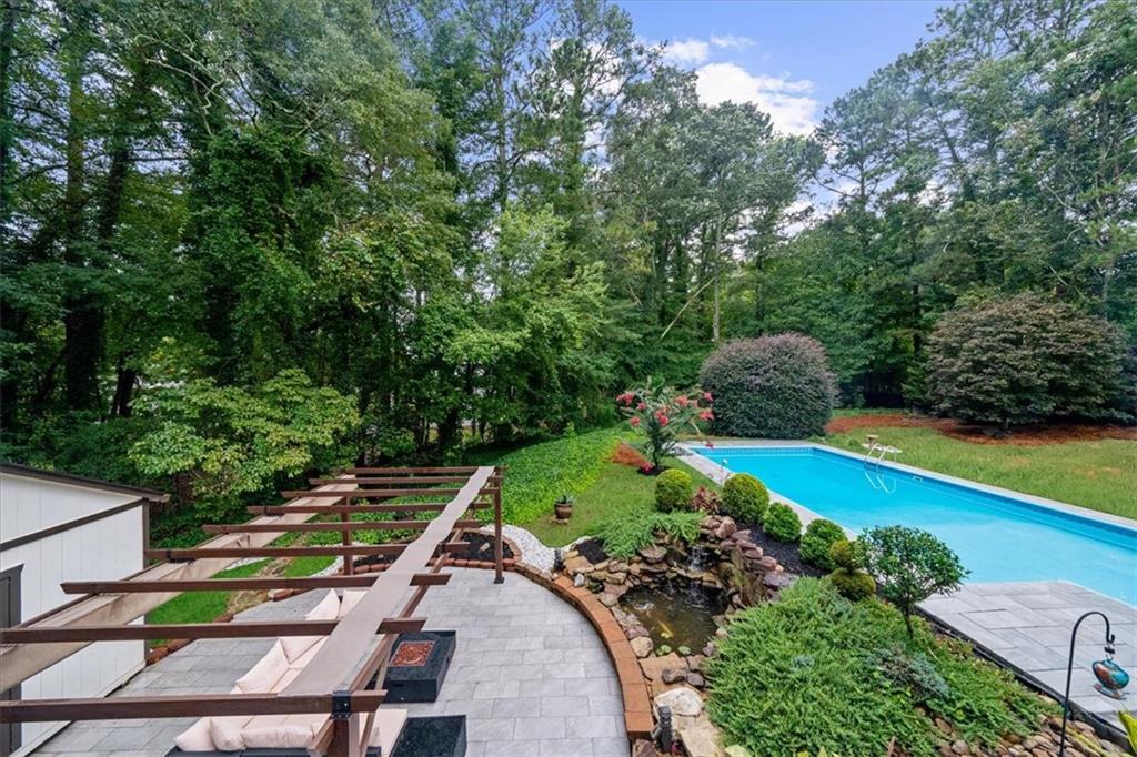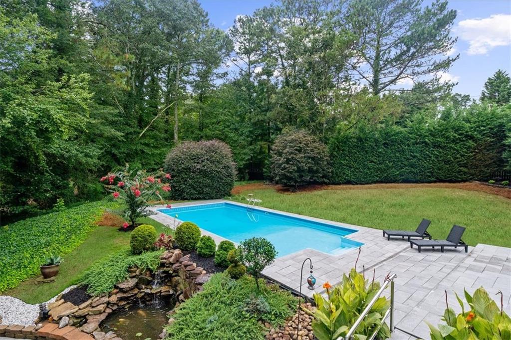 Fresh Renovated Smart Home in Prime Alpharetta Location. Presenting a stunning 6-bedroom, 4.5-bathroom home with the perfect combination of luxury, technology, and convenience—just minutes from downtown Alpharetta and Avalon in a top-rated school district. Nestled in a quiet cul-de-sac on a spacious 2/3-acre lot, the property features a private oasis offering an inground pool, serene pond with waterfall, and ample space for outdoor enjoyment including a playground for the kids. The pool has new beautiful large pavers extending to a great entertainment area for lounging and outside dining. This home is truly like a new home with a well thought comprehensive renovation. Inside, you’ll find a freshly remodeled interior with an open modern layout and top-quality finishes. The smart home system connects to Wi-Fi and controls smart light switches, exterior wall lighting, kitchen appliances, thermostats, a whole-home generator for peace of mind, and pool water quality monitoring—all from the convenience of your phone. If you want a home that has most everything this is your home. Walking through the doors you will notice the new beautiful hardwood floors, lighting, hardware, waterfall quartz countertops, and so much more. The home has had exemplary care providing new paint inside and out, newer windows, new roof, transferable termite letter, new AC Heat pumps. The in-law suite on the terrace level offers 2 bedrooms with ensuite full baths, laundry room, kitchenette and outside entrance. Large parking pad can accommodate an RV/Boat. Extra large workshop with heat and air. A separate storage shed for your pool toys. This is more than a home—it’s a lifestyle of comfort, security, and smart living in one of Alpharetta’s most desirable areas.