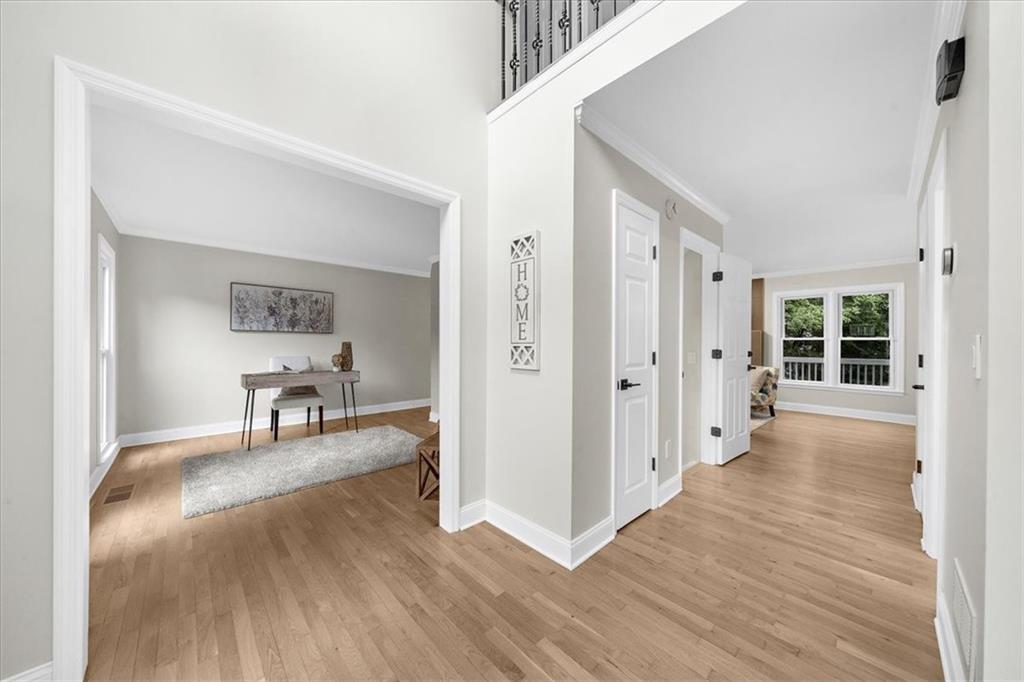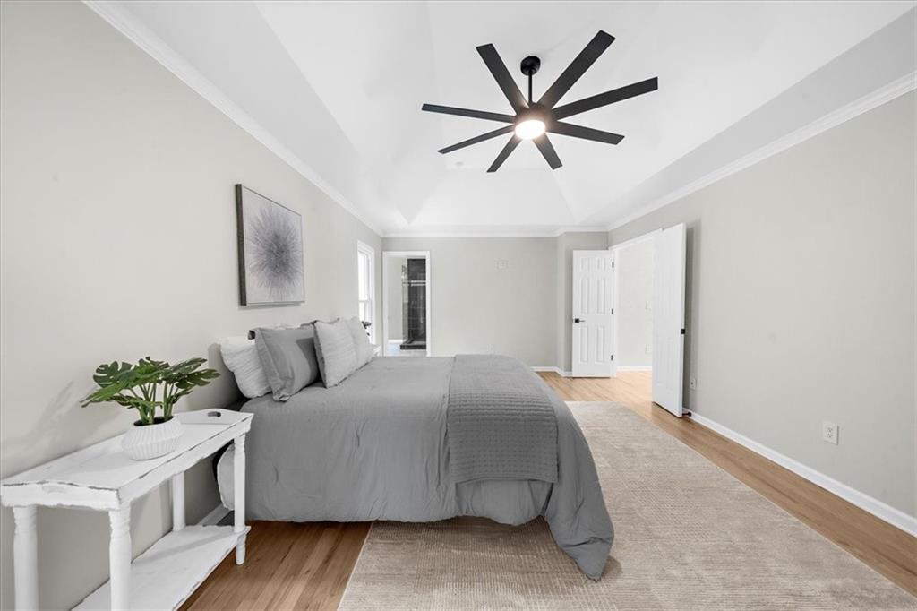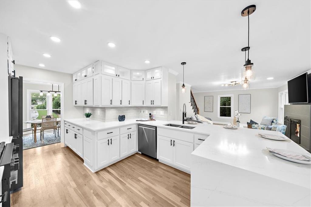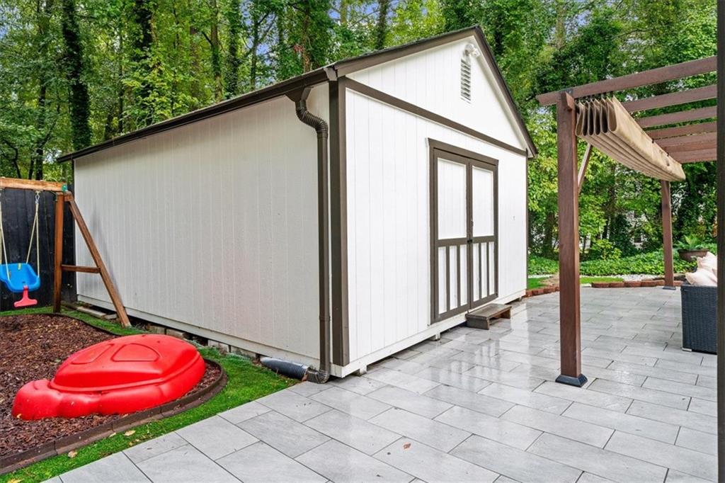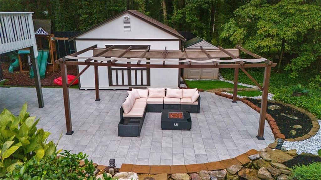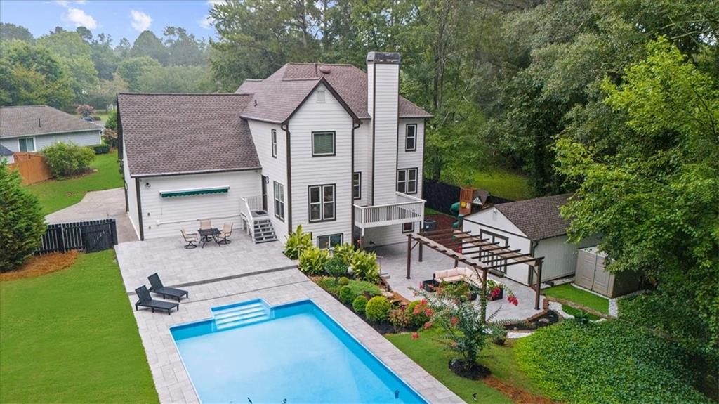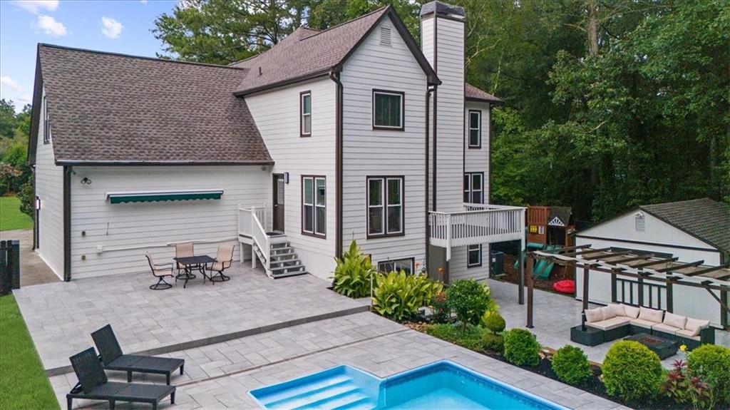 Fresh Renovated Smart Home in Prime Alpharetta Location. Presenting a stunning 6-bedroom, 4.5-bathroom home with the perfect combination of luxury, technology, and convenience—just minutes from downtown Alpharetta and Avalon in a top-rated school district. Nestled in a quiet cul-de-sac on a spacious 2/3-acre lot, the property features a private oasis offering an inground pool, serene pond with waterfall, and ample space for outdoor enjoyment including a playground for the kids. The pool has new beautiful large pavers extending to a great entertainment area for lounging and outside dining. This home is truly like a new home with a well thought comprehensive renovation. Inside, you’ll find a freshly remodeled interior with an open modern layout and top-quality finishes. The smart home system connects to Wi-Fi and controls smart light switches, exterior wall lighting, kitchen appliances, thermostats, a whole-home generator for peace of mind, and pool water quality monitoring—all from the convenience of your phone. If you want a home that has most everything this is your home. Walking through the doors you will notice the new beautiful hardwood floors, lighting, hardware, waterfall quartz countertops, and so much more. The home has had exemplary care providing new paint inside and out, newer windows, new roof, transferable termite letter, new AC Heat pumps. The in-law suite on the terrace level offers 2 bedrooms with ensuite full baths, laundry room, kitchenette and outside entrance. Large parking pad can accommodate an RV/Boat. Extra large workshop with heat and air. A separate storage shed for your pool toys. This is more than a home—it’s a lifestyle of comfort, security, and smart living in one of Alpharetta’s most desirable areas.