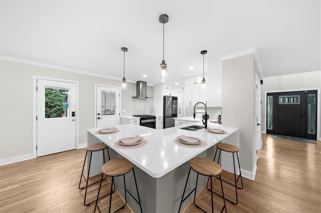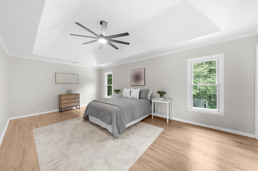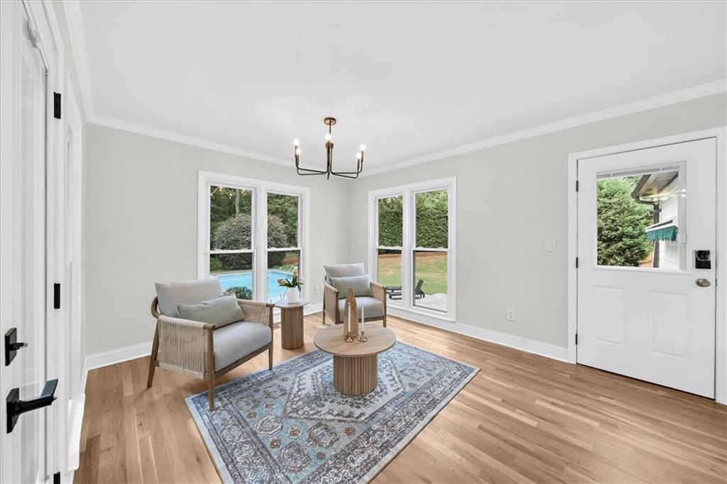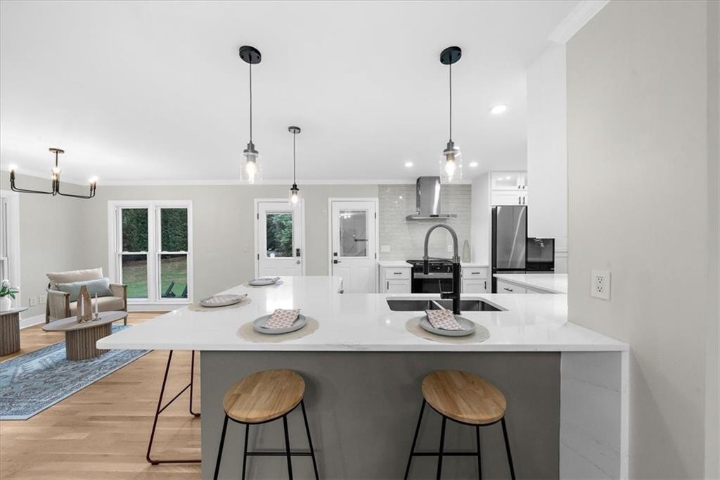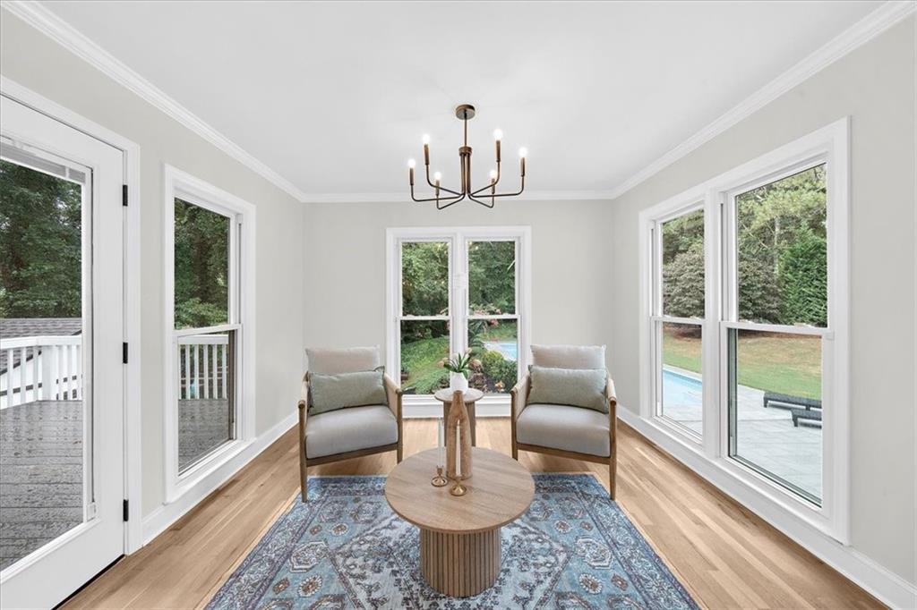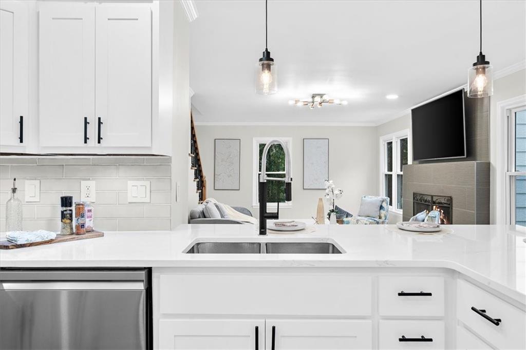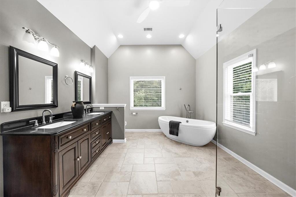 Fresh Renovated Smart Home in Prime Alpharetta Location. Presenting a stunning 6-bedroom, 4.5-bathroom home with the perfect combination of luxury, technology, and convenience—just minutes from downtown Alpharetta and Avalon in a top-rated school district. Nestled in a quiet cul-de-sac on a spacious 2/3-acre lot, the property features a private oasis offering an inground pool, serene pond with waterfall, and ample space for outdoor enjoyment including a playground for the kids. The pool has new beautiful large pavers extending to a great entertainment area for lounging and outside dining. This home is truly like a new home with a well thought comprehensive renovation. Inside, you’ll find a freshly remodeled interior with an open modern layout and top-quality finishes. The smart home system connects to Wi-Fi and controls smart light switches, exterior wall lighting, kitchen appliances, thermostats, a whole-home generator for peace of mind, and pool water quality monitoring—all from the convenience of your phone. If you want a home that has most everything this is your home. Walking through the doors you will notice the new beautiful hardwood floors, lighting, hardware, waterfall quartz countertops, and so much more. The home has had exemplary care providing new paint inside and out, newer windows, new roof, transferable termite letter, new AC Heat pumps. The in-law suite on the terrace level offers 2 bedrooms with ensuite full baths, laundry room, kitchenette and outside entrance. Large parking pad can accommodate an RV/Boat. Extra large workshop with heat and air. A separate storage shed for your pool toys. This is more than a home—it’s a lifestyle of comfort, security, and smart living in one of Alpharetta’s most desirable areas.