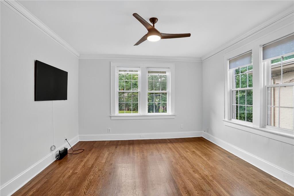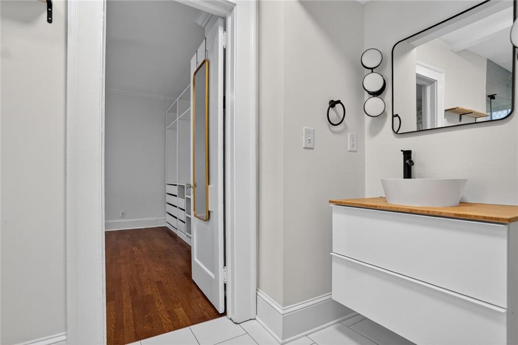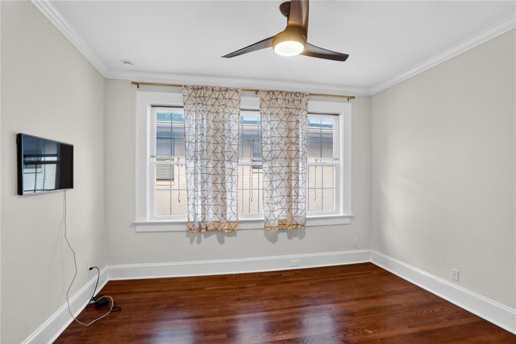 Welcome to The Virginian, a boutique 1935 building brimming with charm in the heart of Virginia Highland. This freshly painted and move-in ready upstairs corner unit is filled with natural light and character, with high ceilings, hardwood floors, crown moulding, and timeless architectural details that set it apart. The kitchen is as stylish as it is functional, with rich Acacia wood countertops, a breakfast counter with storage, and retro-inspired appliances that bring a touch of personality. There’s plenty of space for casual meals in the eat-in area, while the renovated bath with its stand-up shower offers a fresh, modern touch. Convenience is built right in with an in-unit washer and dryer. Life here extends beyond your front door—enjoy shared basement storage and a welcoming communal space, perfect for connecting with neighbors. Step outside and you’re just a stone’s throw from Piedmont Park, the Beltline, and the neighborhood’s favorite restaurants, coffee shops, and boutiques. It’s the perfect mix of historic charm and in-town lifestyle.