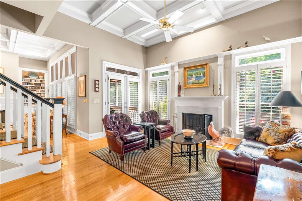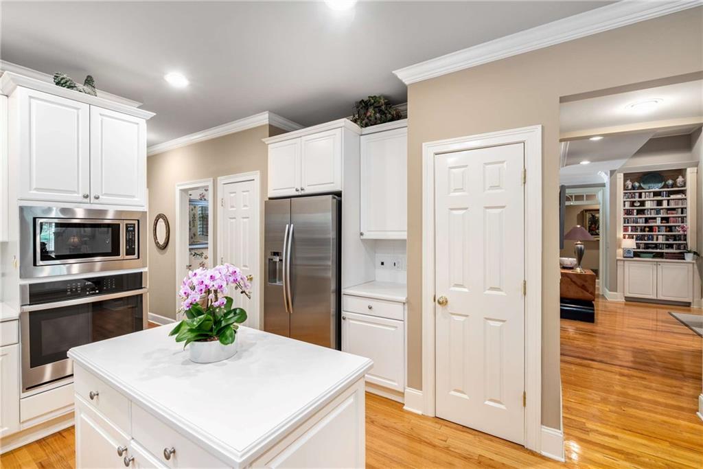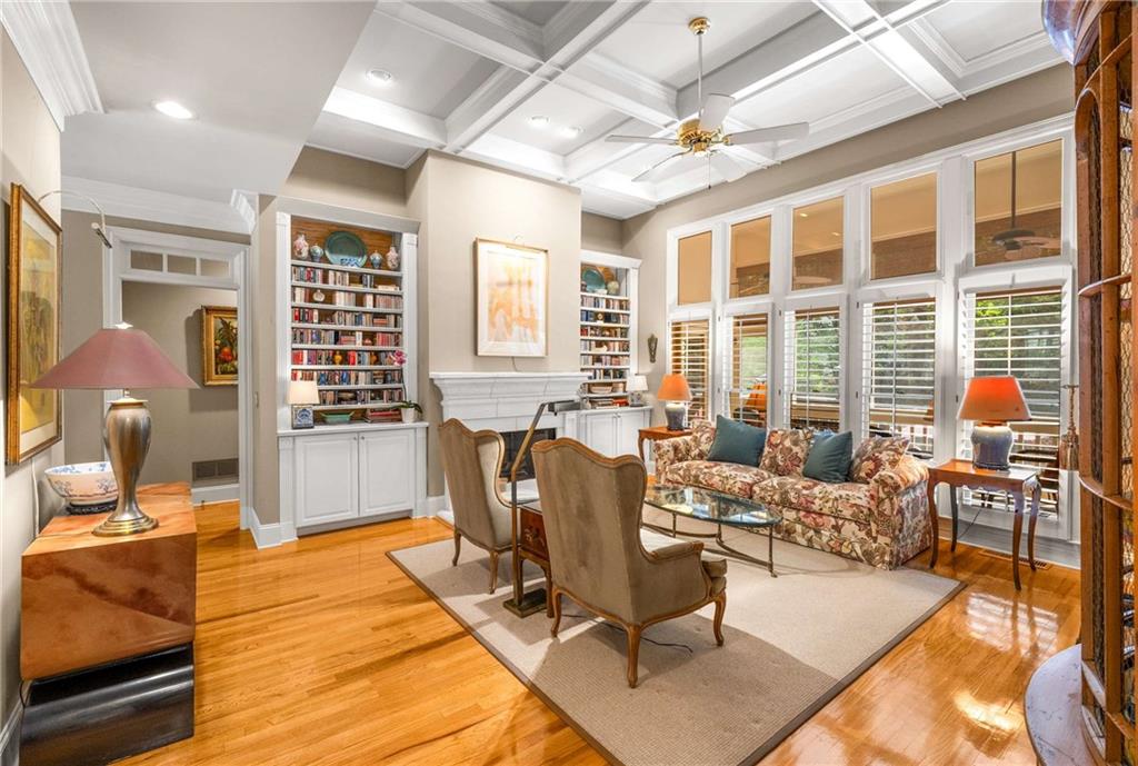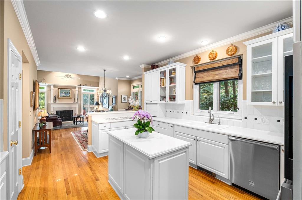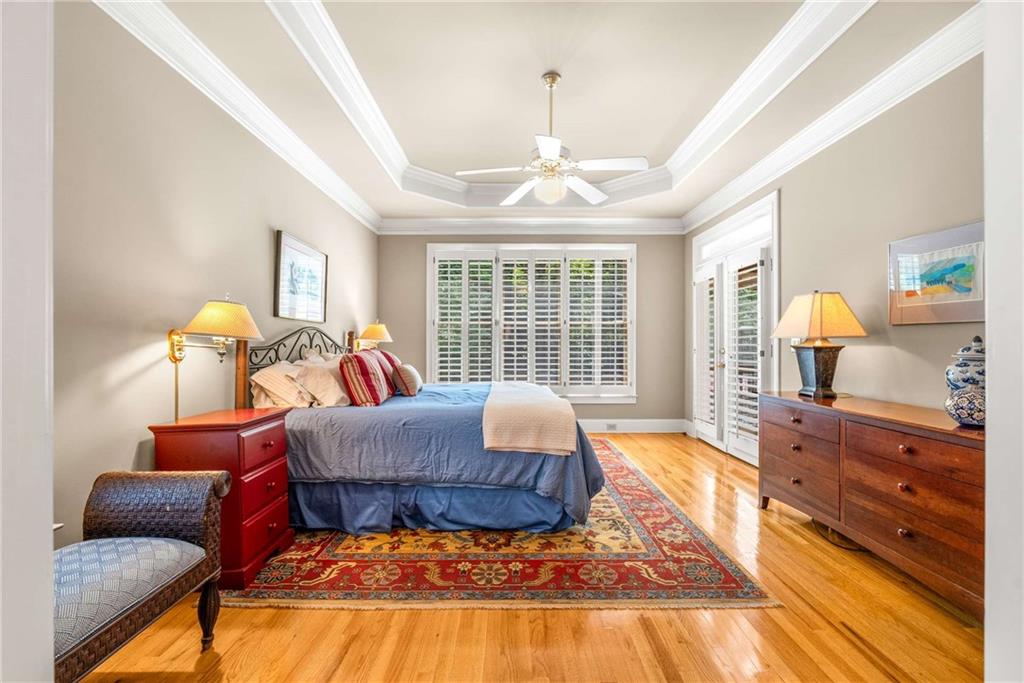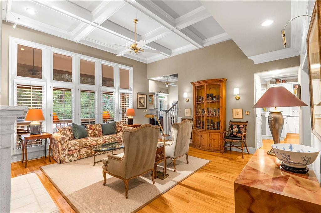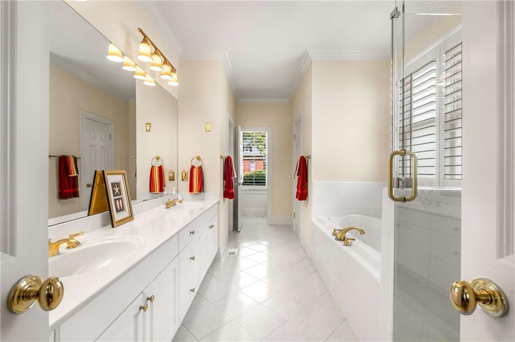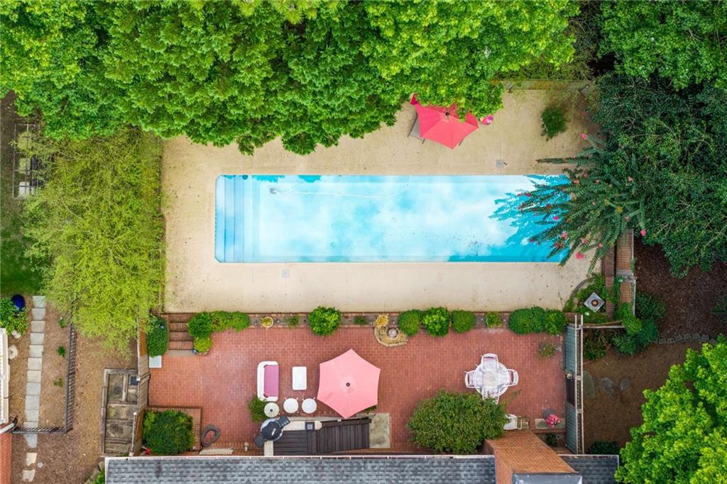 HIGH POINT PLACE/ ITP SANDY SPRINGS: Picture perfect three sides brick traditional with heated saltwater pool suitable for laps. Rich details abound with wood and gas fireplaces, custom upgraded molding and wainscotting, coffered and tray ceilings, beautiful solid oak wood floors on main, custom wood interior shutters, recessed lighting, and solid wood interior doors. Aged copper roofed front porch leads to double entry doors. Welcoming entrance foyer with a coat closet. Expansive living room has floor to ceiling windows, a gas fireplace with gas logs, built in bookshelves, and coffered 11 foot ceilings. Separate dining room with wainscotting. Family / keeping room boasts French doors to the screen porch, a wood burning fireplace with gas starter, and 11 foot coffered ceilings. Screen porch overlooks the courtyard back yard and the pool. Extended multi-level brick patio and pool area are an entertainer’s dream. Back yard has high privacy fencing. Kitchen features white cabinets and white countertops, a peninsula and an island, gas cooktop, stainless steel wall oven, built-in microwave, side by side refrigerator, and multiple pantry closets. Breakfast area connects the kitchen and the family room. Main floor primary bedroom suite is oversized with a tray ceiling, two walk-in closets, and another set of French doors that open directly to the screen porch. Primary bathroom is amply sized and has double sinks, air bubble soaking tub, frameless glass shower, and a separate water closet. 4 bedrooms are privately located on the upper floor. 2 bedrooms share a Jack and Jill bath. A Bonus room adjoins one of the bedrooms. An oversized bedroom could easily function as an upstairs family room. The third and fourth bedrooms also connect through a Jack and Jill bath. Powder room and laundry room with sink round out the main floor. Attached 2 car garage. Rainbird irrigation system serves the professionally and lushly landscaped yard. High Point Place is a peaceful cul-de-sac neighborhood with sidewalks and underground utilities full of traditional brick homes. Extremely desirable and convenient location in southern Sandy Springs with High Point Elementary just 3 blocks away, AJA around the corner, and only 5 minutes to Chastain Park.