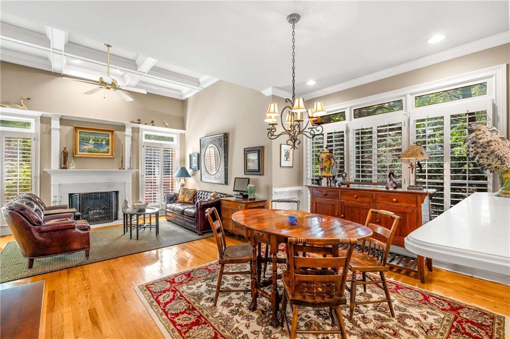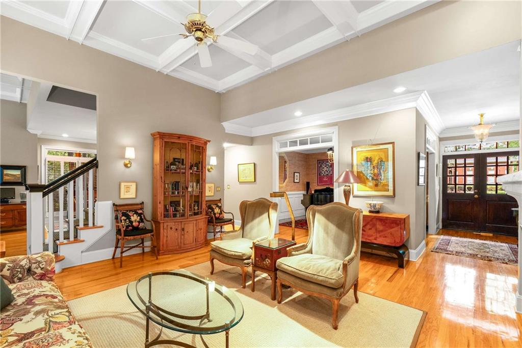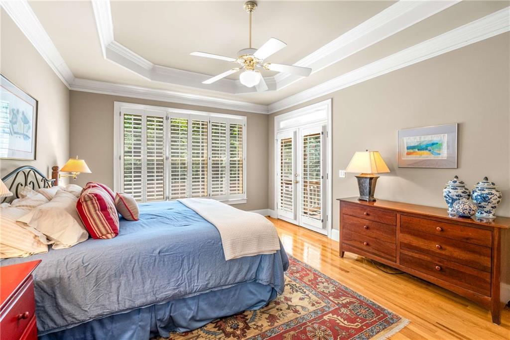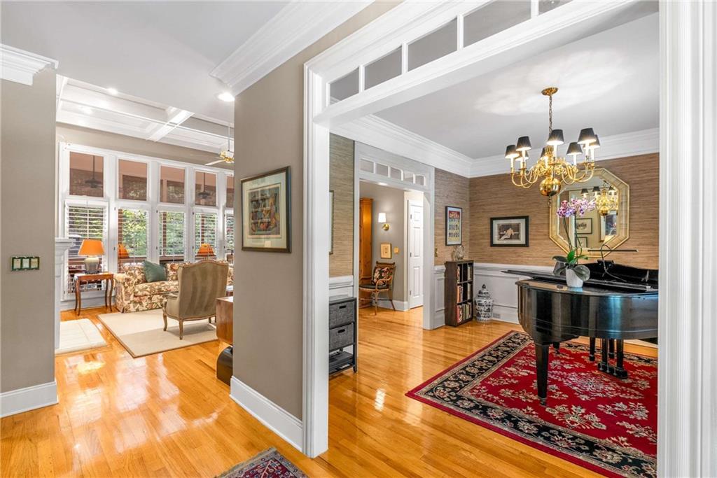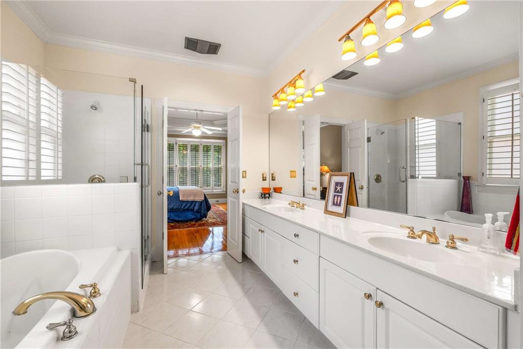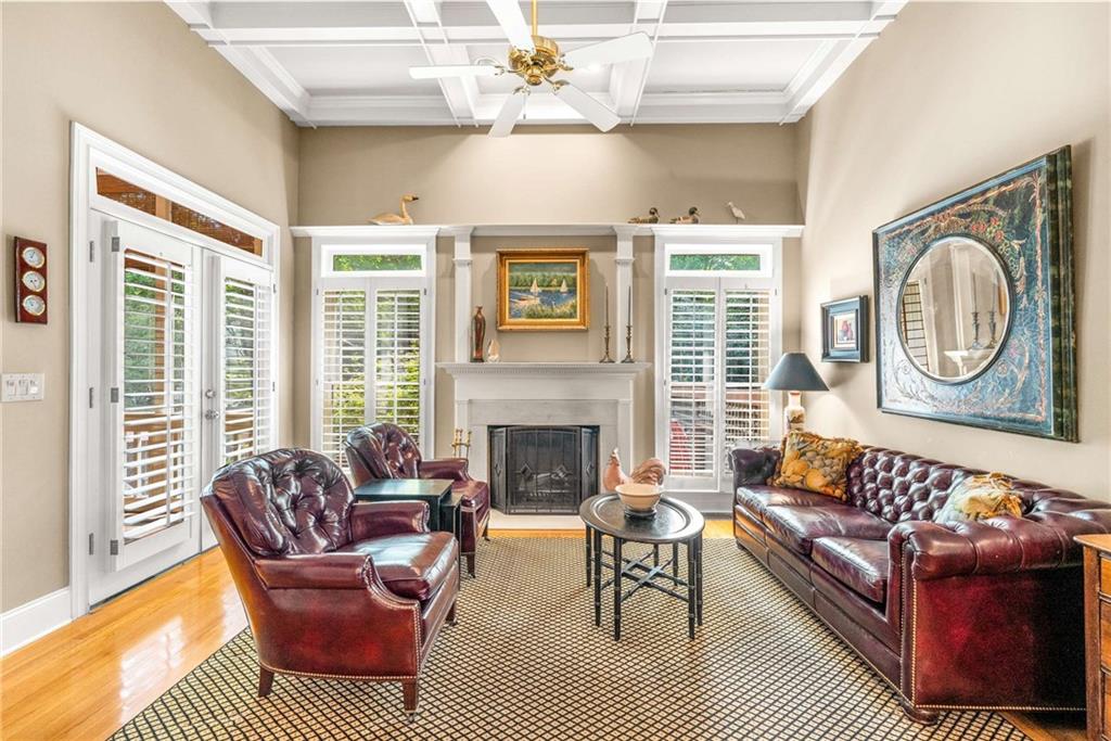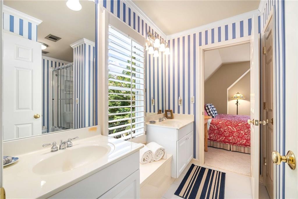 HIGH POINT PLACE/ ITP SANDY SPRINGS: Picture perfect three sides brick traditional with heated saltwater pool suitable for laps. Rich details abound with wood and gas fireplaces, custom upgraded molding and wainscotting, coffered and tray ceilings, beautiful solid oak wood floors on main, custom wood interior shutters, recessed lighting, and solid wood interior doors. Aged copper roofed front porch leads to double entry doors. Welcoming entrance foyer with a coat closet. Expansive living room has floor to ceiling windows, a gas fireplace with gas logs, built in bookshelves, and coffered 11 foot ceilings. Separate dining room with wainscotting. Family / keeping room boasts French doors to the screen porch, a wood burning fireplace with gas starter, and 11 foot coffered ceilings. Screen porch overlooks the courtyard back yard and the pool. Extended multi-level brick patio and pool area are an entertainer’s dream. Back yard has high privacy fencing. Kitchen features white cabinets and white countertops, a peninsula and an island, gas cooktop, stainless steel wall oven, built-in microwave, side by side refrigerator, and multiple pantry closets. Breakfast area connects the kitchen and the family room. Main floor primary bedroom suite is oversized with a tray ceiling, two walk-in closets, and another set of French doors that open directly to the screen porch. Primary bathroom is amply sized and has double sinks, air bubble soaking tub, frameless glass shower, and a separate water closet. 4 bedrooms are privately located on the upper floor. 2 bedrooms share a Jack and Jill bath. A Bonus room adjoins one of the bedrooms. An oversized bedroom could easily function as an upstairs family room. The third and fourth bedrooms also connect through a Jack and Jill bath. Powder room and laundry room with sink round out the main floor. Attached 2 car garage. Rainbird irrigation system serves the professionally and lushly landscaped yard. High Point Place is a peaceful cul-de-sac neighborhood with sidewalks and underground utilities full of traditional brick homes. Extremely desirable and convenient location in southern Sandy Springs with High Point Elementary just 3 blocks away, AJA around the corner, and only 5 minutes to Chastain Park.
