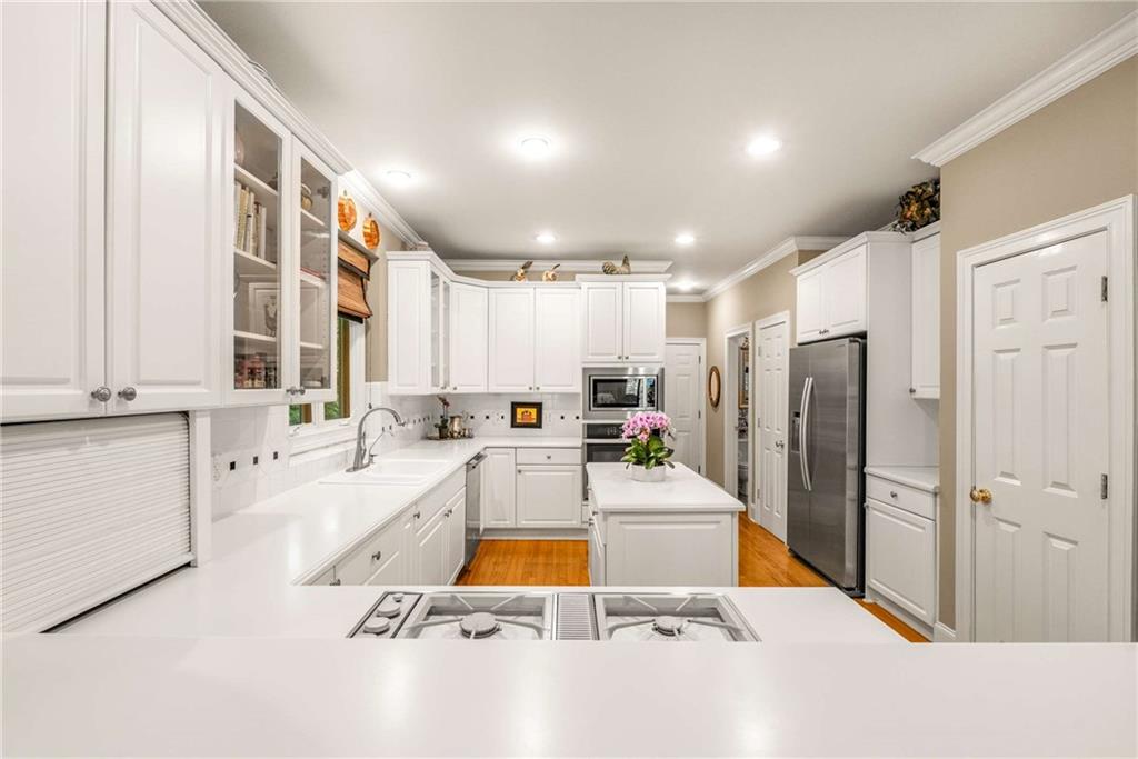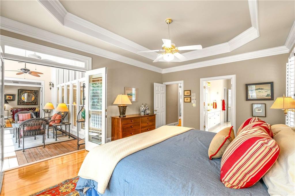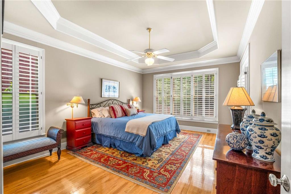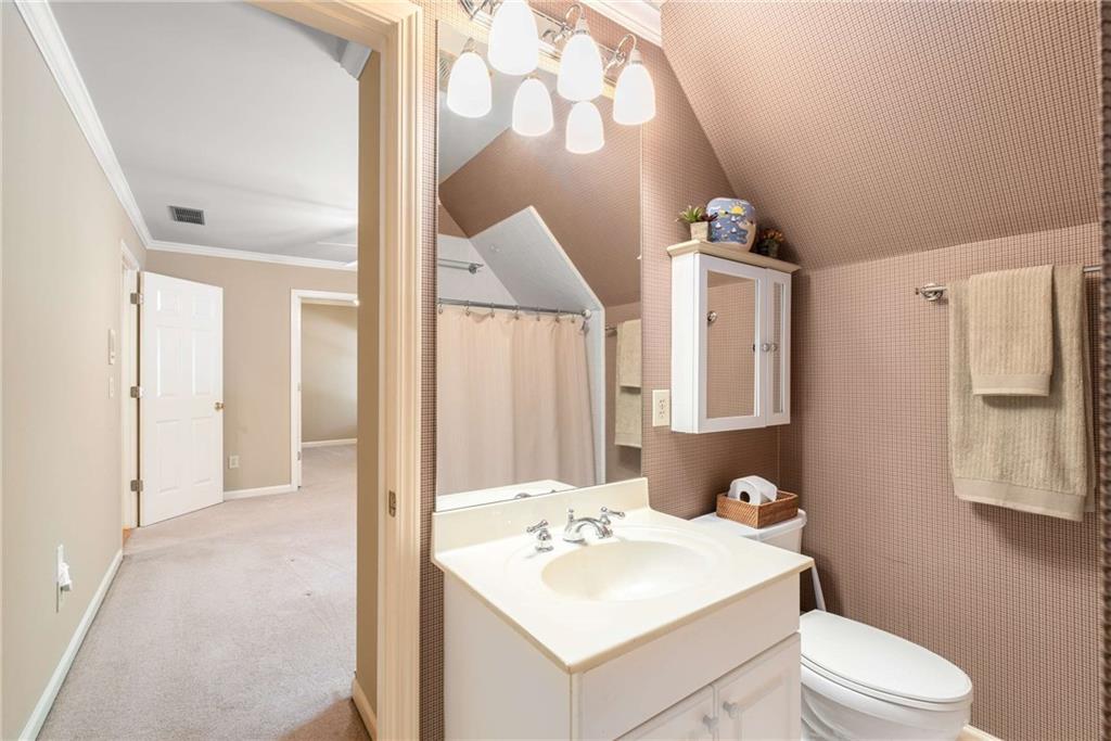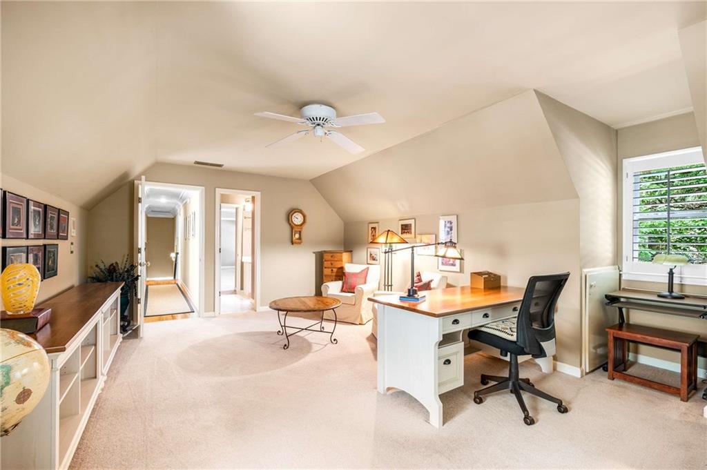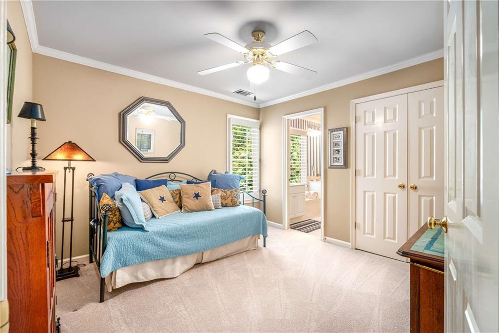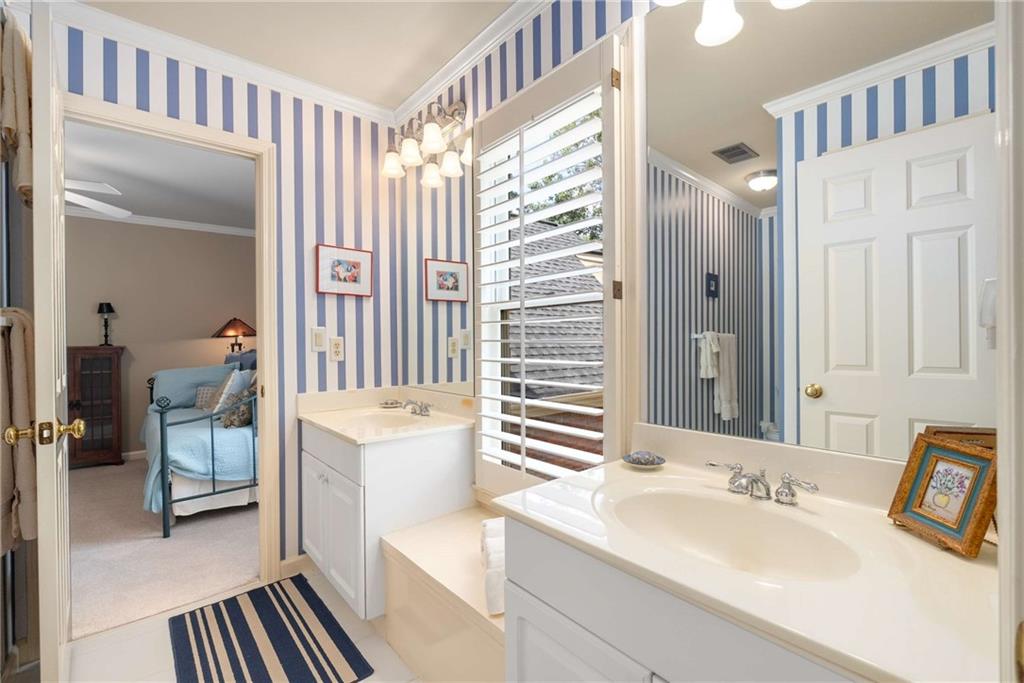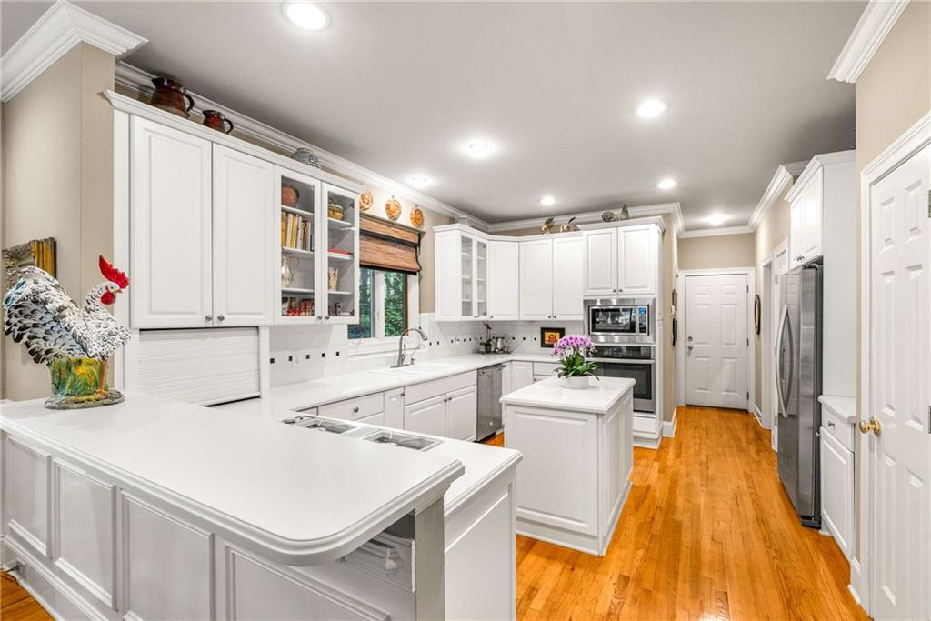 HIGH POINT PLACE/ ITP SANDY SPRINGS: Picture perfect three sides brick traditional with heated saltwater pool suitable for laps. Rich details abound with wood and gas fireplaces, custom upgraded molding and wainscotting, coffered and tray ceilings, beautiful solid oak wood floors on main, custom wood interior shutters, recessed lighting, and solid wood interior doors. Aged copper roofed front porch leads to double entry doors. Welcoming entrance foyer with a coat closet. Expansive living room has floor to ceiling windows, a gas fireplace with gas logs, built in bookshelves, and coffered 11 foot ceilings. Separate dining room with wainscotting. Family / keeping room boasts French doors to the screen porch, a wood burning fireplace with gas starter, and 11 foot coffered ceilings. Screen porch overlooks the courtyard back yard and the pool. Extended multi-level brick patio and pool area are an entertainer’s dream. Back yard has high privacy fencing. Kitchen features white cabinets and white countertops, a peninsula and an island, gas cooktop, stainless steel wall oven, built-in microwave, side by side refrigerator, and multiple pantry closets. Breakfast area connects the kitchen and the family room. Main floor primary bedroom suite is oversized with a tray ceiling, two walk-in closets, and another set of French doors that open directly to the screen porch. Primary bathroom is amply sized and has double sinks, air bubble soaking tub, frameless glass shower, and a separate water closet. 4 bedrooms are privately located on the upper floor. 2 bedrooms share a Jack and Jill bath. A Bonus room adjoins one of the bedrooms. An oversized bedroom could easily function as an upstairs family room. The third and fourth bedrooms also connect through a Jack and Jill bath. Powder room and laundry room with sink round out the main floor. Attached 2 car garage. Rainbird irrigation system serves the professionally and lushly landscaped yard. High Point Place is a peaceful cul-de-sac neighborhood with sidewalks and underground utilities full of traditional brick homes. Extremely desirable and convenient location in southern Sandy Springs with High Point Elementary just 3 blocks away, AJA around the corner, and only 5 minutes to Chastain Park.