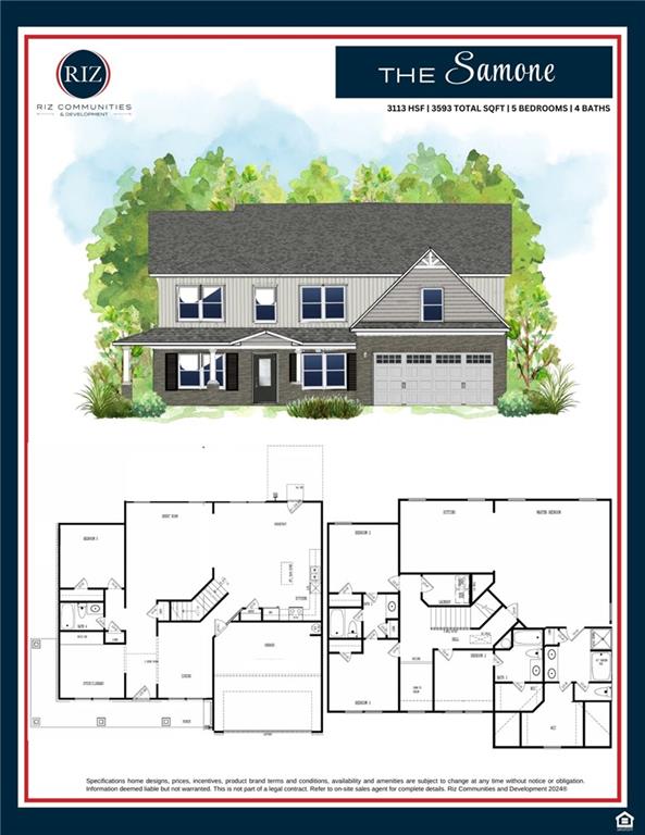 Welcome to the Samone Plan! This stunning 5-bedroom, 4-bath home offers 3,113 sq ft of beautifully crafted heated living space, complete with a FULL BASEMENT that provides endless possibilities for expansion, entertainment, or storage. Step into a grand two-story foyer that sets the tone for the upscale elegance found throughout the home. The chef's kitchen is a true highlight, featuring granite countertops, 36-inch crown-molded cabinets, and stylish vinyl flooring that flows across the main level. Ideal for both everyday living and entertaining, the open-concept layout includes coffered ceilings, a breakfast bar, and a cozy keeping room with a fireplace. Upstairs, the oversized primary suite is your private retreat, complete with a sitting area, spacious walk-in closets, and a spa-inspired bath with a double vanity, tiled shower, and freestanding tub. A versatile loft and upgraded laundry room cabinetry add functionality and charm to the overall layout. With its thoughtful design, high-end finishes, and generous space throughout, the home offers everything you need to live comfortably-and in style. Incentives are available to utilize towards closing costs and/or rate buy down with the use of our preferred lender.