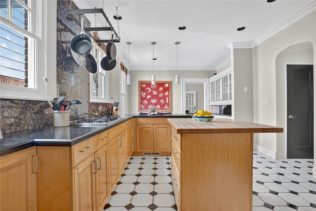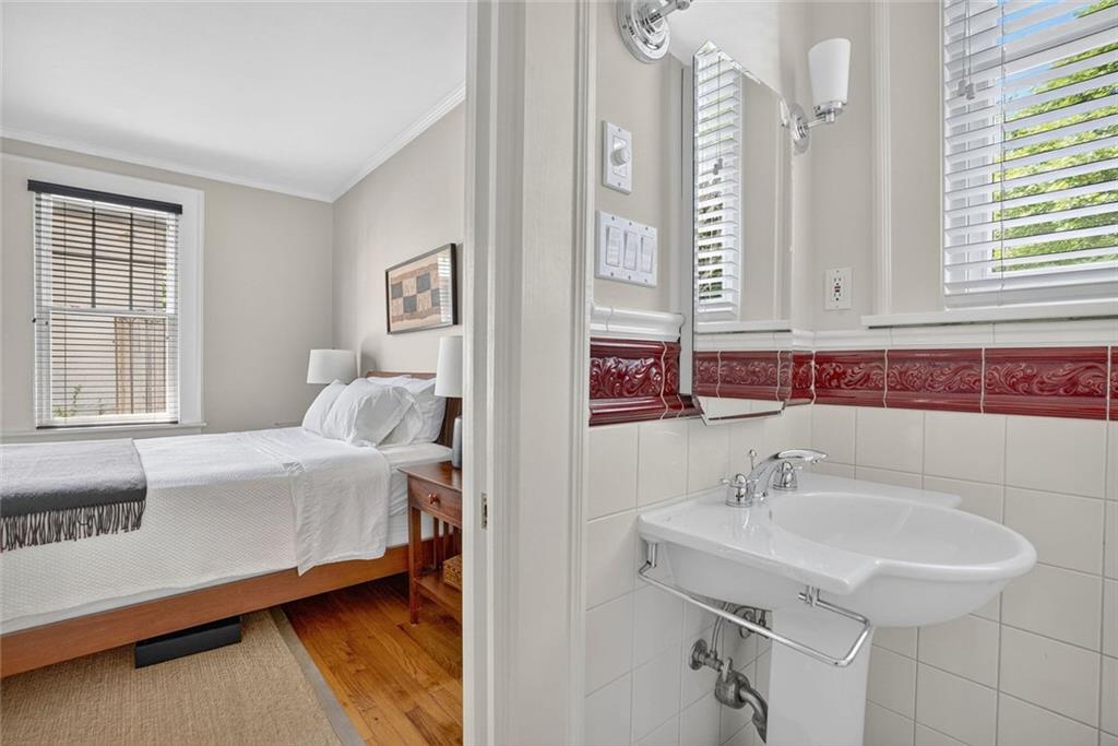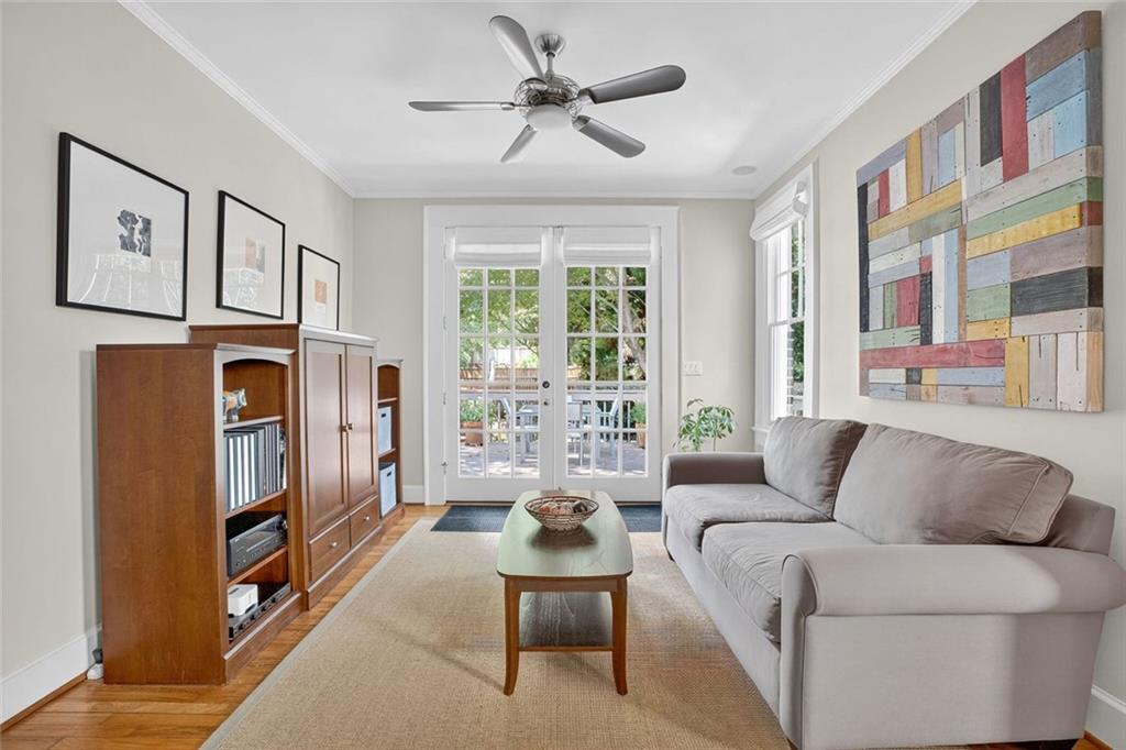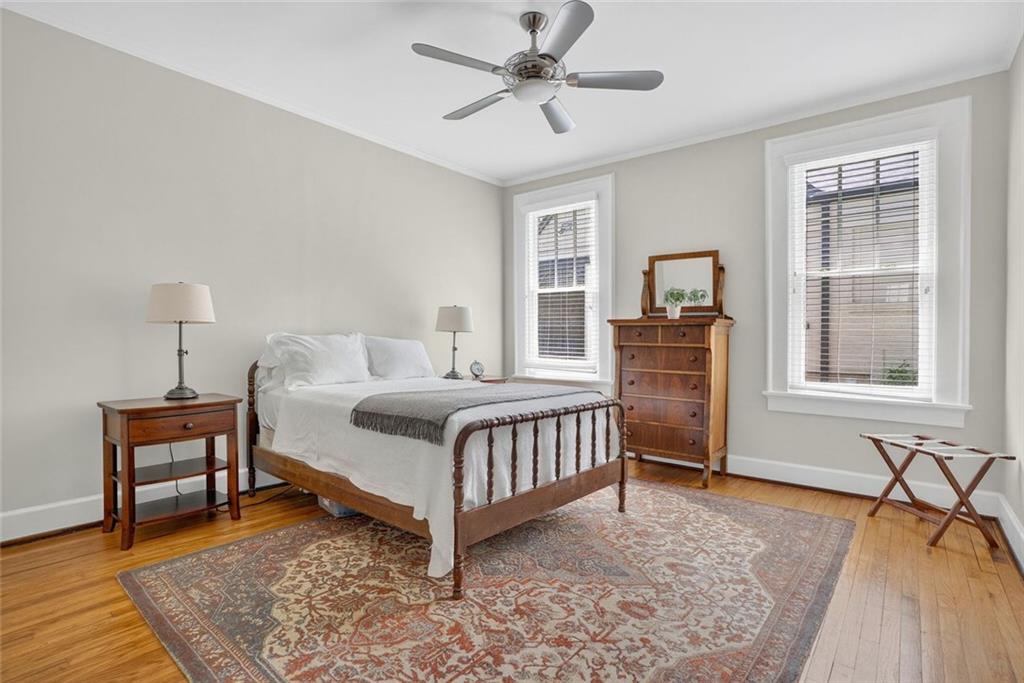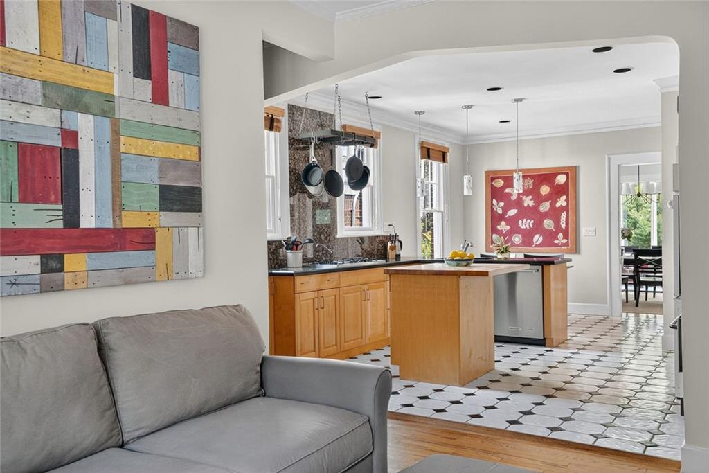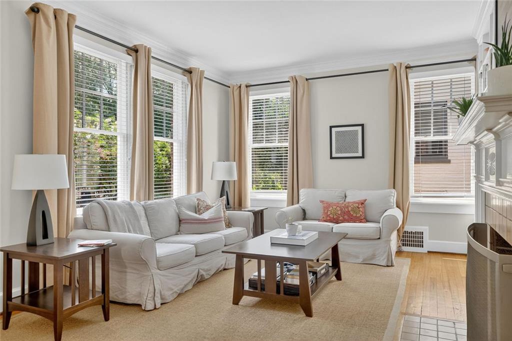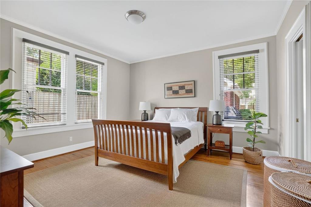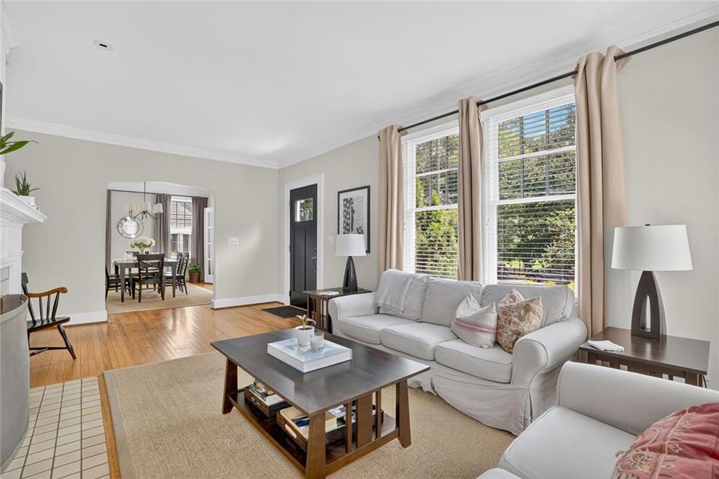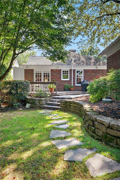 If you have been searching for a home with some of the original features still remaining, then this is the home for you. Nestled in the sought-after neighborhood of Virginia Highland, this is a classic 1930’s home with charm and character. The home boasts many novel features including the stunning period fireplace and mantel in a relaxing family room. Built in bookshelves, original hardwood floors and tons of natural light fill this room as you enter the home through the new front door. Off the family room is a large dining spacious dining room with new chandelier. The front porch was enclosed to make a bright functional office space but could be a playroom or studio. Off the dining-room is an original style built in butler's pantry which is perfect for displaying your stem ware, China and collectables. There is a delightful breakfast area that is overlooked by the spacious fully equipped kitchen. The kitchen dishwasher was replaced in 2015 a new wall oven and warming draw were recently purchased and installed. There’s a gas cook top with gridle, a one-piece granite back splash for easy cleanup, a playful tiled floor, and kitchen pantry, kitchen island and pendant lighting above the granite counters and a small office table complete this space. As you head through the kitchen there is a cozy reading/tv room with French doors that lead to a deck and garden. To the left and of this room you walk into a long hall that has track lighting to showcase your art the original arches in the hall and kitchen gives you a sense of the 1930’s style. In the hall is a square junction landing that leads to the primary back bedroom with an ensuite bathroom. There is a step-in tub shower combination with glass door, an adorable period style shelving unit, newer light fixtures and mirror medicine cabinet. The guest bedroom is very spacious and in the middle of the home and has a door that leads to a full bathroom with a clawfoot tub attractive accent tile, pedestal sink and wall sconces. There is a ton of additional storage space in the basement with a door to lead to outside AND a possible expansion for a second-floor addition from inside the home’s hallway stairs leads to a huge attic. Go through the den off the kitchen to the spacious back deck and enclose shaded back yard. The big surprise is the two-car garage which is a rare find. This beautiful, cheerful home is darling and sits up off the road with a long driveway. Located on one of the very best streets nestled in one of Atlanta’s most desirable neighborhoods and ranked by the media as one of the best neighborhoods in the south!