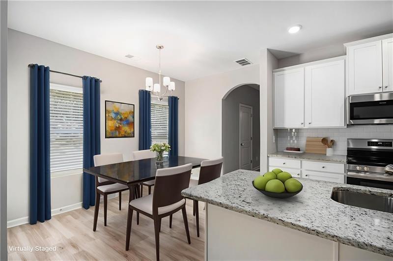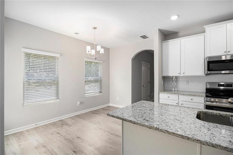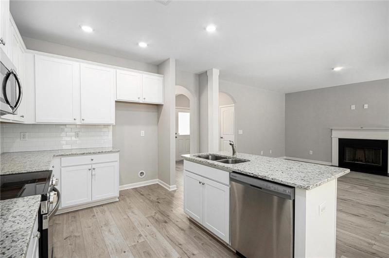 **Motivated Sellers!!**HOA will approve concrete pad if wanting to add to side house for parking** Welcome Home to This Beautiful Craftsman-Style Two-Story! Move-in ready and beautifully constructed, this 4-bedroom, 2.5-bath home combines timeless design with modern features in a spacious and functional layout. From the moment you step inside, you’ll notice the quality and attention to detail throughout: *Main Floor Features: Gourmet kitchen with granite countertops, a large island, and sleek puck lighting. Separate dining room perfect for gatherings and entertaining. Great room with a cozy fireplace, ideal for relaxing evenings. Convenient main-level laundry room. Elegant arches that add architectural charm and character. *Upstairs Comfort: Owner’s suite featuring a private bath and a spacious walk-in closet. Three additional bedrooms and a full hall bath provide plenty of space for family or guests. *Exterior & More: 2-car garage. Charming Craftsman-style exterior with stone accents. House comes with ring camera system with the doorbell camera as well as front and back flood lights. This home is ready to be yours—schedule your private showing today!