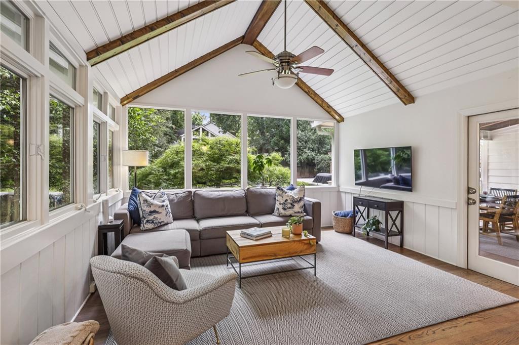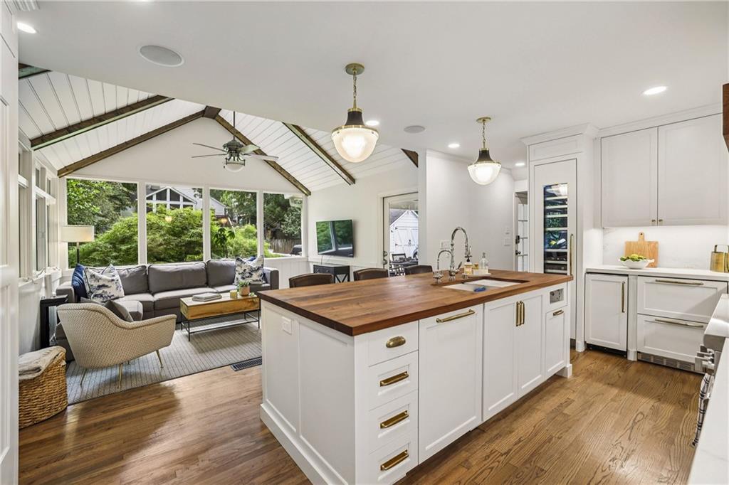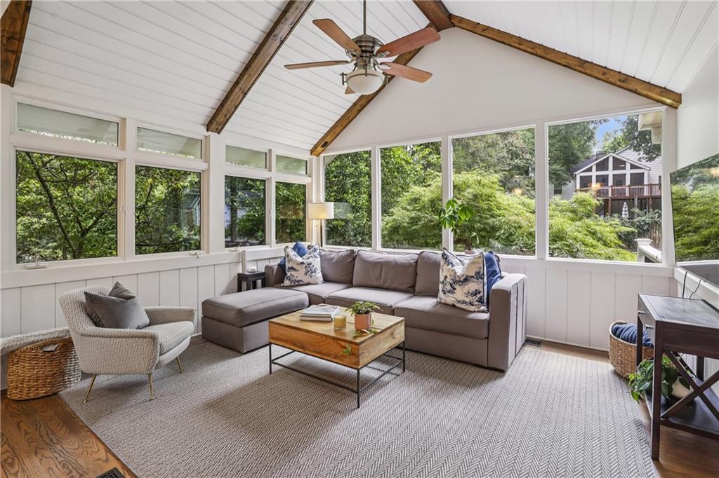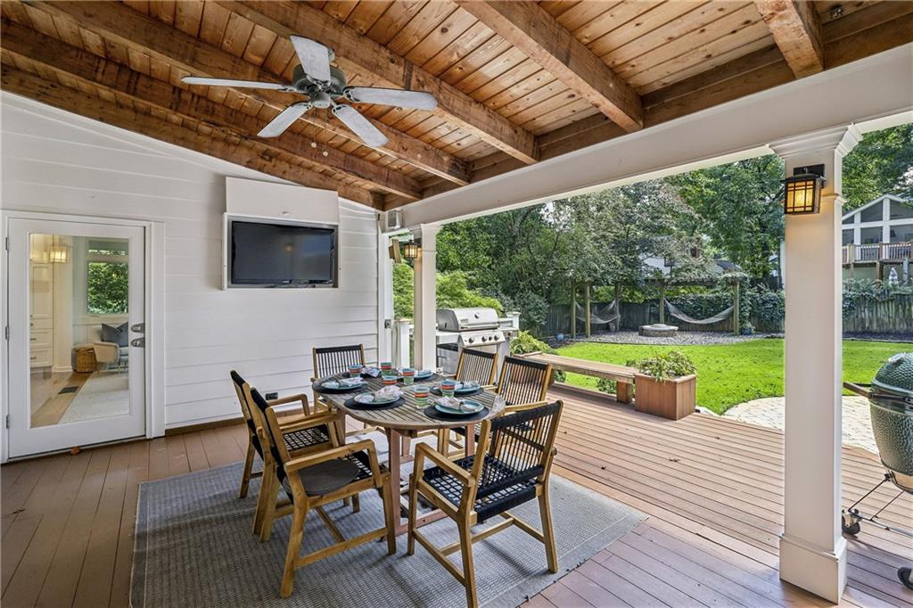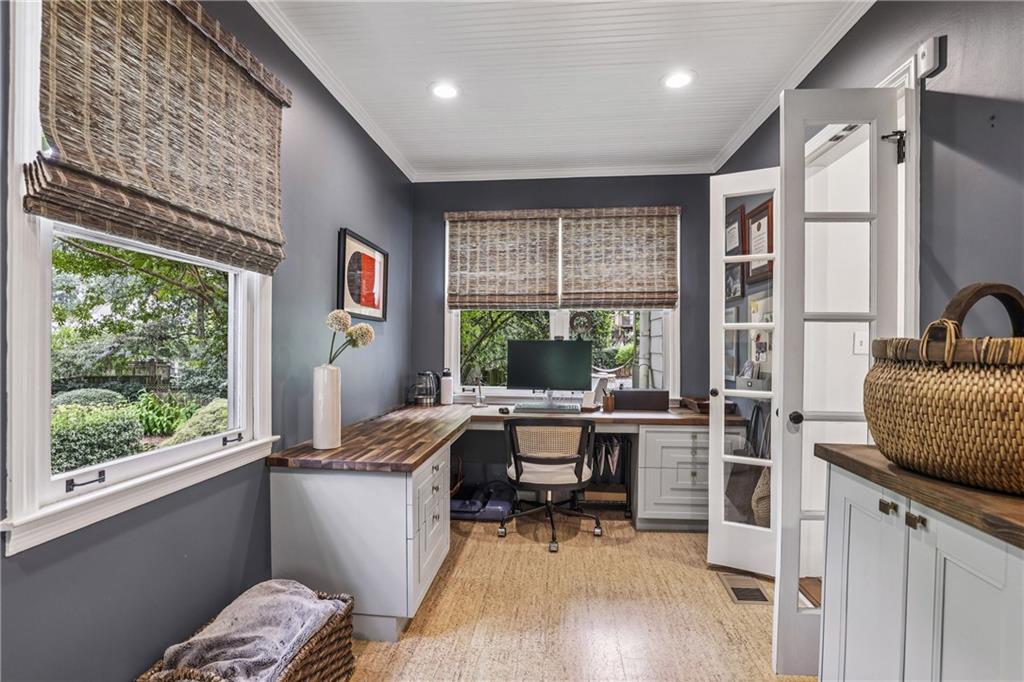 This is the opportunity your Buyers have been waiting for – the one they’ve driven by countless times and said “if ever this comes on the market”. 380 Garden Lane is the most picturesque bungalow on the most popular street in the always sought after Loring Heights and is the perfect combination of classic charm with modern updates. Pass the practice putting green as you walk up the blue stone steps to the inviting covered front porch. Through the front door you’ll enter the formal dining room with new modern cabinetry. The office is just off the DR with a cool built-in desk – sure to be the envy during all zoom meetings. At heart of the home is the true gem. After being taken down to the studs, the result is beyond impressive with premium, smart Thermador appliances including coffee and baking stations, stunning black walnut island, Dekton countertops, custom cabinetry, wine fridge plus a drink fridge and hidden spice racks. This is a true chef’s dream and perfect for entertaining as it opens to the family room with vaulted, beamed ceiling and expansive windows letting in all the natural light. The covered back deck is where so much fun can happen while grilling, watching the game on the flat screen and looking out over the fenced, flat back yard listening to the sounds of someone practicing their shots on the basket ball court. The primary ensuite is on the main floor and offers both a walk-in closet and installed custom closet system, large vanity, seamless glass shower and soaking tub. A guest room and full bath complete the main floor. Upstairs are two generous sized rooms and full bath, built-in shelves to hold so many books and the cutest little nook. 380 is one of the few homes in the neighborhood that has a basement – perfect as a man cave, theater or game room, working out or guest suite with the Murphy bed and full bath. Don’t forget to peak in the cabinet where you’ll find a multi-bottle wine rack. Don’t miss this opportunity to live in Loring Heights, one of Atlanta’s best kept secrets – an active community that includes a neighborhood park, playground, pond and dog park with easy access to the Northside Beltline, Buckhead, Midtown and I-75/85. Just minutes from the Westside, Bobby Jones Golf Course, Bitsy Grant Tennis Center, The High Museum & Woodruff Arts Center, awesome shopping, divine dining and zoned for E. Rivers Elementary.