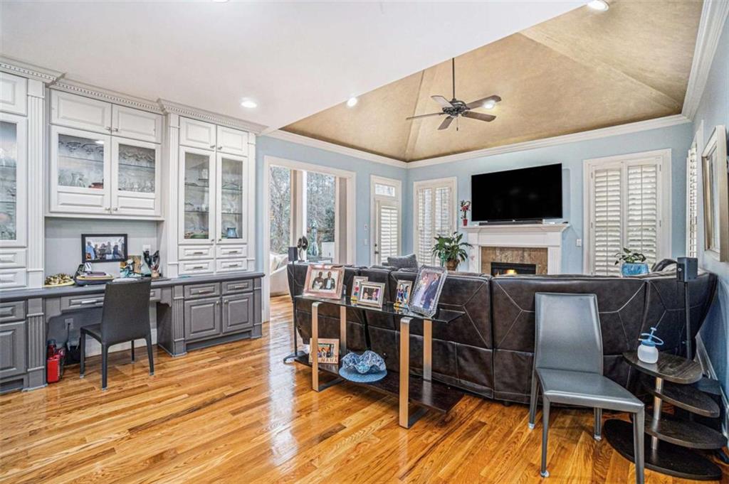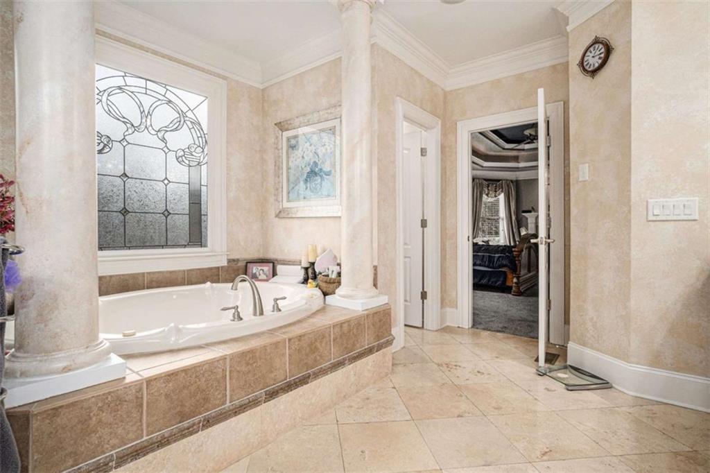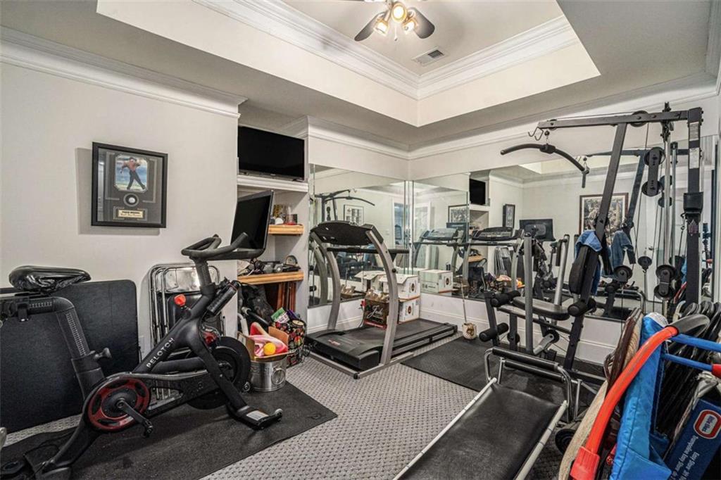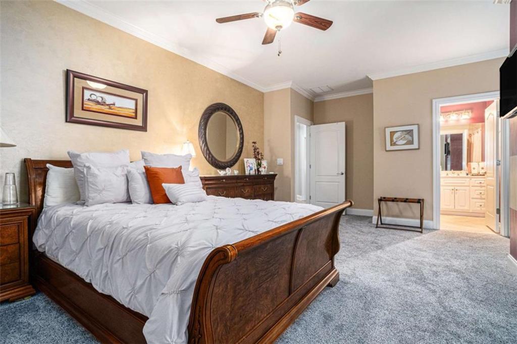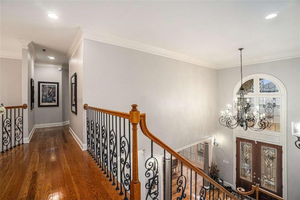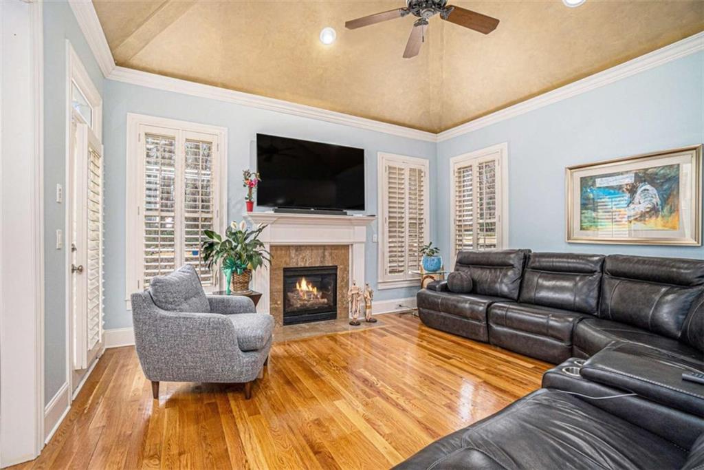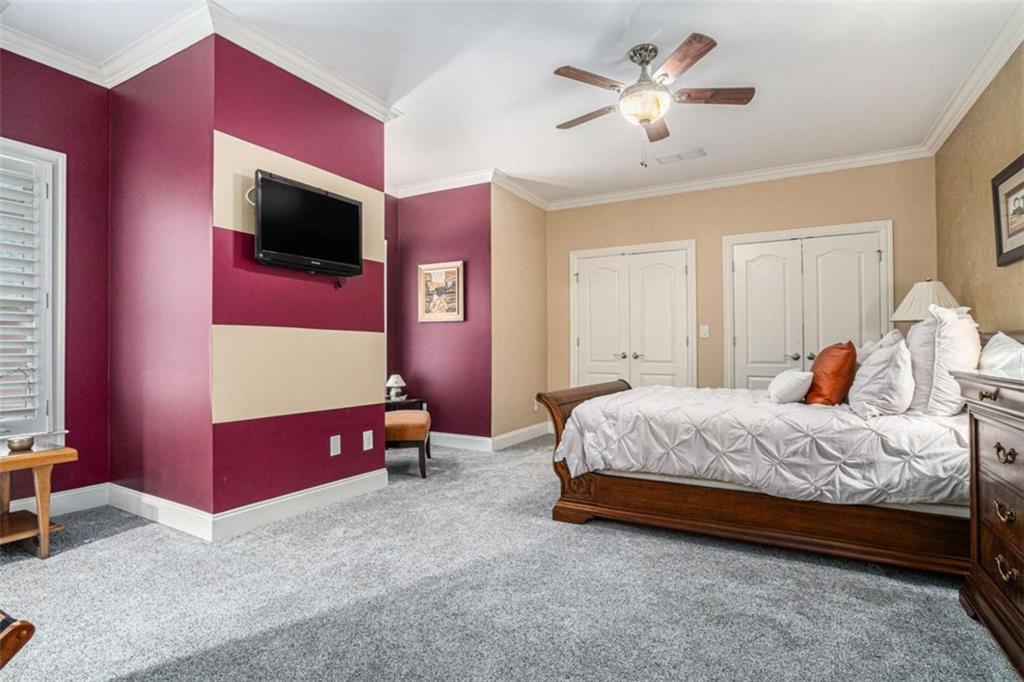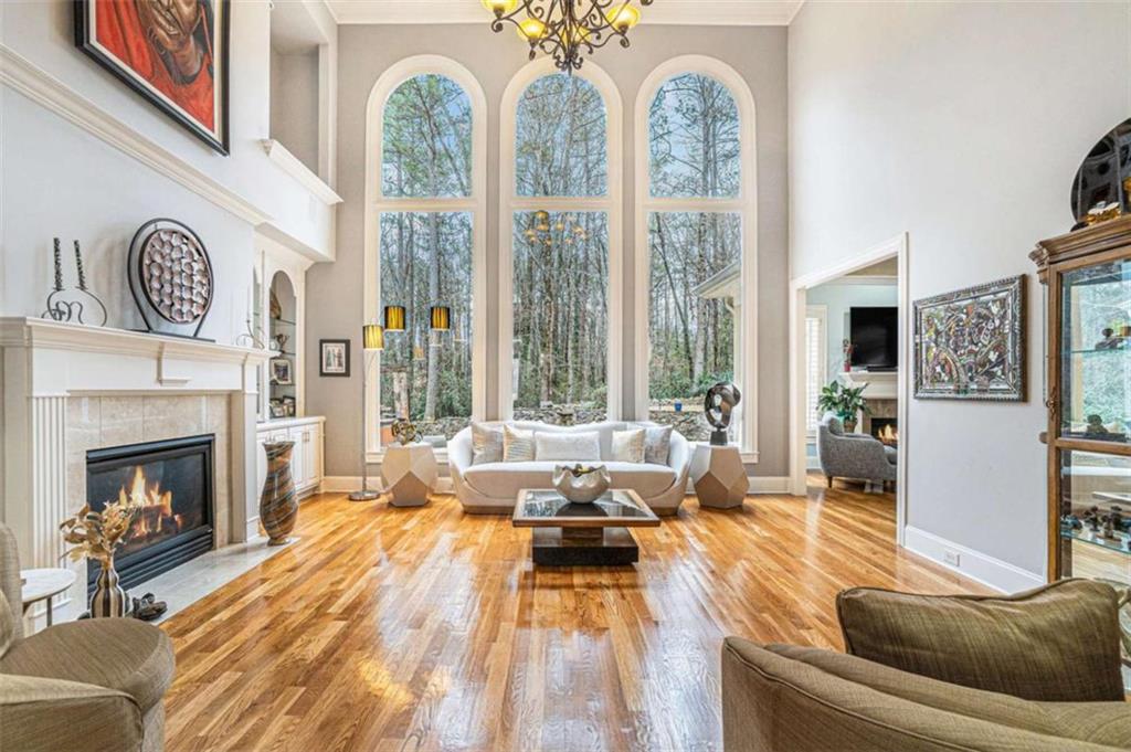 Luxury Living at Its Finest! Step into this stunning home featuring an inviting open foyer and a spacious dining room. The great room boasts floor-to-ceiling windows, a fireplace, and beautiful hardwood floors that flow seamlessly into the kitchen, which offers abundant custom cabinetry, and into the keeping room with an additional fireplace, perfect for entertaining. The gourmet kitchen is a chef's dream, complete with granite countertops, a 5-burner cooktop, a microwave/wall oven combo, an additional full-size oven, warming drawer, trash compactor, and a dishwasher. The kitchen opens into the keeping room, with a large laundry room located just off the kitchen, all thoughtfully connected for everyday living and effortless entertaining. The primary suite on the main level offers a private retreat with its own fireplace and a large spa-like bath featuring two dual-head showers with a built-in seat, an oversized whirlpool jacuzzi tub, and a fully customized walk-in closet. Upstairs, you'll find three en suite bedrooms plus a fourth bedroom that can function as a guest room or study, providing ample space for family and guests. A large “craft” room offers additional space for creative projects or flexible use. All closets throughout the home are custom-designed for optimal storage and luxury. This home also features an 18-speaker surround sound system installed throughout for easy listening or lively parties. The fully finished basement is an entertainer's paradise, showcasing a custom bar complete with a refrigerator, microwave, wine cooler, and dishwasher, plus a pool room, theater room, large entertainment room, an additional en suite bedroom, exercise room, cozy fireplace, powder room, and access to a lower level patio with a stairway leading up to the main level patio. Outdoor living is equally impressive, with a hot tub, putting green, and a beautiful fountain creating a serene escape. Modern conveniences include an electric car charging station, a central vacuum system, chandelier-lowering chains for effortless maintenance, and a second stairway from the garage to the lower level. Major upgrades include a new roof (2023) and a new water heater (2025). Don’t miss this exceptional home offering luxury, space, functionality, and thoughtful upgrades at every turn!