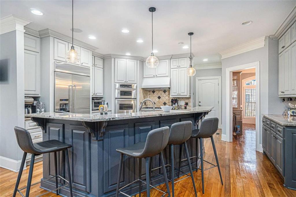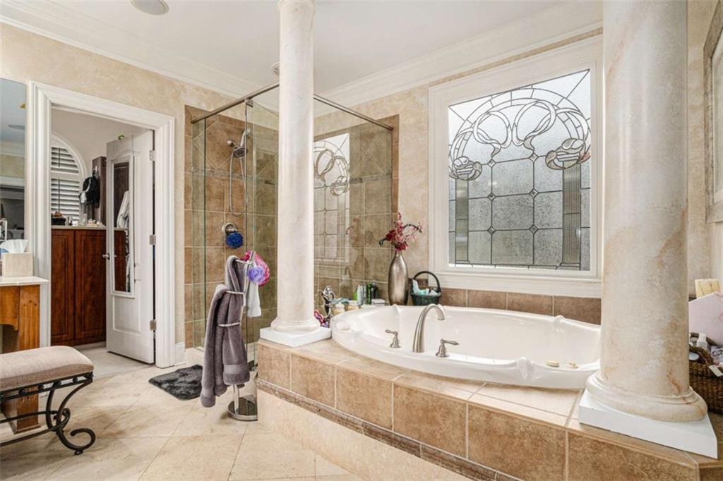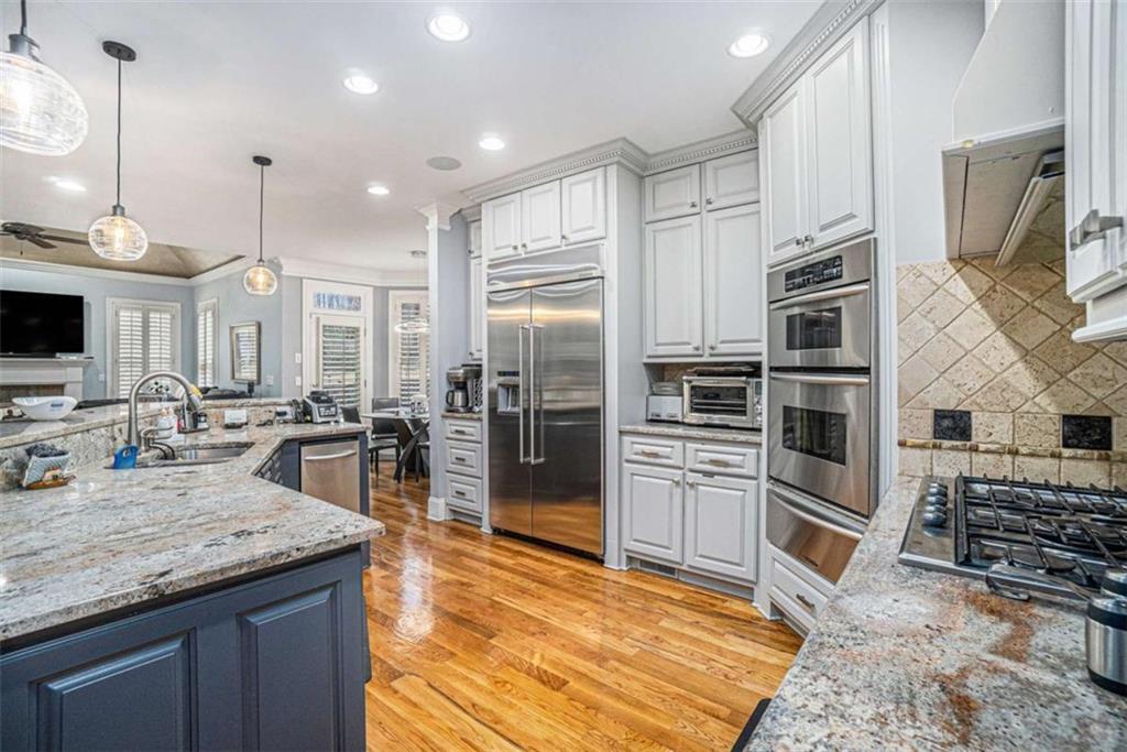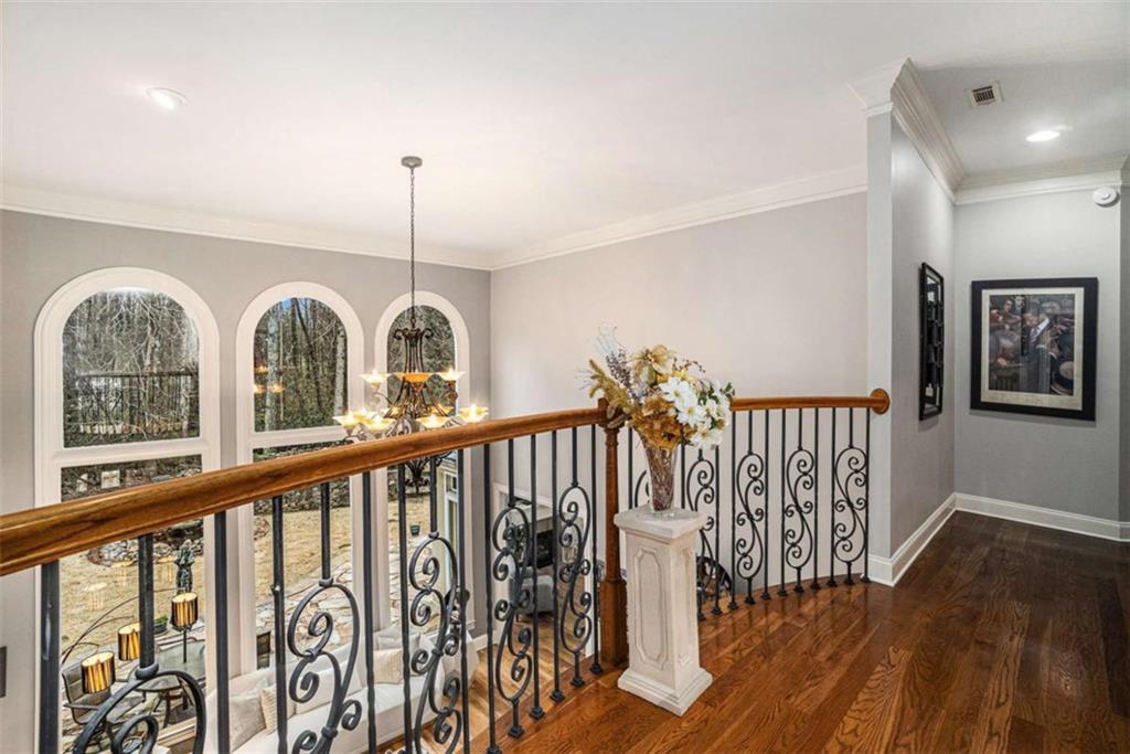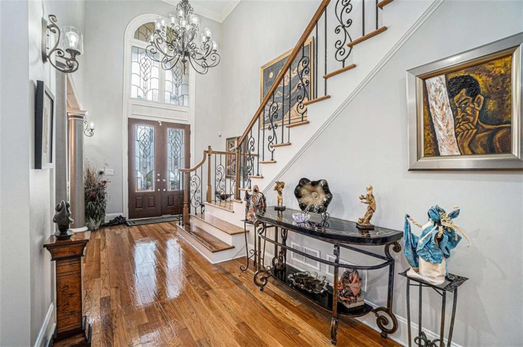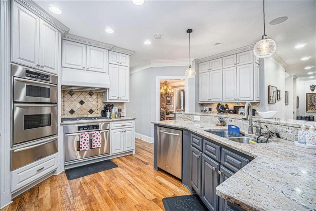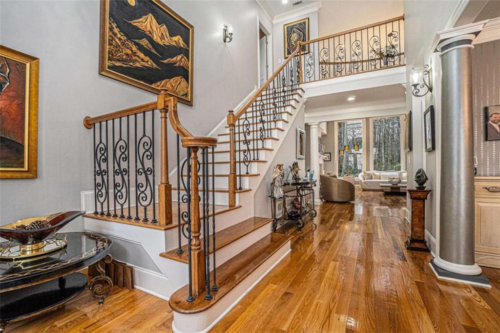 Luxury Living at Its Finest! Step into this stunning home featuring an inviting open foyer and a spacious dining room. The great room boasts floor-to-ceiling windows, a fireplace, and beautiful hardwood floors that flow seamlessly into the kitchen, which offers abundant custom cabinetry, and into the keeping room with an additional fireplace, perfect for entertaining. The gourmet kitchen is a chef's dream, complete with granite countertops, a 5-burner cooktop, a microwave/wall oven combo, an additional full-size oven, warming drawer, trash compactor, and a dishwasher. The kitchen opens into the keeping room, with a large laundry room located just off the kitchen, all thoughtfully connected for everyday living and effortless entertaining. The primary suite on the main level offers a private retreat with its own fireplace and a large spa-like bath featuring two dual-head showers with a built-in seat, an oversized whirlpool jacuzzi tub, and a fully customized walk-in closet. Upstairs, you'll find three en suite bedrooms plus a fourth bedroom that can function as a guest room or study, providing ample space for family and guests. A large “craft” room offers additional space for creative projects or flexible use. All closets throughout the home are custom-designed for optimal storage and luxury. This home also features an 18-speaker surround sound system installed throughout for easy listening or lively parties. The fully finished basement is an entertainer's paradise, showcasing a custom bar complete with a refrigerator, microwave, wine cooler, and dishwasher, plus a pool room, theater room, large entertainment room, an additional en suite bedroom, exercise room, cozy fireplace, powder room, and access to a lower level patio with a stairway leading up to the main level patio. Outdoor living is equally impressive, with a hot tub, putting green, and a beautiful fountain creating a serene escape. Modern conveniences include an electric car charging station, a central vacuum system, chandelier-lowering chains for effortless maintenance, and a second stairway from the garage to the lower level. Major upgrades include a new roof (2023) and a new water heater (2025). Don’t miss this exceptional home offering luxury, space, functionality, and thoughtful upgrades at every turn!