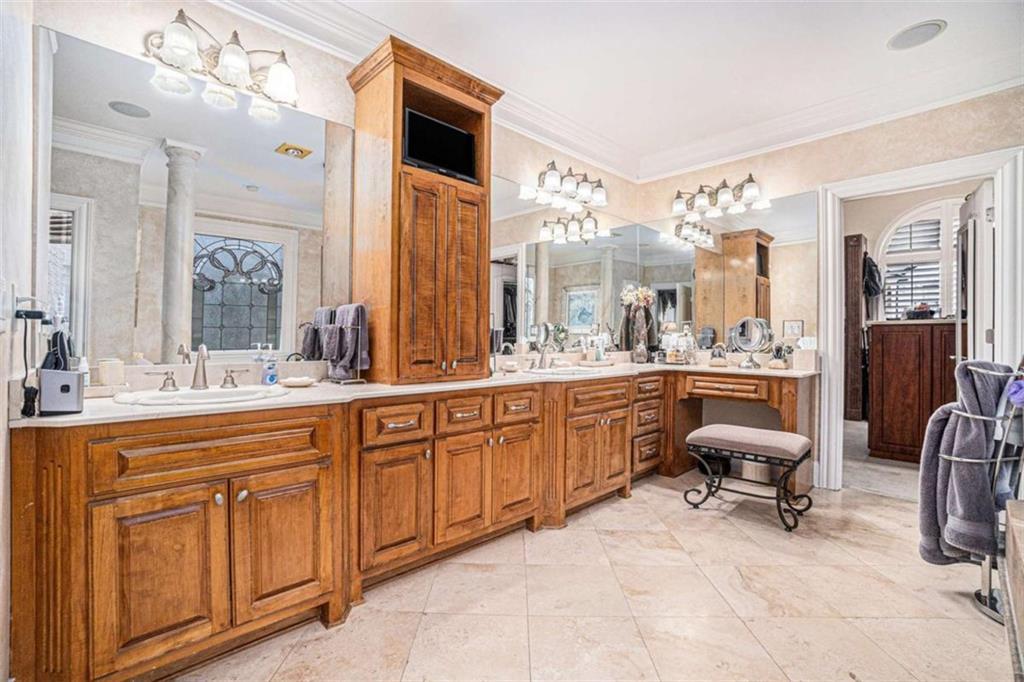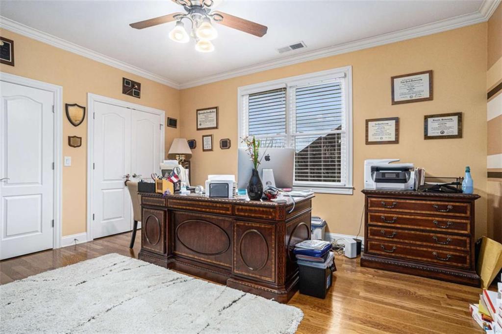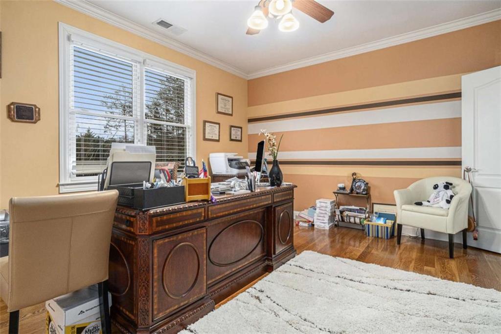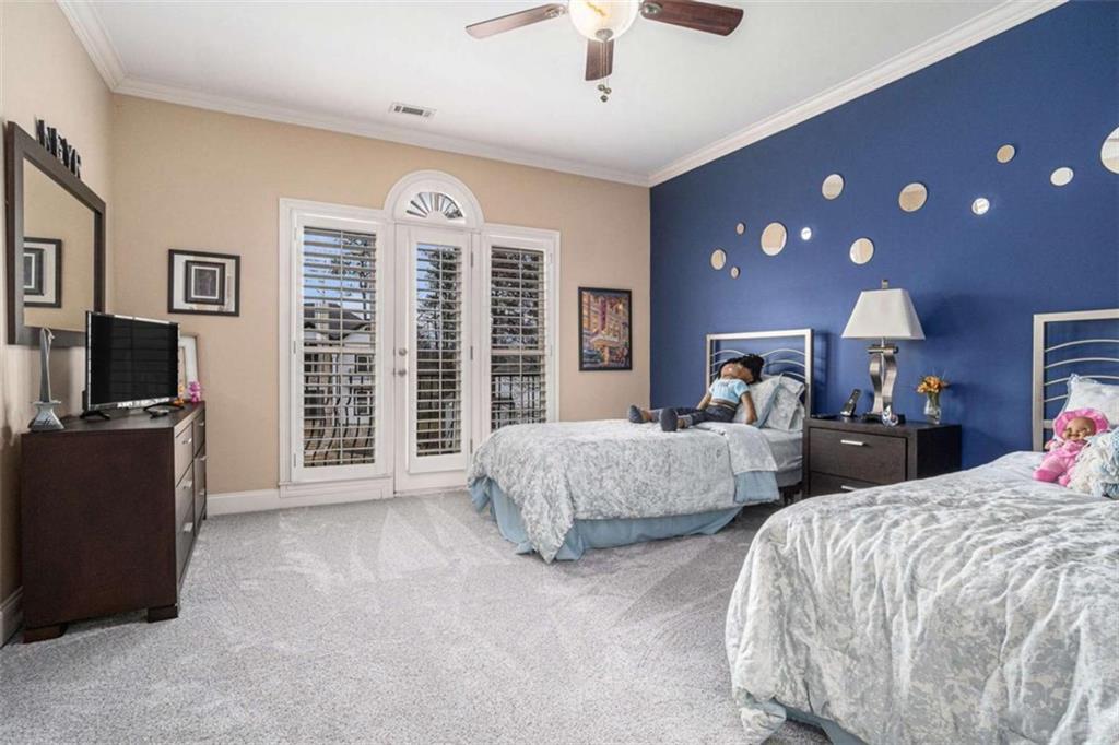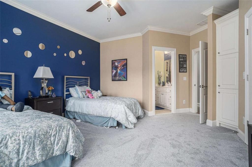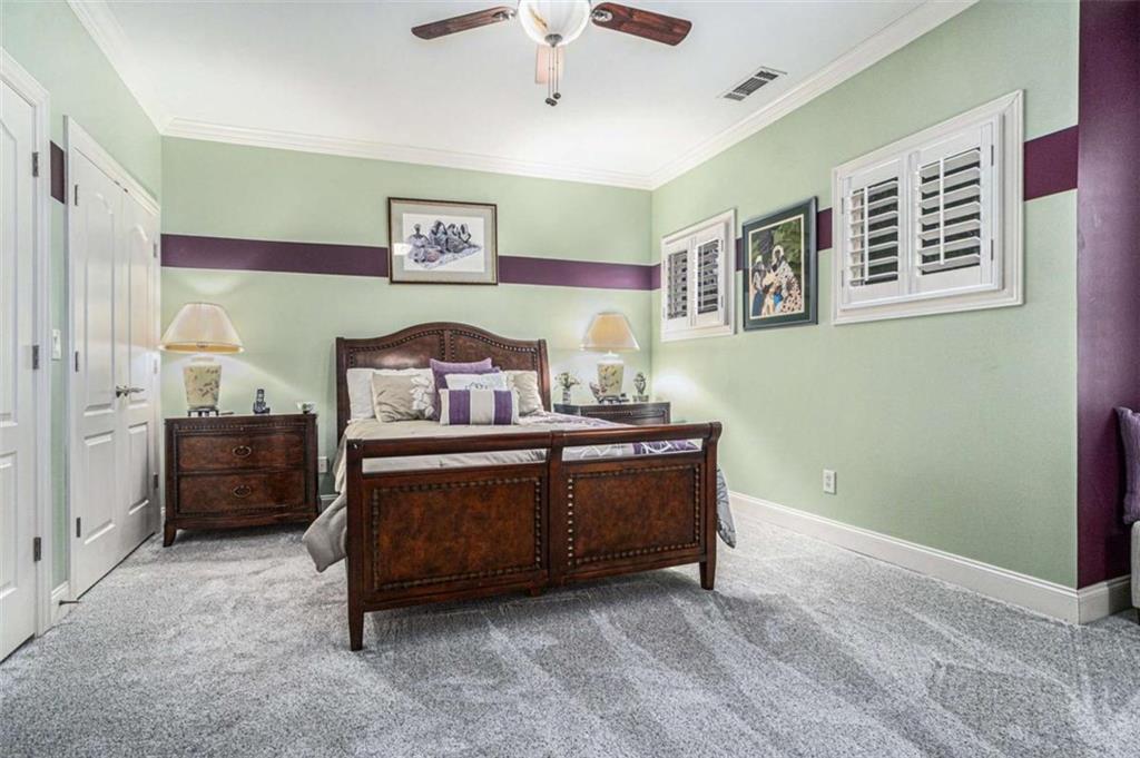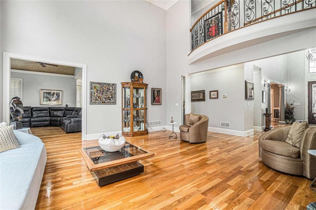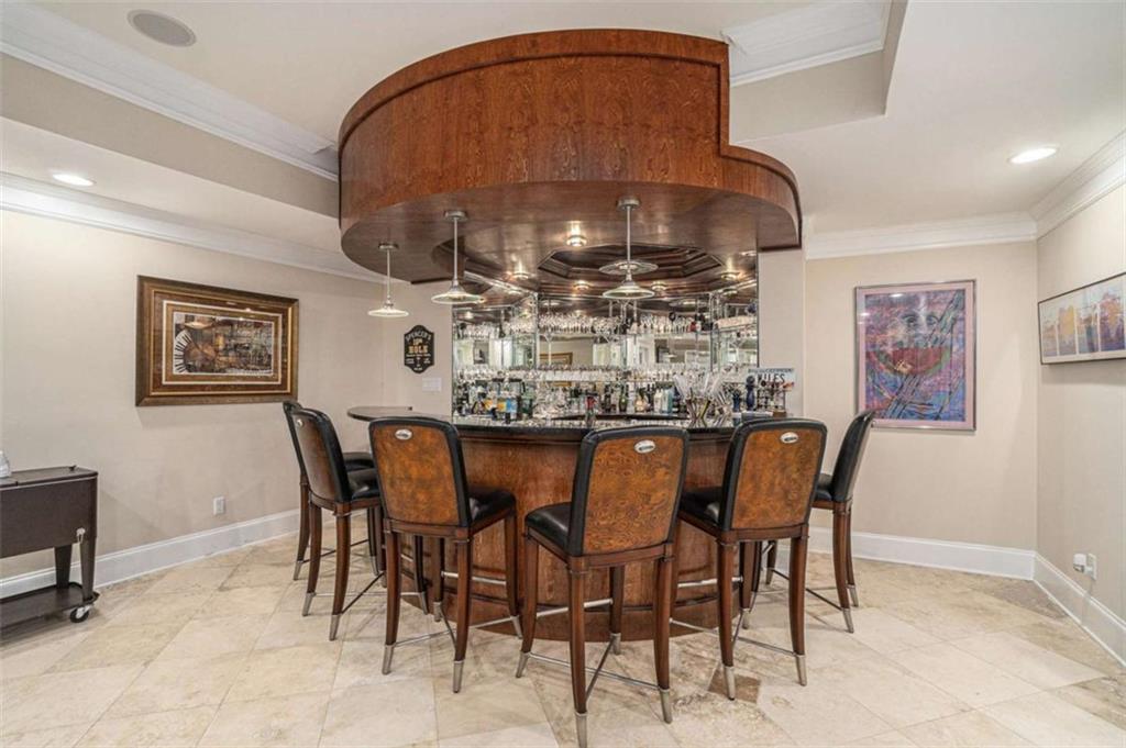 Luxury Living at Its Finest! Step into this stunning home featuring an inviting open foyer and a spacious dining room. The great room boasts floor-to-ceiling windows, a fireplace, and beautiful hardwood floors that flow seamlessly into the kitchen, which offers abundant custom cabinetry, and into the keeping room with an additional fireplace, perfect for entertaining. The gourmet kitchen is a chef's dream, complete with granite countertops, a 5-burner cooktop, a microwave/wall oven combo, an additional full-size oven, warming drawer, trash compactor, and a dishwasher. The kitchen opens into the keeping room, with a large laundry room located just off the kitchen, all thoughtfully connected for everyday living and effortless entertaining. The primary suite on the main level offers a private retreat with its own fireplace and a large spa-like bath featuring two dual-head showers with a built-in seat, an oversized whirlpool jacuzzi tub, and a fully customized walk-in closet. Upstairs, you'll find three en suite bedrooms plus a fourth bedroom that can function as a guest room or study, providing ample space for family and guests. A large “craft” room offers additional space for creative projects or flexible use. All closets throughout the home are custom-designed for optimal storage and luxury. This home also features an 18-speaker surround sound system installed throughout for easy listening or lively parties. The fully finished basement is an entertainer's paradise, showcasing a custom bar complete with a refrigerator, microwave, wine cooler, and dishwasher, plus a pool room, theater room, large entertainment room, an additional en suite bedroom, exercise room, cozy fireplace, powder room, and access to a lower level patio with a stairway leading up to the main level patio. Outdoor living is equally impressive, with a hot tub, putting green, and a beautiful fountain creating a serene escape. Modern conveniences include an electric car charging station, a central vacuum system, chandelier-lowering chains for effortless maintenance, and a second stairway from the garage to the lower level. Major upgrades include a new roof (2023) and a new water heater (2025). Don’t miss this exceptional home offering luxury, space, functionality, and thoughtful upgrades at every turn!
