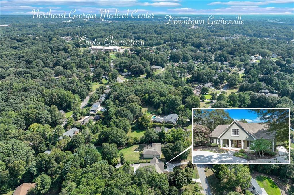 Freshly painted interior and new roof! Situated on a beautiful lot in the heart of Gainesville, this stunning home welcomes you with a circular drive and large front porch. 6 bedrooms, 6 full baths, and two half baths, no detail was left undone. The main level boasts unique architectural features, handsome hardwood floors, Chef kitchen with custom cabinetry, top of the line appliances open to large, well-appointed living room with fireplace with easy access to screened porch, beautiful primary suite with windows that flood the room with natural light, guest bedroom and bath, charming office, laundry room, high ceilings, stunning light fixtures, and entertaining spaces at every turn. Upstairs, you’ll find 3 large bedrooms, 2 full baths and a laundry chute. Full basement with bar, media room, bedroom, bathroom and storage. This space would be the perfect in-law suite. Private, level, backyard. Beautifully landscaped.