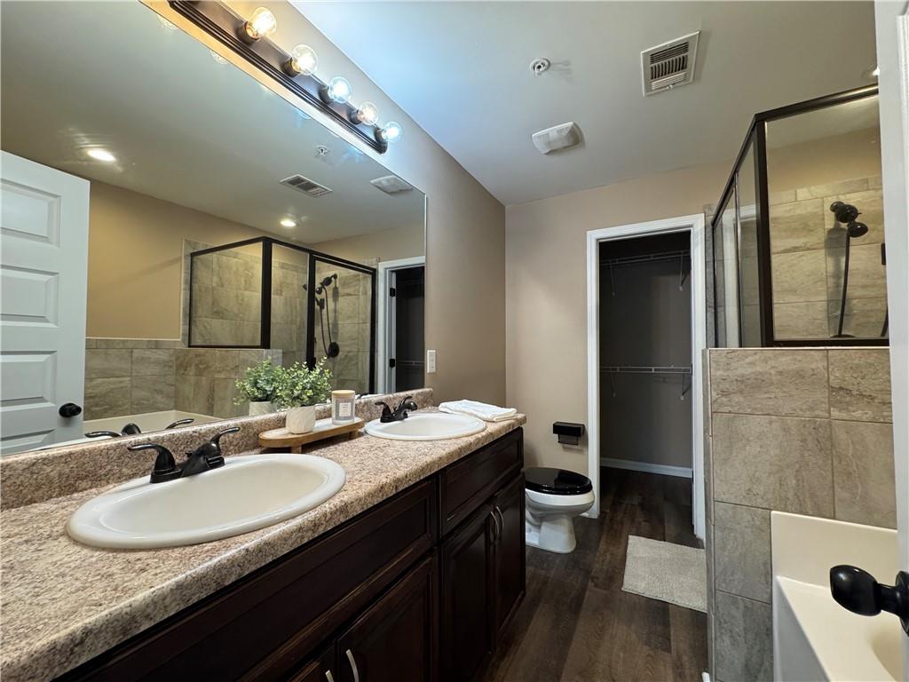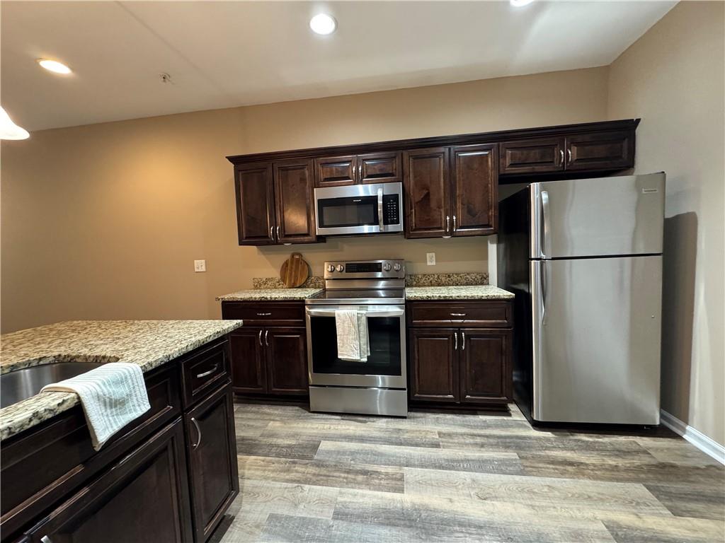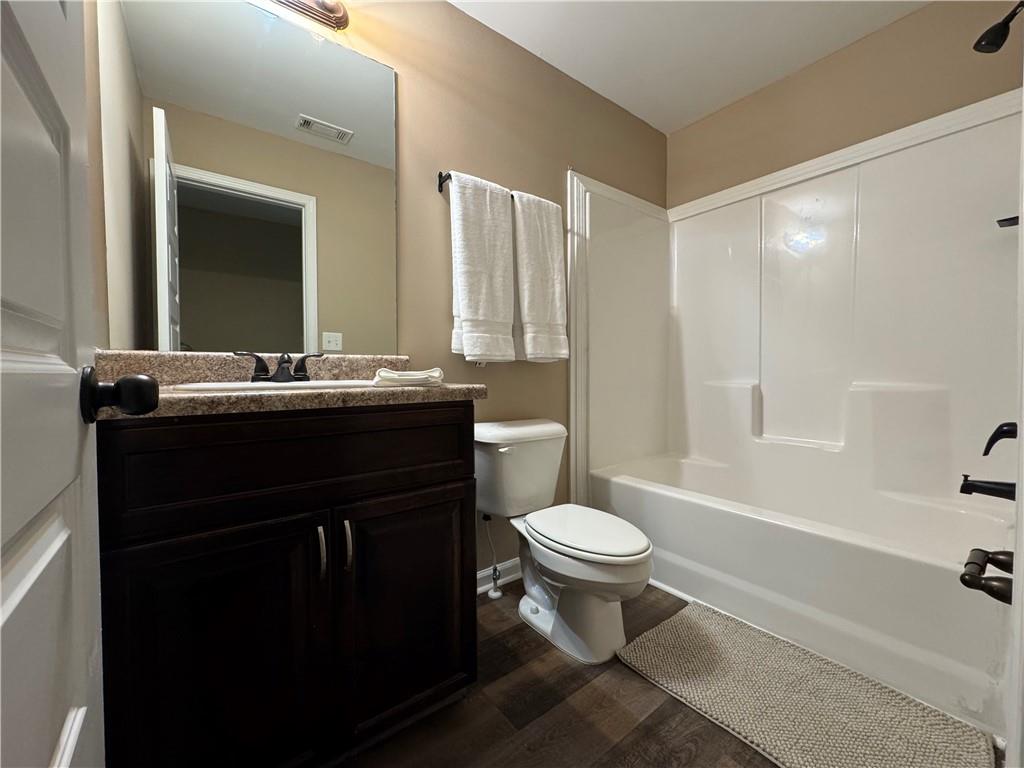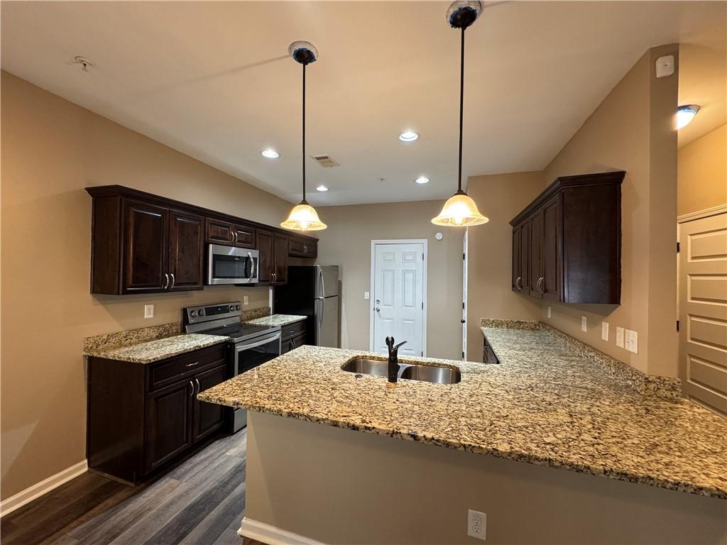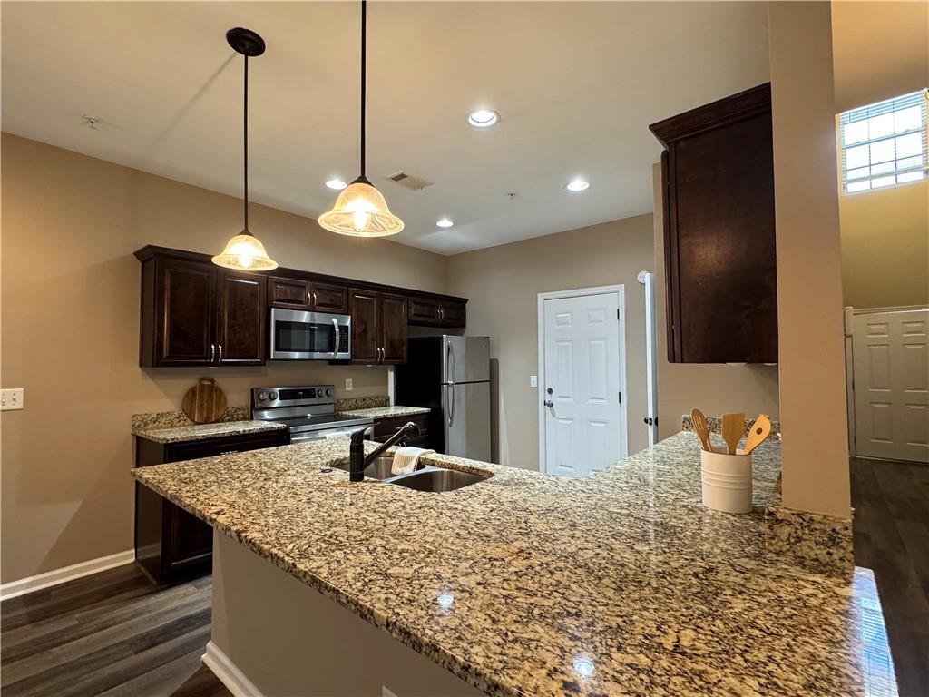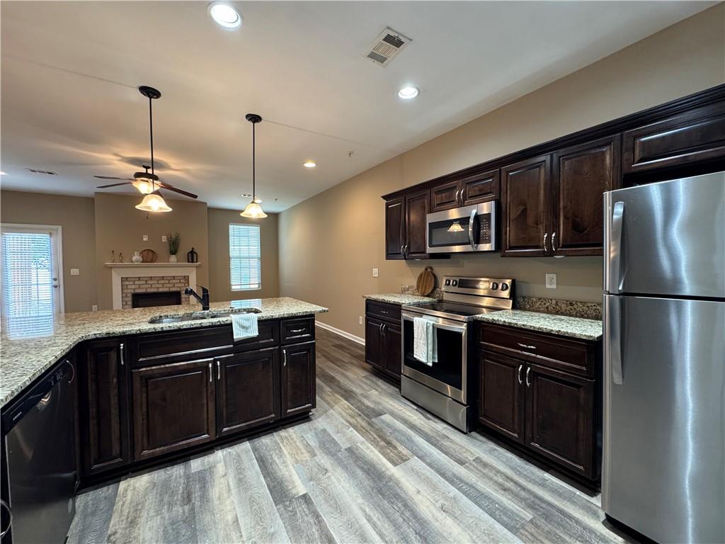 Fully Equipped Townhome - all appliances (fridge, washer & dryer) included! + $5K Incentive!! Stylish and modern 3-bedroom, 2.5-bath townhome perfectly located just south of Atlanta. Step into a stunning two-story foyer with a soaring ceiling, elegant staircase, and convenient coat closet by the entry. The spacious family room, complete with a cozy fireplace, flows seamlessly into the fully equipped kitchen featuring espresso shaker cabinets, granite countertops, stainless steel appliances, and a refrigerator included. A convenient half bath is located on the main level. Upstairs, the primary suite boasts a vaulted ceiling with fan, a luxurious ensuite bathroom with double vanities, a beautifully tiled shower, soaking tub, and a walk-in closet. Two additional bedrooms share a full bath, and the laundry room-perfectly situated near all bedrooms-makes chores a breeze. A hallway storage closet adds extra convenience. Wood plank flooring runs throughout the home. Enjoy the attached garage, with additional guest parking right across the street. Surrounded by shopping, dining, and entertainment, and just 5 minutes from Atlanta Airport, this home offers style, comfort, and an unbeatable location. $5,000 Incentive with preferred lender - Agents, see private remarks.