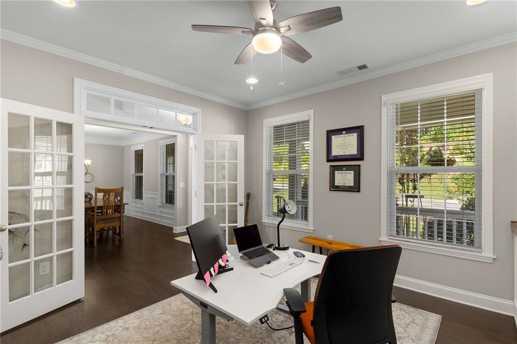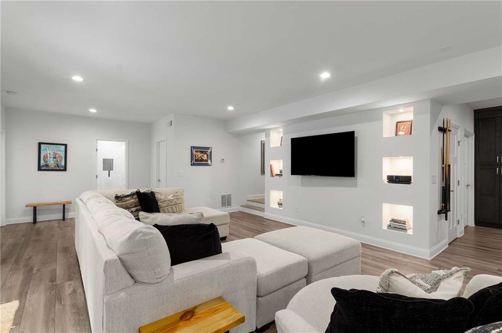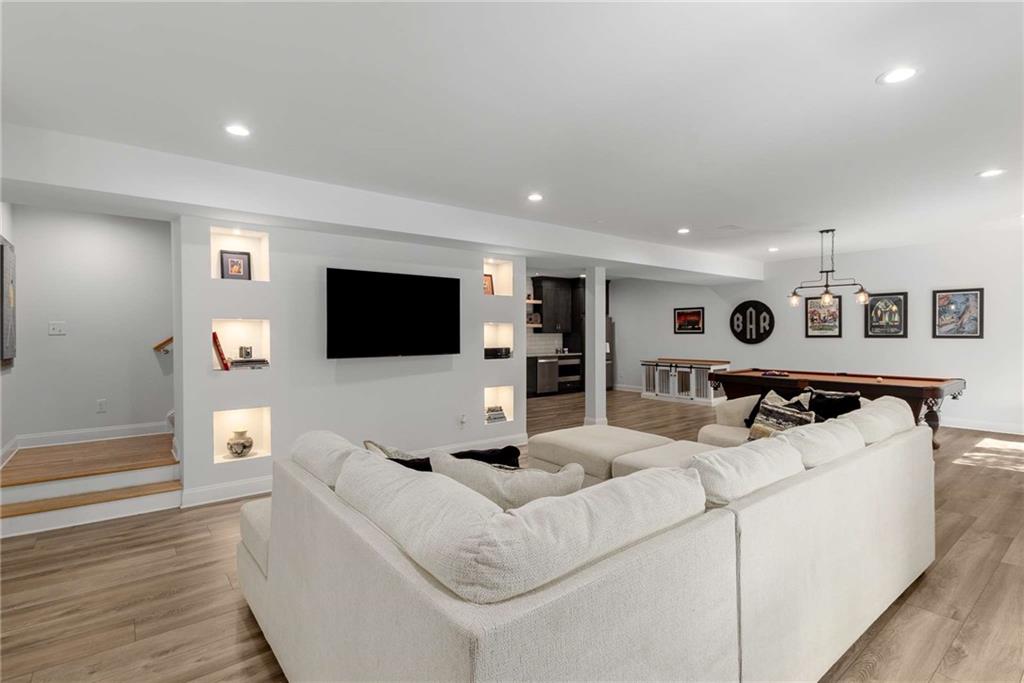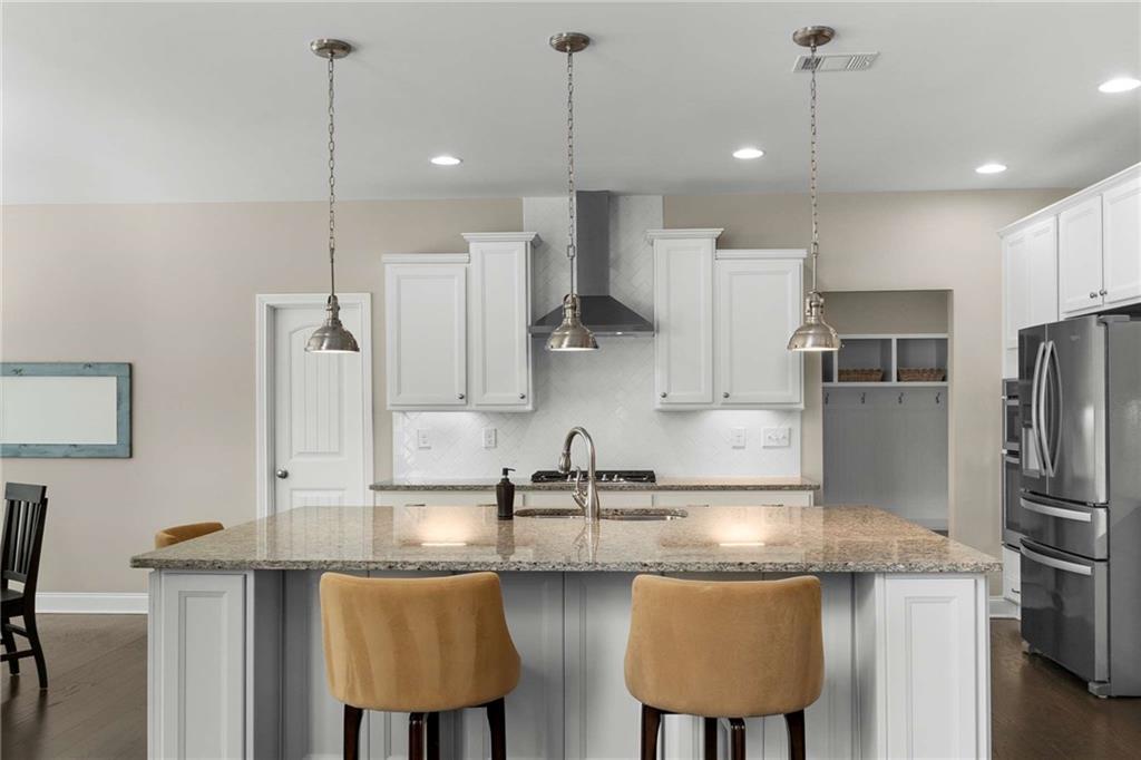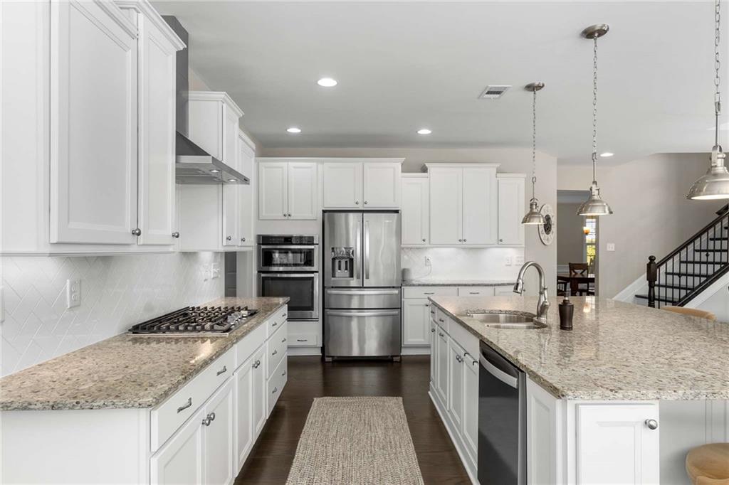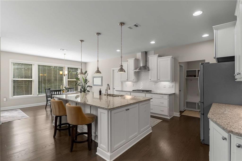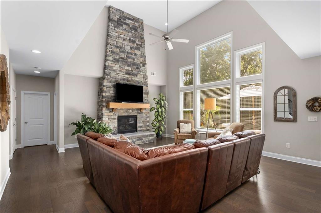 Fall in love with this spacious and inviting 6-bedroom, 5-bathroom home. Step into a bright, open floor plan featuring a dramatic two-story living room with stunning windows and a cozy stacked-stone fireplace. The heart of the home is a chef’s dream kitchen with a generous island and walk-in pantry, ideal for cooking and dinner parties. The primary suite offers a peaceful retreat with a large walk-in closet, while the home office—with custom built-ins—is perfect for remote work or study. The fully finished basement adds even more living space with its own kitchen, making it perfect for guests, in-laws, or entertaining. Two oversized storage rooms offer tons of flexibility in addition to the 3-car garage. Outside, enjoy a beautifully landscaped, fenced yard and a covered patio—great for relaxing or hosting friends. Just minutes to Woodstock, Roswell, and Alpharetta. Close to top-rated schools, trails, and parks—this one’s a must-see!