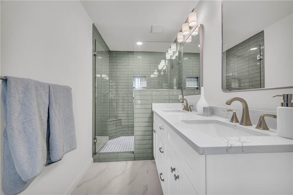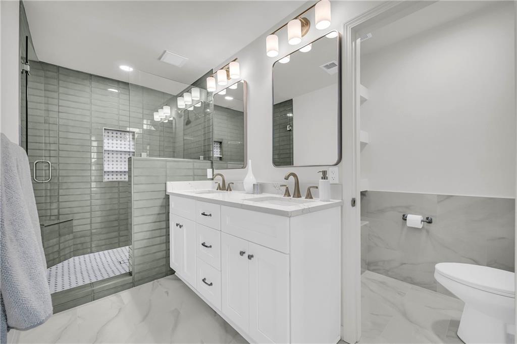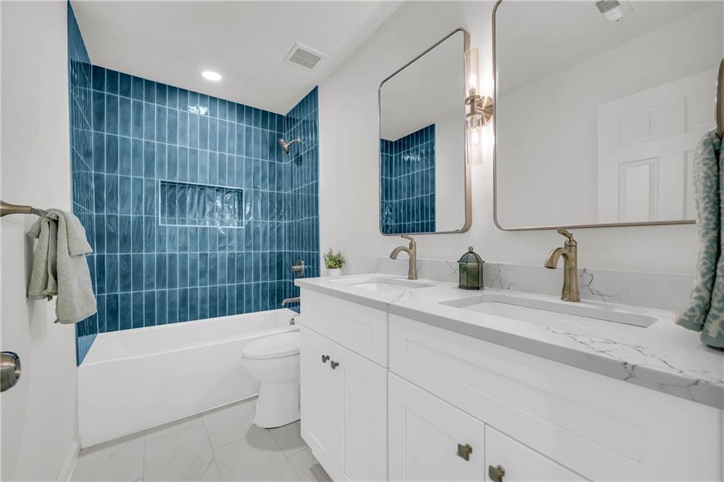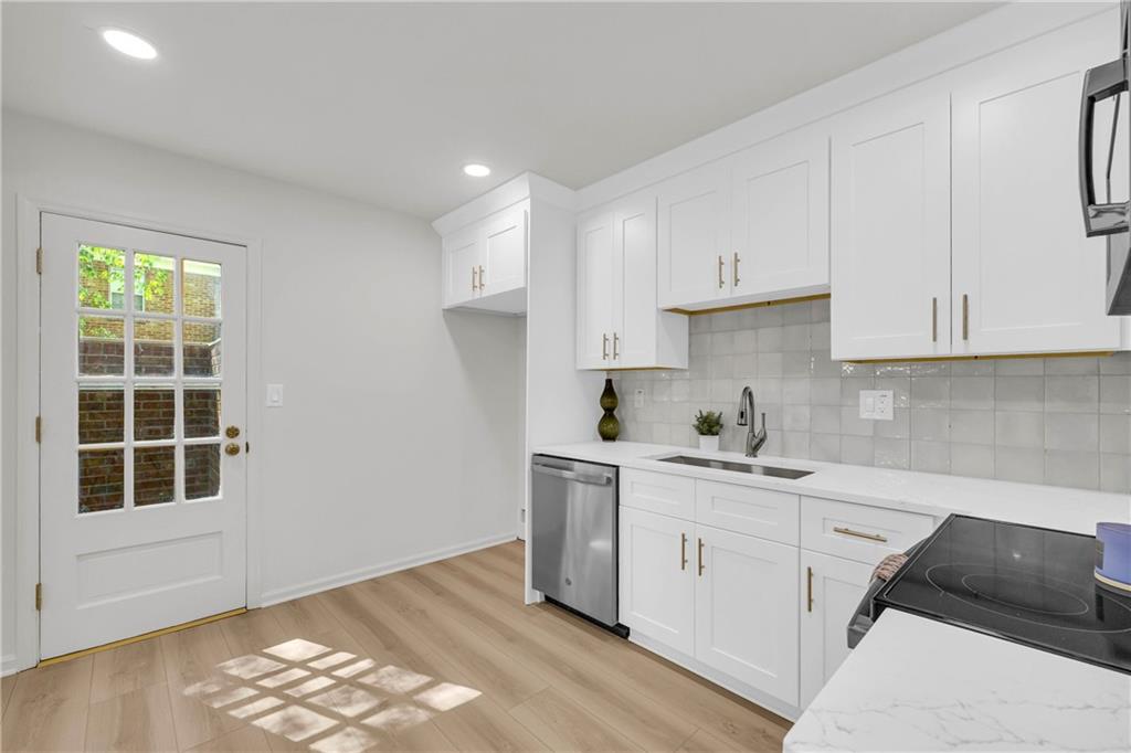This is the one you've been waiting for at Westover Plantation - beautifully renovated end unit in one of the best spots in the community! Completely renovated from top to bottom, you'll find everything virtually new! The open living room features a fireplace with shiplap paneling and built-in bookcases. The modern kitchen boasts new white shaker cabinets and quartz countertops, timeless backsplash, stainless steel appliances, and pantry. Convenient half bath on the main for guests. Gorgeous white oak stairway with iron balusters. Step outside to a private, brand new patio great for enjoying morning coffee and providing easy access for walking your dog. The spacious primary bedroom has his and hers closets and additional storage in the ensuite bath, which has been luxuriously updated with a large double vanity with quartz countertops, a floor-to-ceiling beautifully tiled, spacious shower, and a private, tiled toilet room - you will feel like you're in a spa and won't find anything similar in the complex! Upstairs, you'll also find two additional bedrooms and another beautifully renovated bathroom with a double vanity (rare for complex) and tub/shower combo with tiled walls. Zoned HVAC system which allows for temperature controls on each level. Westover Plantation is a desirable gated community that offers an array of amenities, including a pool, tennis courts, clubhouse, fitness center, playground, dog park, and abundant green space to enjoy. Its prime location provides convenient access to Atlanta's west side, Buckhead, and Midtown, making it an ideal place to call home. You'll be the nicest unit in the complex. Come and see for yourself!