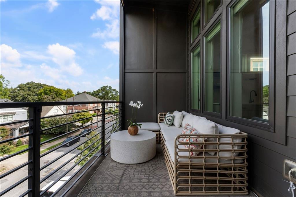 EXPERIENCE CONTEMPORARY LIVING · PERFECTLY POSITIONED IN OLD FOURTH WARD · END UNIT · MODERN DESIGN · FLOODED WITH NATURAL LIGHT! OPEN CONCEPT · FLOOR TO CEILING WINDOWS · CONNECTIVITY BETWEEN LIVING, DINING AND KITCHEN · GENEROUS QUARTZ ISLAND · CHEF'S KITCHEN · SLEEK HIGH-END APPLIANCES · LARGE COVERED BALCONY WITH SKYLINE VIEWS AS WELL AS GREENERY OF SURROUNDING TREES · THIS IS THE PERFECT HOME PAIRING URBAN VIBRANCY, MODERN LIVING AND NATURAL CALM! TWO SPACIOUS BEDROOMS WITH TWO PRIVATE BATHS · LAUNDRY TUCKED BEHIND BARN DOORS · TERRACE LEVEL OFFERING VERSATILITY · CURRENTLY A HOME GYM WITH CUSTOM CUT GYM FLOORING AND A TONAL GYM MACHINE · EV CHARGER · MINUTES FROM PONCE CITY MARKET, THE BELTLINE AND PIEDMONT PARK. THIS TOWNHOME DELIVERS SOPHISTICATION, LIVABILITY AND LOCATION ALL IN EQUAL MESSURE!