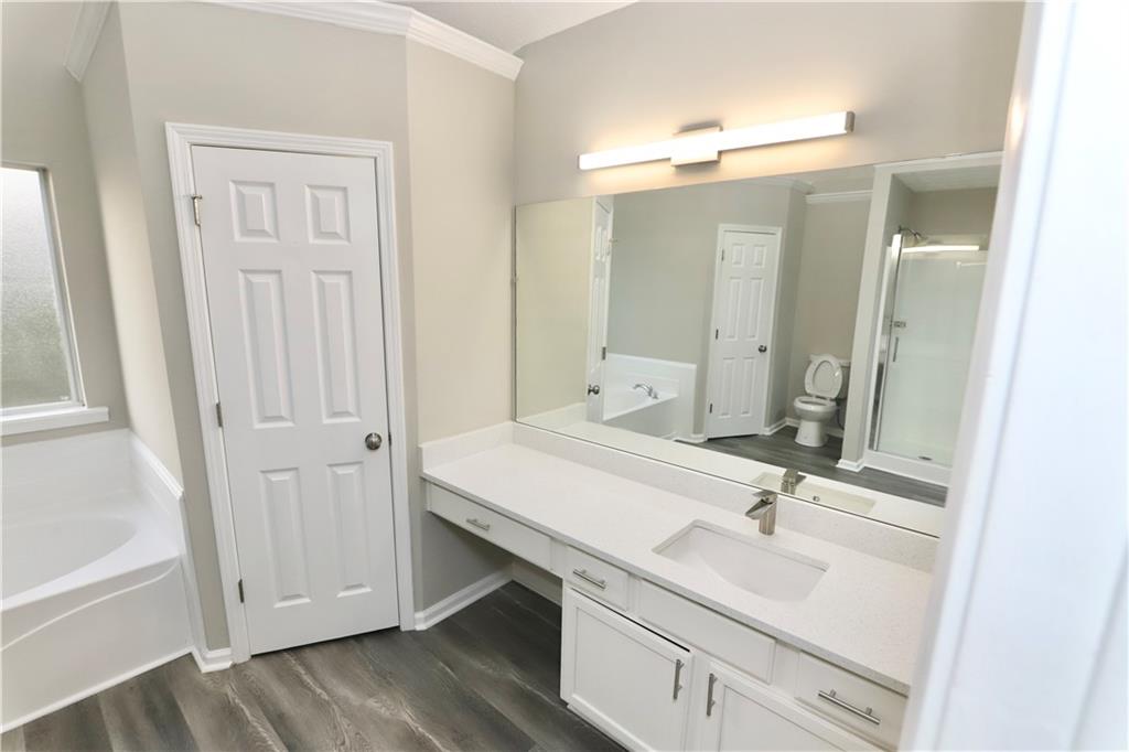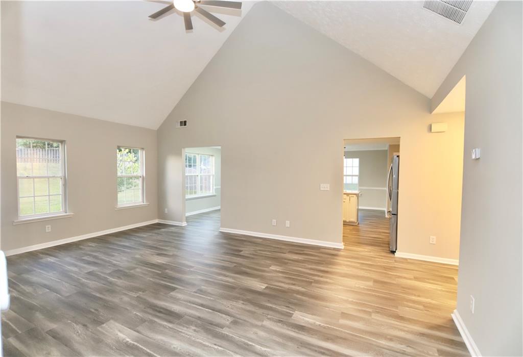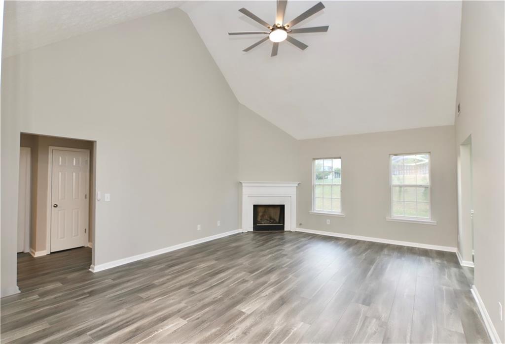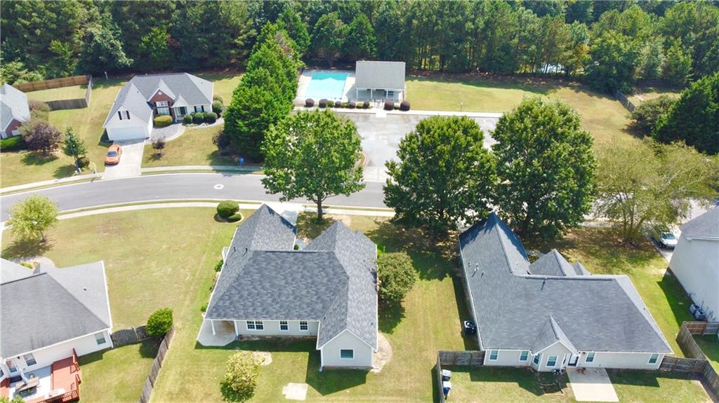 Immaculate ranch style home with large great room, fireplace, dining room, and 2 Car Garage across to Swimming Pool. New SS appliances in kitchen with breakfast room, granite countertops, and ceramic tile. Large Master bedroom with trey ceiling, separate tub and shower. Freshly Painted, New Flooring, New Counter Tops, New Hardware, New Light Fixtures & New Roof, Unfinished attic just waiting to be turned into bonus room or fourth bedroom. Private backyard with patio ! Enjoy summer at the community pool!