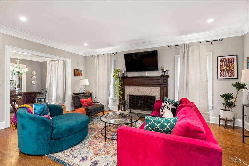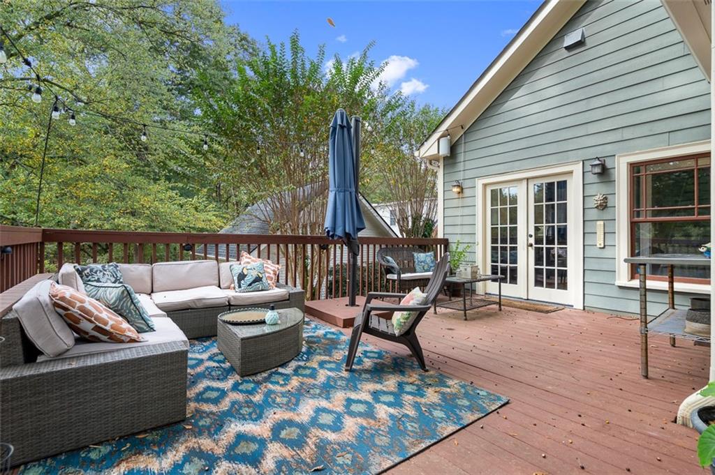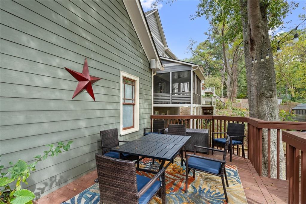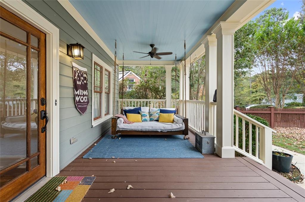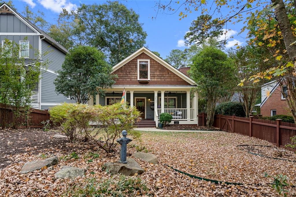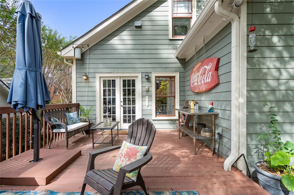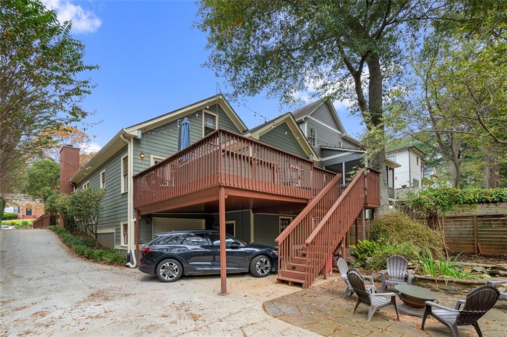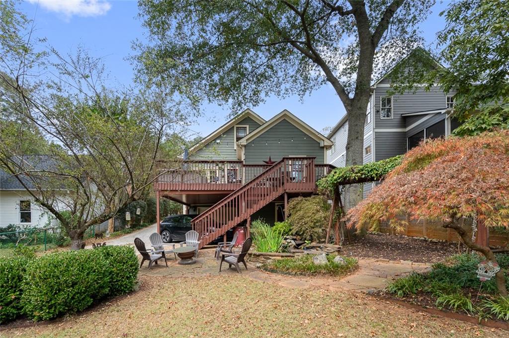 Discover the charm of Decatur living in this beautifully updated 4-bedroom, 3-bath Craftsman on a quiet, tree-lined street in the sought-after Dearborn Park neighborhood. This home combines classic 1920s bungalow character with modern upgrades, flexible living space, and inviting outdoor areas. Step inside to find hardwood floors throughout, a gas fireplace, and a bright, open layout ideal for entertaining. The renovated kitchen features stainless-steel appliances, granite countertops, gas cooktop, two-tone cabinetry, and under-cabinet lighting. A set of French doors opens to a spacious deck and fenced backyard with mature trees, flagstone patio, firepit seating, and a koi pond — perfect for year-round enjoyment. The main-level primary suite offers a large walk-in closet and spa-style bath with marble double vanity, frameless glass shower, and tile flooring. Two additional bedrooms, a hall bath, and laundry complete the main level. Upstairs, find a flexible loft space, the 4th bedroom, and a full bath — perfect for guests, a home office, or creative studio. Additional highlights include central HVAC, energy-efficient windows, ceiling fans, EV charging station, and a two-car garage with direct access. Recent updates include fresh paint, modern lighting, and refreshed landscaping. Enjoy proximity to Dearborn Park (0.4 mi), Oakhurst Village (0.9 mi), East Lake MARTA (1.0 mi), and East Lake Golf Club (1.2 mi) — with easy access to downtown Decatur, Kirkwood, and I-285. Move-in ready, full of character, and ideally located — this is Decatur living at its best.