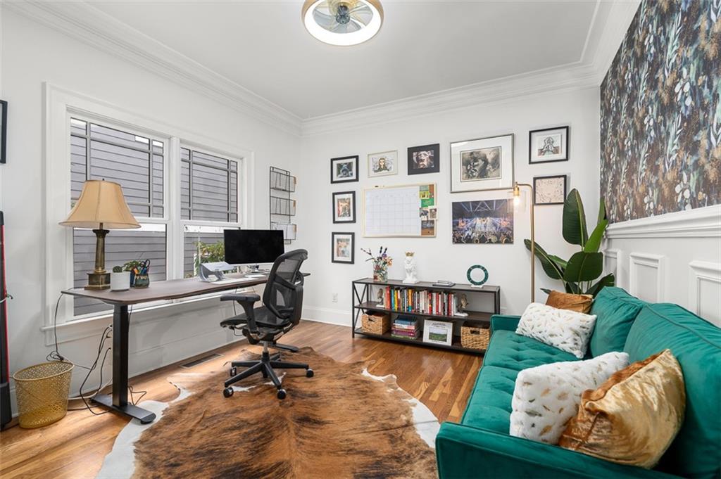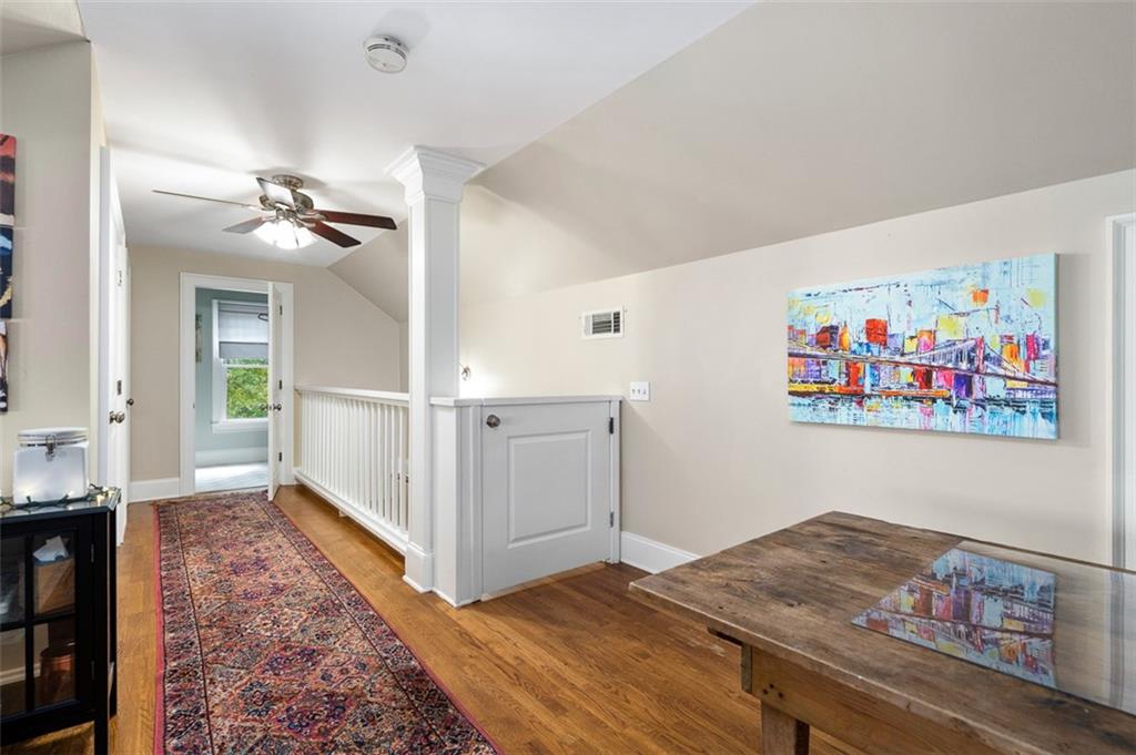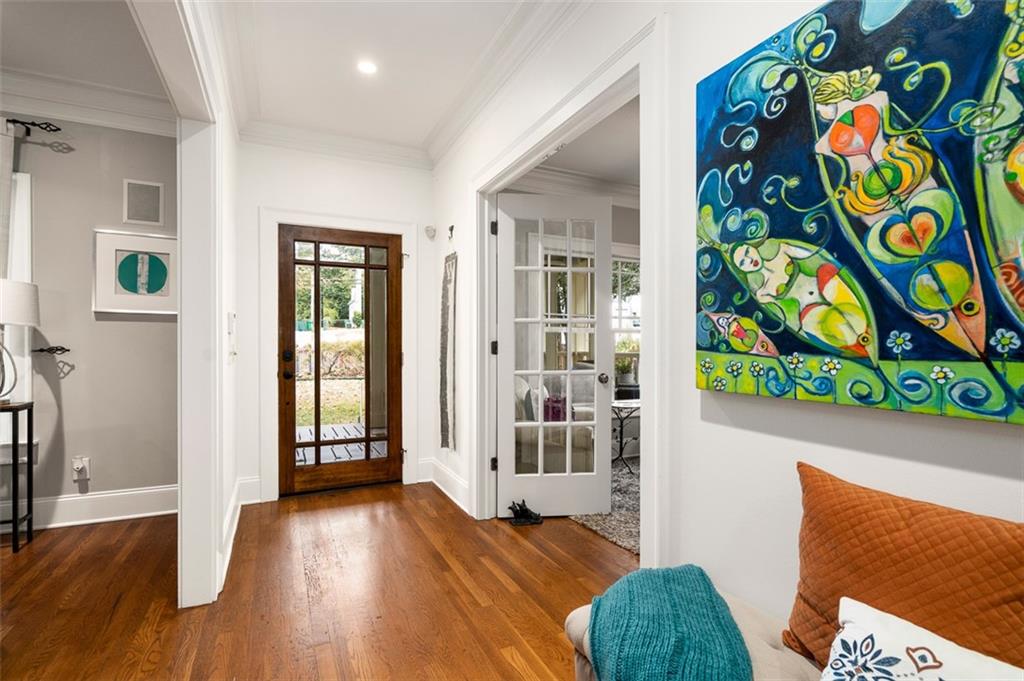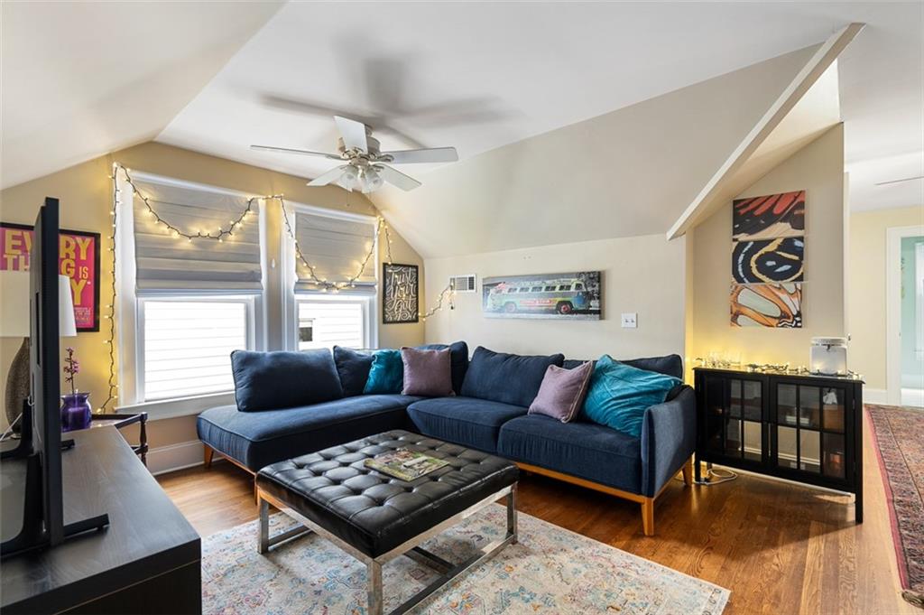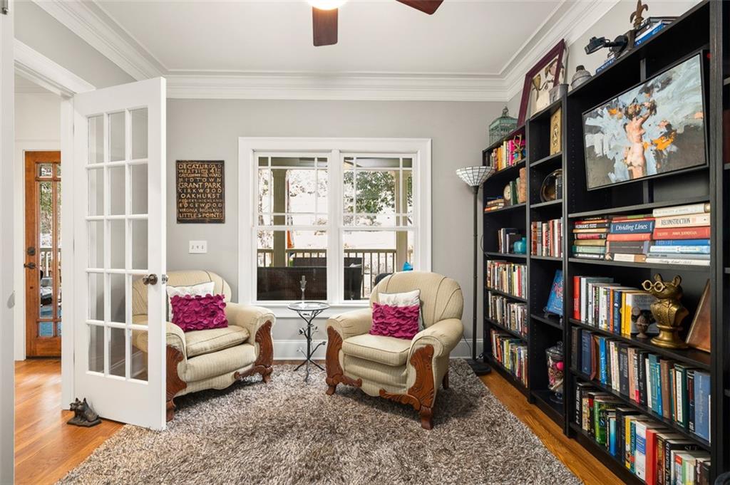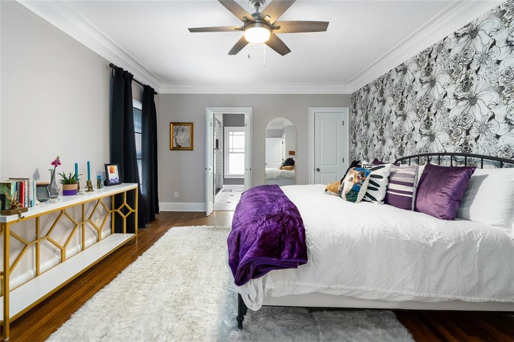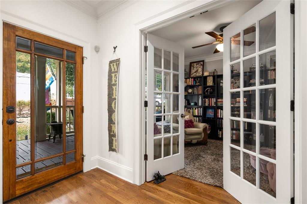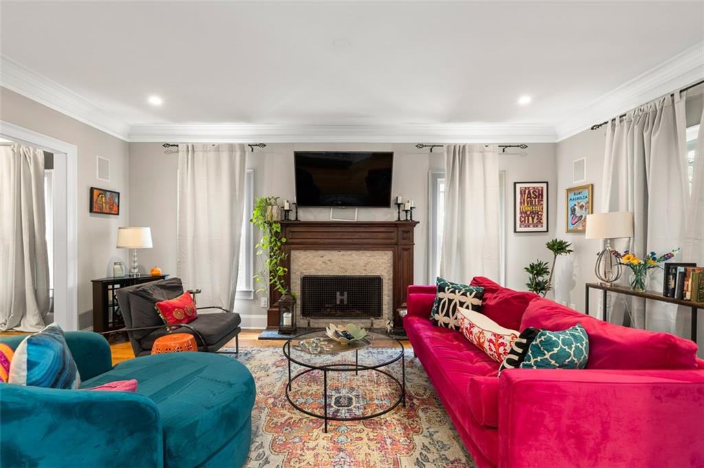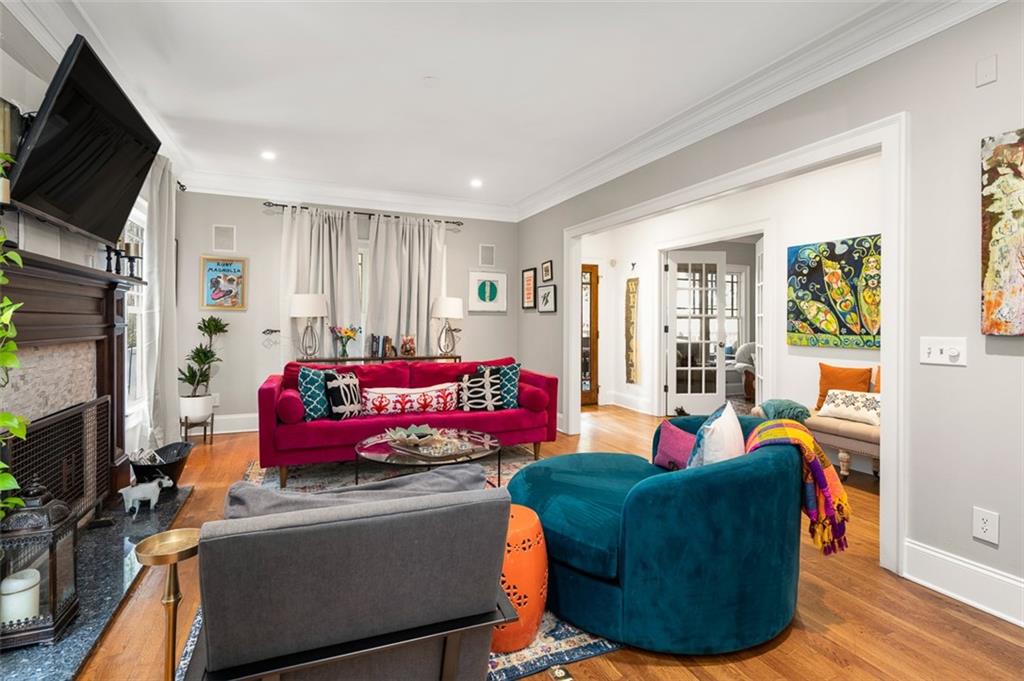 Discover the charm of Decatur living in this beautifully updated 4-bedroom, 3-bath Craftsman on a quiet, tree-lined street in the sought-after Dearborn Park neighborhood. This home combines classic 1920s bungalow character with modern upgrades, flexible living space, and inviting outdoor areas. Step inside to find hardwood floors throughout, a gas fireplace, and a bright, open layout ideal for entertaining. The renovated kitchen features stainless-steel appliances, granite countertops, gas cooktop, two-tone cabinetry, and under-cabinet lighting. A set of French doors opens to a spacious deck and fenced backyard with mature trees, flagstone patio, firepit seating, and a koi pond — perfect for year-round enjoyment. The main-level primary suite offers a large walk-in closet and spa-style bath with marble double vanity, frameless glass shower, and tile flooring. Two additional bedrooms, a hall bath, and laundry complete the main level. Upstairs, find a flexible loft space, the 4th bedroom, and a full bath — perfect for guests, a home office, or creative studio. Additional highlights include central HVAC, energy-efficient windows, ceiling fans, EV charging station, and a two-car garage with direct access. Recent updates include fresh paint, modern lighting, and refreshed landscaping. Enjoy proximity to Dearborn Park (0.4 mi), Oakhurst Village (0.9 mi), East Lake MARTA (1.0 mi), and East Lake Golf Club (1.2 mi) — with easy access to downtown Decatur, Kirkwood, and I-285. Move-in ready, full of character, and ideally located — this is Decatur living at its best.