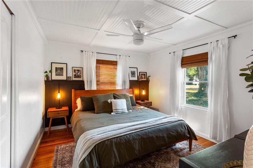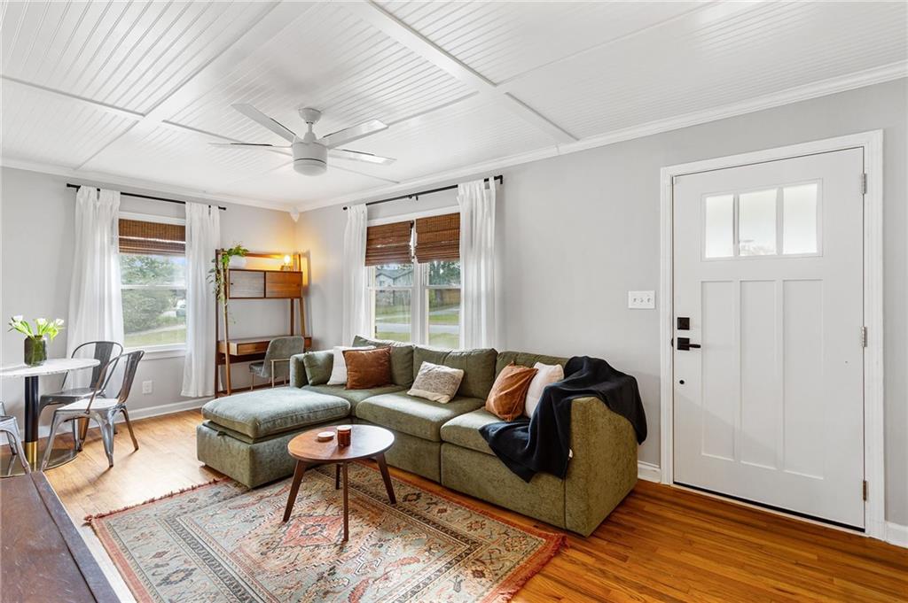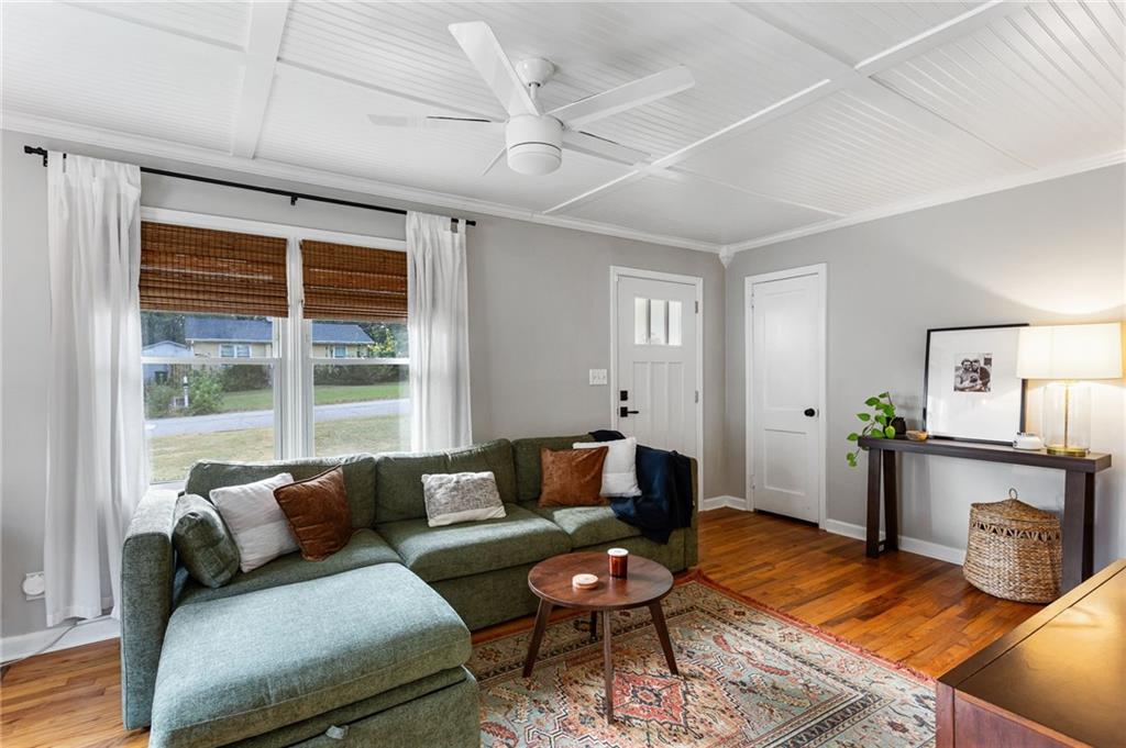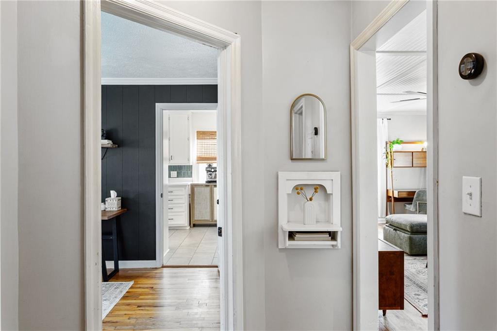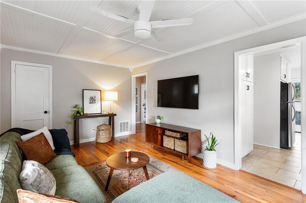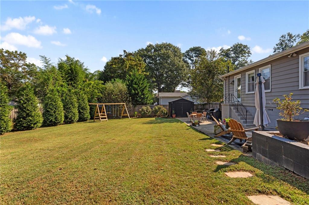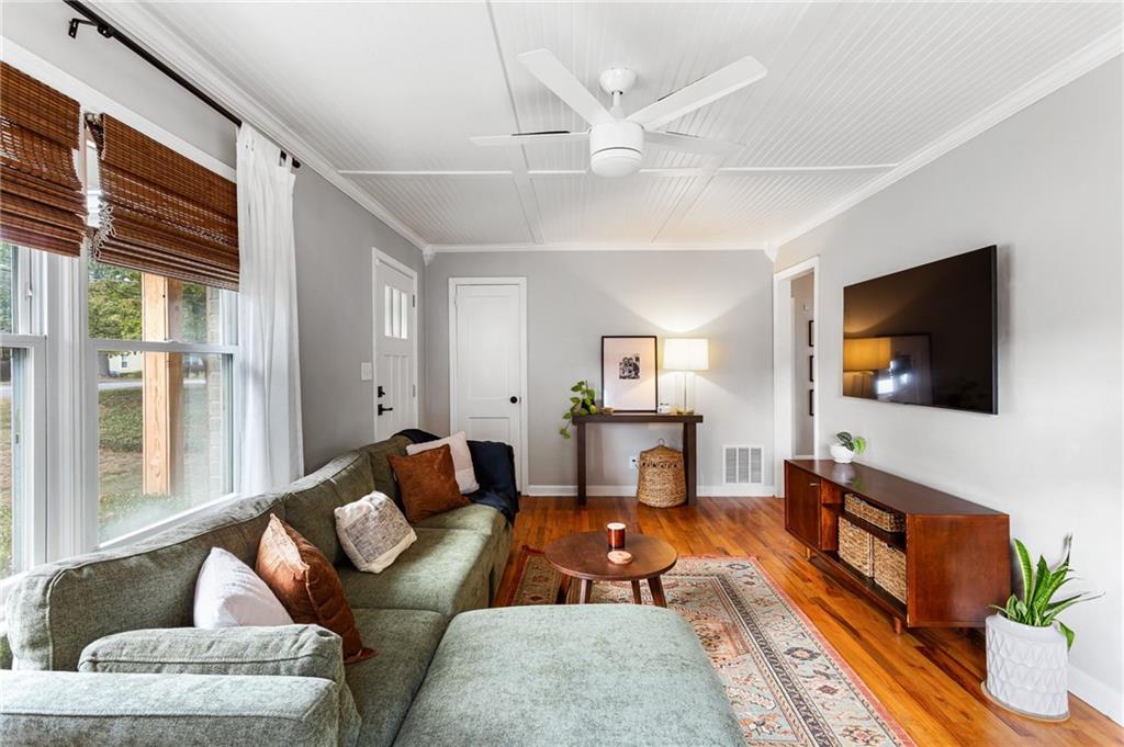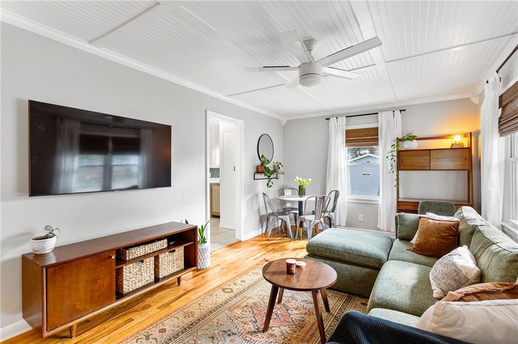 Welcome to 1101 McLinden Avenue SE, a beautifully updated ranch just brimming with Smyrna character and modern comforts. Step inside this inviting home to discover original hardwood floors, crisp crown molding, and beadboard ceilings - touches that whisper “classic Southern home” with contemporary flair. The bright, sunny family room is ideal for cozy gatherings or quiet mornings. The kitchen features white cabinets, a pantry, solid-surface counters, and stainless-steel appliances, perfect for both first-time chefs and casual meals. Retreat to one of three spacious bedrooms finished with accent walls and decorative trim for personality without compromise. Outside, the property impresses with a large, level, fenced backyard complete with a shed and three separate entertaining spaces, prime for relaxing, grilling, gardening or hosting friends. Peace of mind comes built in: recent upgrades include tree removal, yard grading, landscaping, new HVAC + ducting, new exterior doors, encapsulated crawlspace with dehumidifier, and updated electrical outlets & fixtures. Situated in a vibrant Smyrna neighborhood, this home puts you within a 1/2 mile walk to Smyrna Market Village, and close to West Village, the Silver Comet Trail, Cumberland Mall, Truist Park & The Battery, plus Taylor-Brawner Park. Commuters will appreciate easy access to major interstates. And with future redevelopment in downtown Smyrna, hot new shops, restaurants, and gathering spots are coming your way in the next couple of years, with Still Fire Brewing making its debut toward the end of the year.