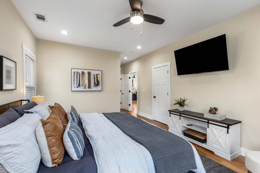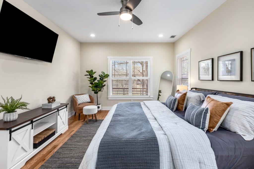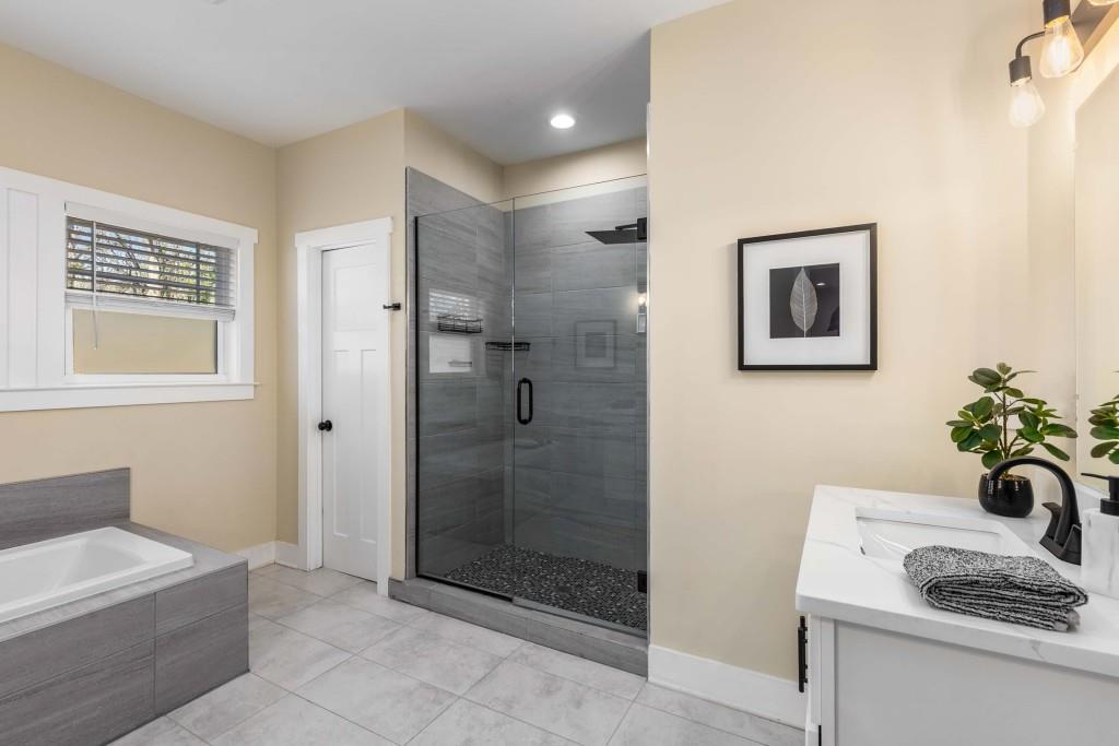 Welcome home to Grove Park -- one of Atlanta's most historic Westside neighborhoods - now enjoying a renaissance that is attracting new residents, investors and businesses. A crown jewel in this popular BeltLine community, this brilliant, totally renovated (2023), four-bedroom, four-and-half-bath Craftsman-style home inspires a truly gracious lifestyle. Situated on a scenic hill, this 3,550-square foot home's spacious front porch welcomes one with commanding, yet private, views of mature woodlands, where wildlife abounds. Inside the double doors, one is greeted with gleaming new hardwood floors, and large windows that illuminate the luxurious open-concept main level. A bright dining area - featuring custom window seats - seamlessly flows to the large chef's kitchen. The kitchen features a massive quartz island with a double sink, brand-new GE stainless steel appliances, custom white cabinetry and a walk-in pantry. Adjacent to the kitchen is the large, bright living room, featuring a custom stone hearth, gas fireplace and built-in window seats. Also on the main level is a luxurious primary suite - one of TWO in the home! This private retreat has a large spa-inspired bath, highlighted by a soaking tub, frameless-glass shower, custom tile, dual quartz vanities and two large walk-in closets. Completing the main level is a charming office, a guest bath, and a spacious screened-in porch that connects the home to the large two-car garage. Up a staircase accented by custom wrought-iron banisters, one finds the SECOND primary bedroom suite - perfect for guests or a roommate - featuring a luxurious spa bath, with frameless-glass shower and dual granite vanities. Two additional bedrooms and baths complete this floor, along with a laundry room with sink, multiple storage closets and a bright, oversized bonus room -- which could serve as a fifth bedroom. The fenced backyard with gate, elevated garden beds and new driveway enhance the home's outdoor living and entertaining possibilities. A new zoned HVAC system and water heater were installed in 2023. Lovingly renovated and meticulously maintained, this stunning home is truly a gem in Atlanta's vibrant Westside, and is located minutes from top dining, shopping and recreation attractions including: Westside Reservoir Park, the Westside BeltLine Trail, Proctor Creek Greenway, West Midtown, The Works, Quarry Yards, Westside Provisions District, Top Golf, Atlantic Station, Georgia Tech, Centennial Park and MARTA.